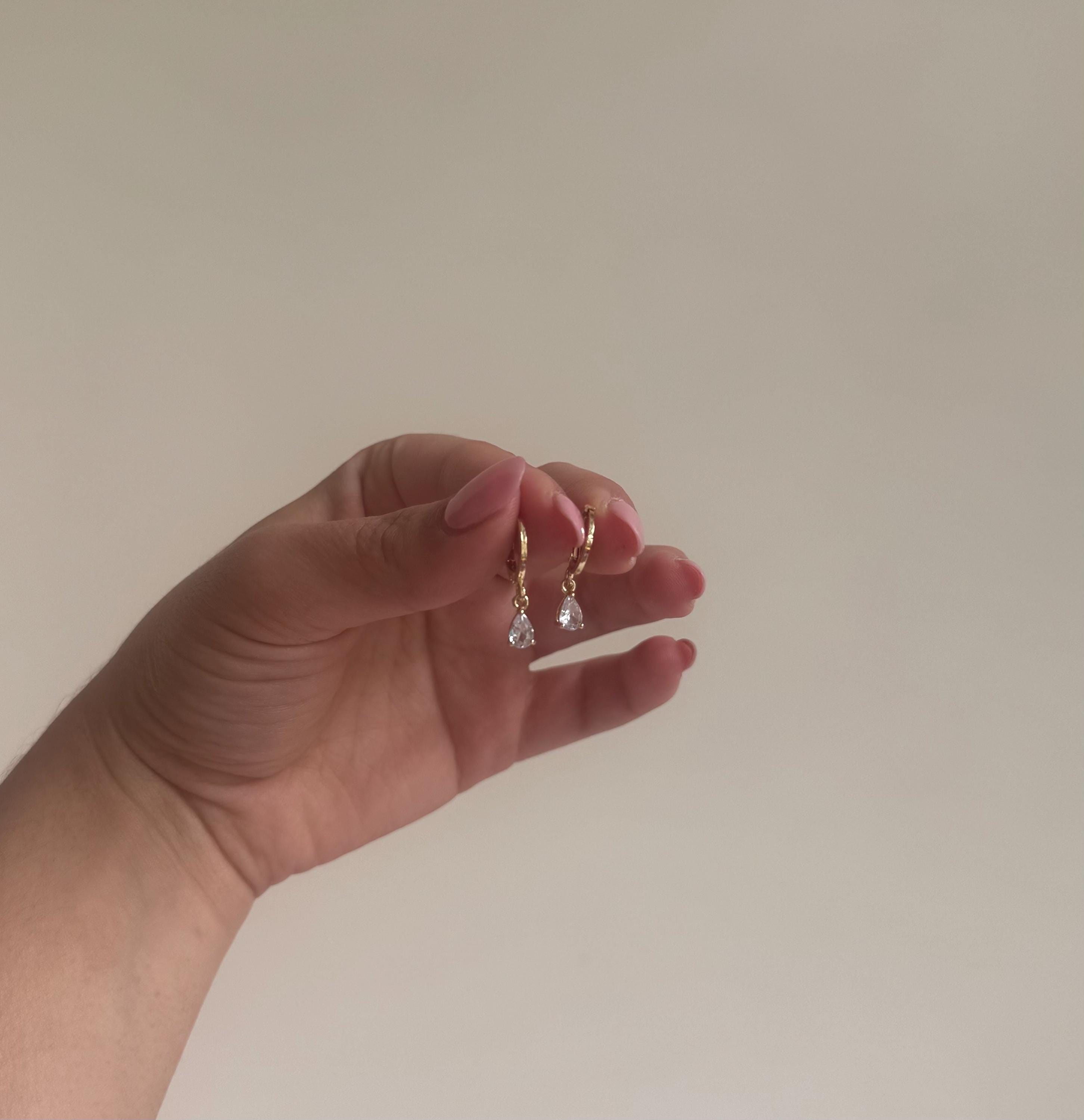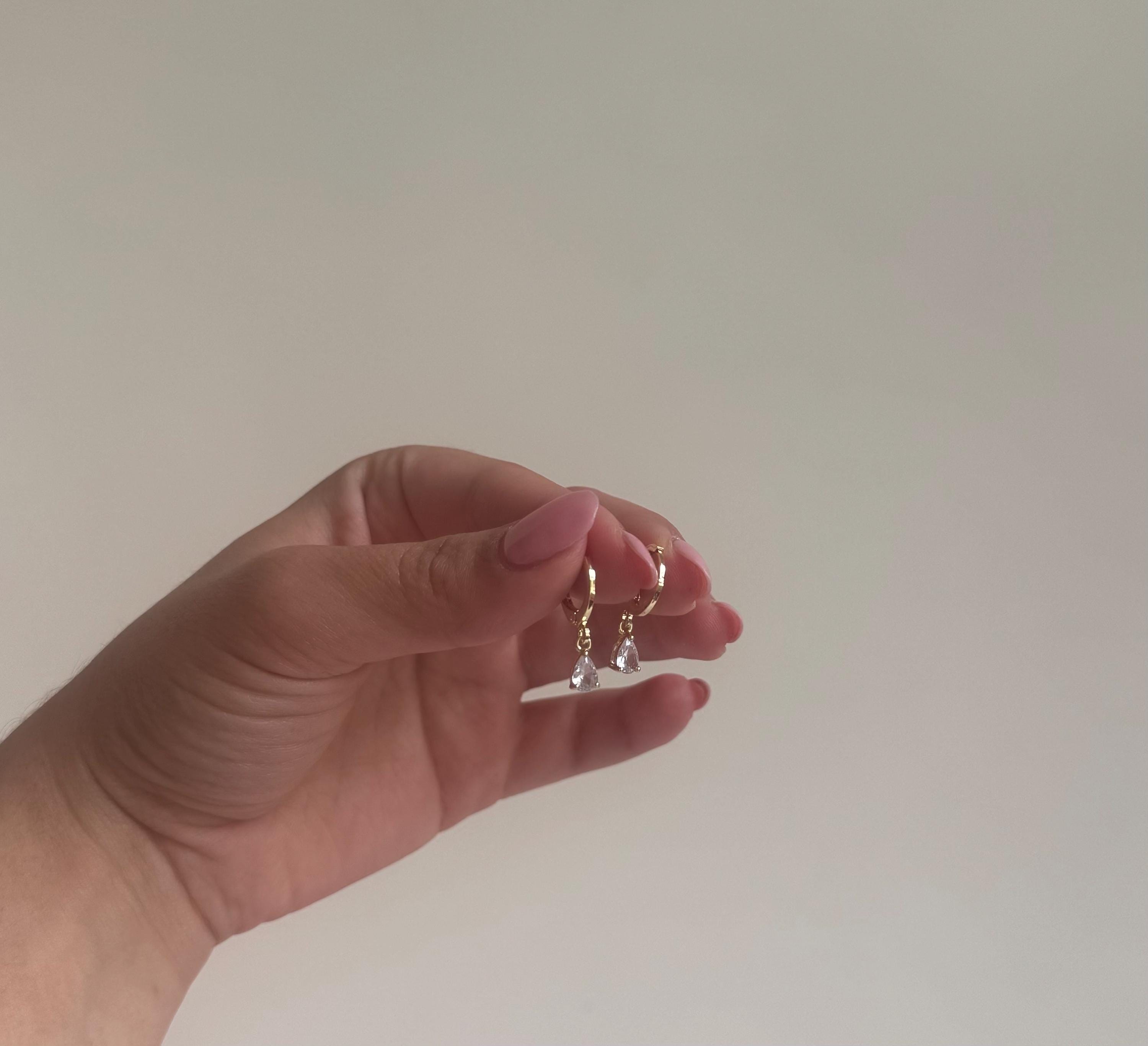 ✨ DETAILS: • Style: Teardrop stud earrings • Material: Stainless steel with white gold plating / Cubic zirconia stones • Design: Minimalist water droplet shape • Hypoallergenic & nickel-free – suitable for sensitive skin • Lightweight and comfortable for daily or occasion wear
