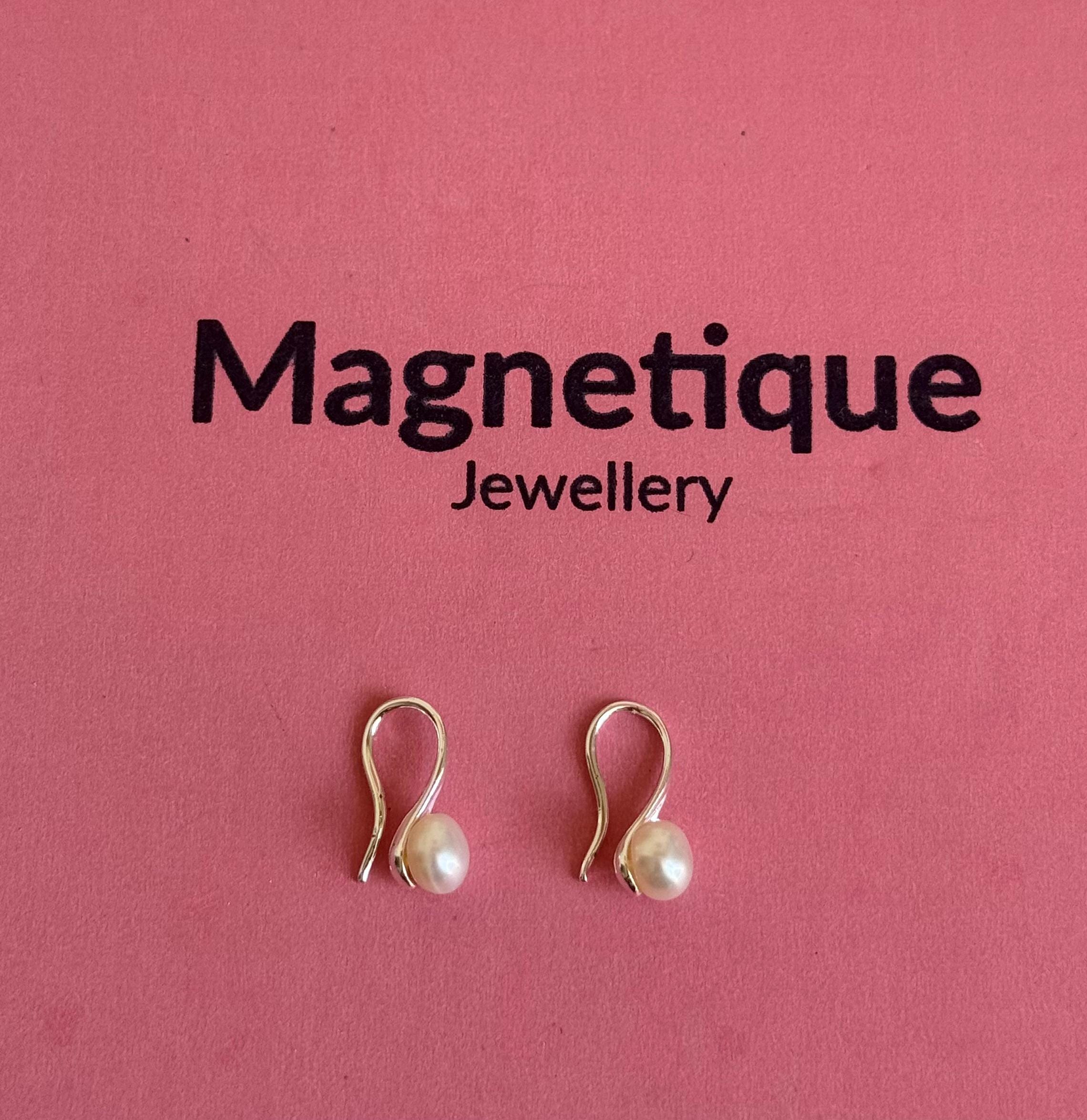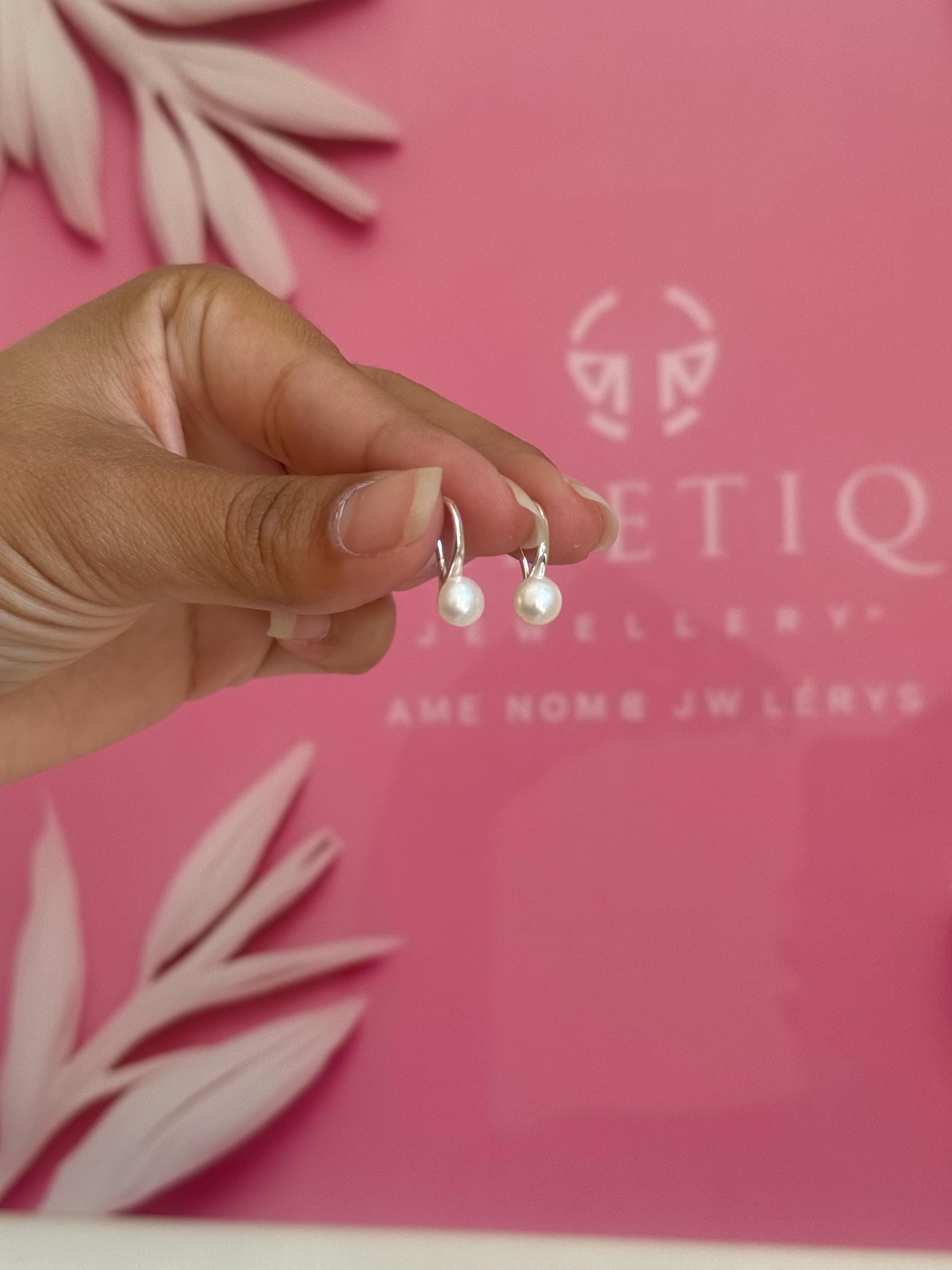 Elegant and timeless small K94 earrings crafted from genuine 925 sterling silver, featuring dainty freshwater pearls. Their minimalist curved design adds a modern touch to a classic style—lightweight, comfortable, and perfect for both everyday wear and special occasions.