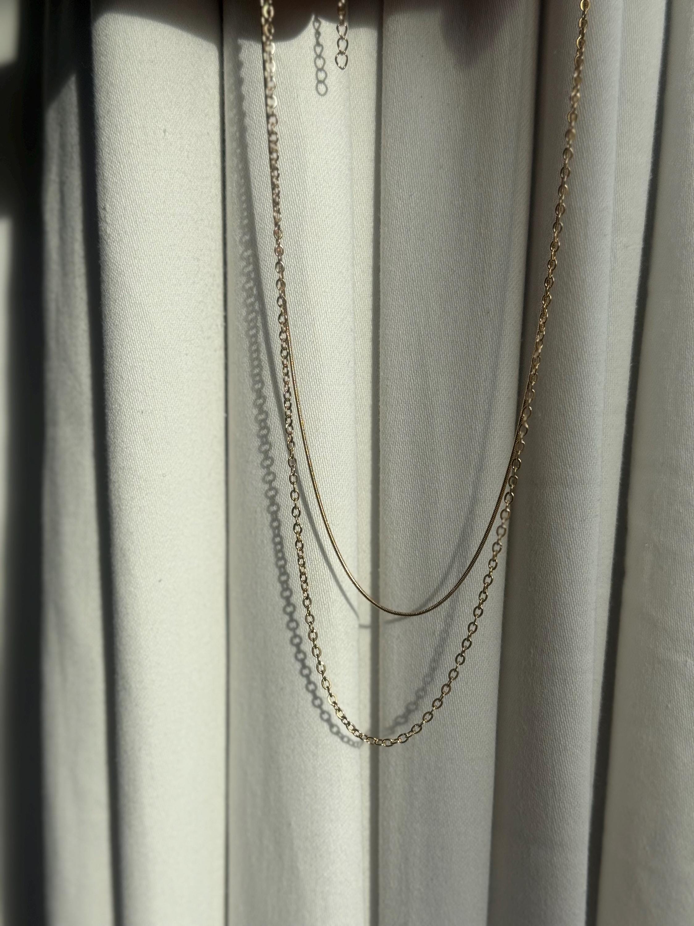 • Crafted from durable stainless steel • Gold-tone finish with two delicate chains for a modern layered look • Slim choker-style chain paired with a slightly longer chain • Lightweight, hypoallergenic & comfortable for all-day wear • Perfect for everyday styling or dressing up for special occasions