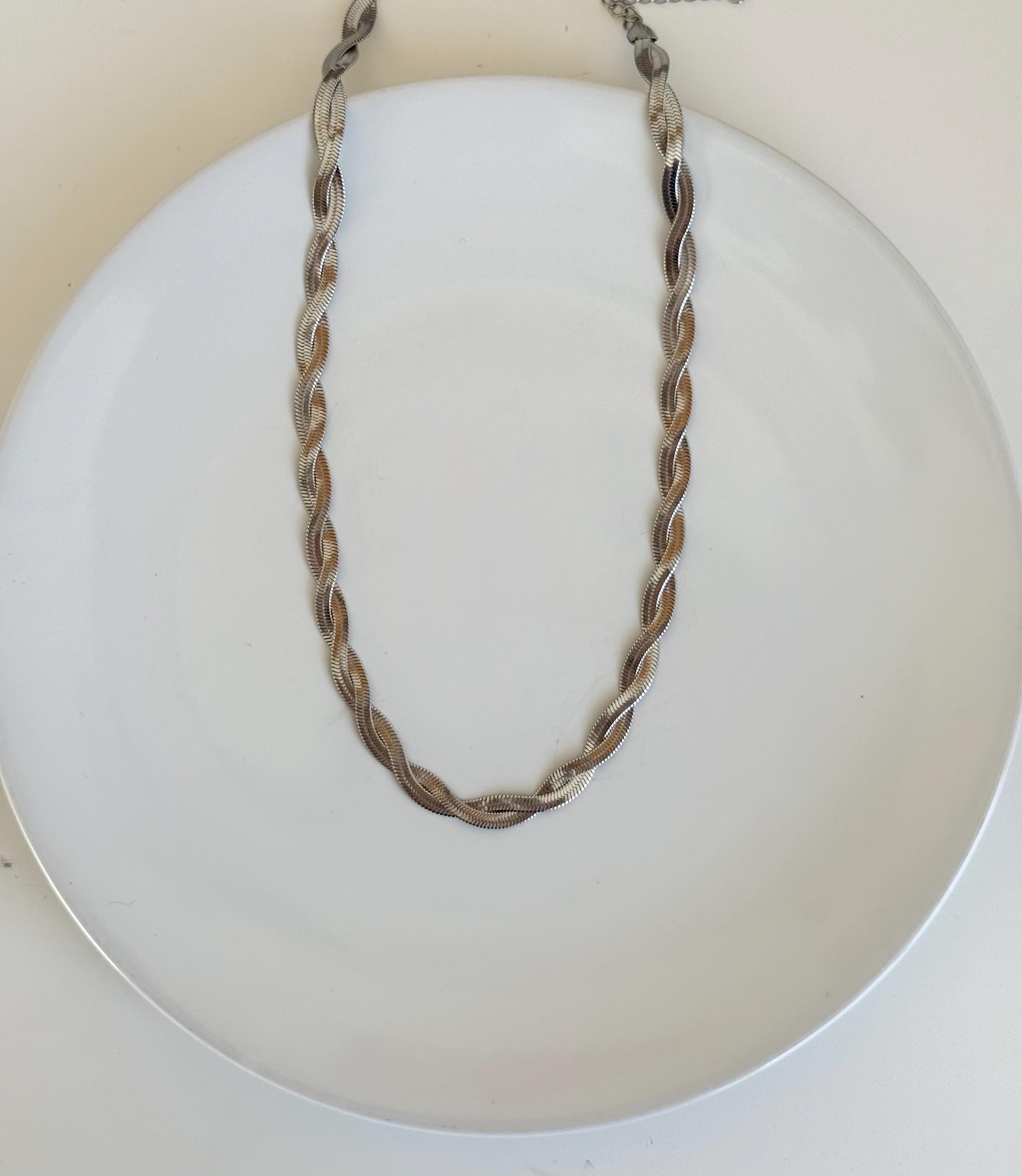 Add a stylish twist to your everyday look with this modern silver-tone rope chain necklace. Crafted from high-quality stainless steel, it features a unique intertwined design that catches the light beautifully. Lightweight, durable, and hypoallergenic—perfect for sensitive skin.