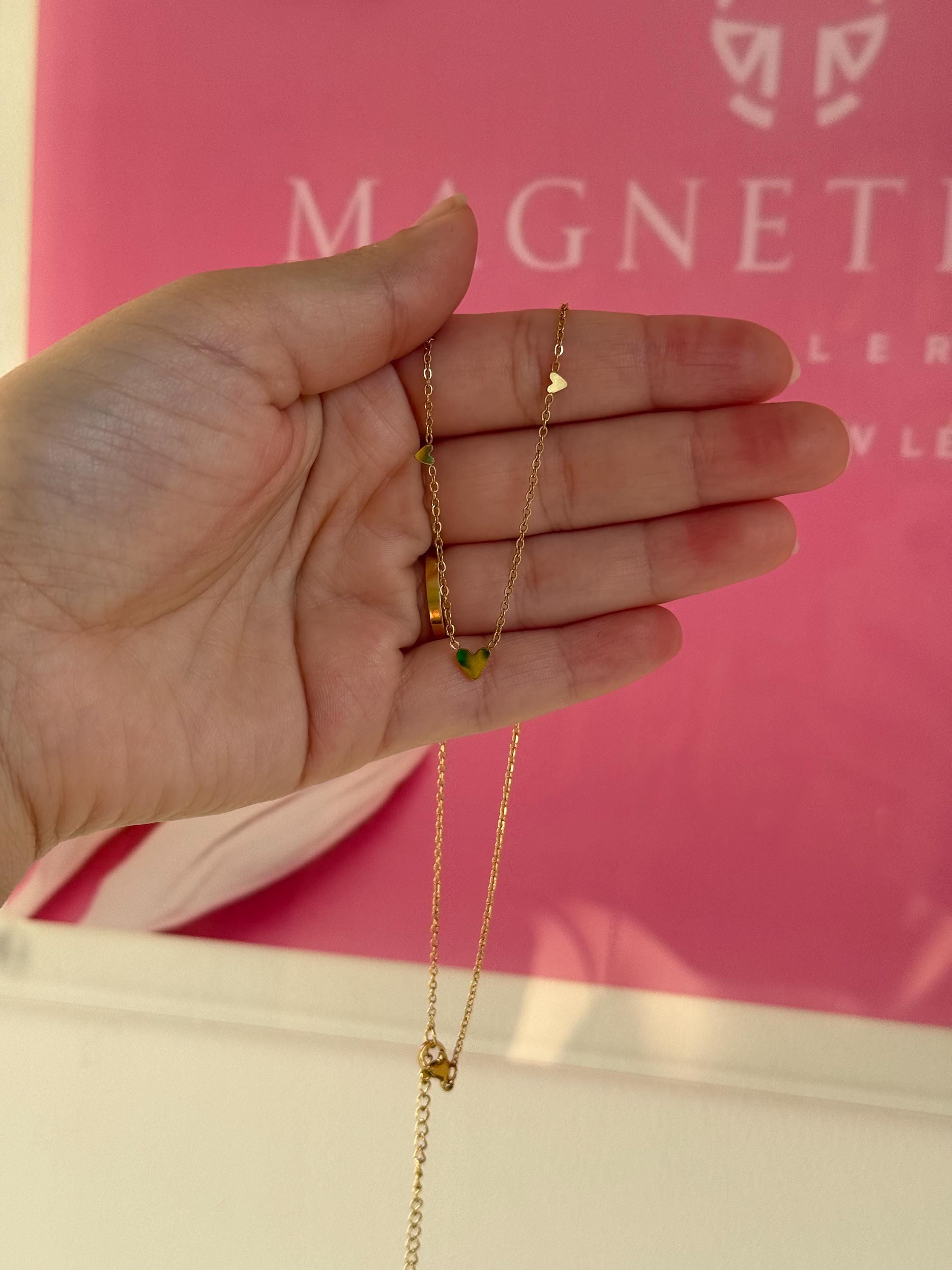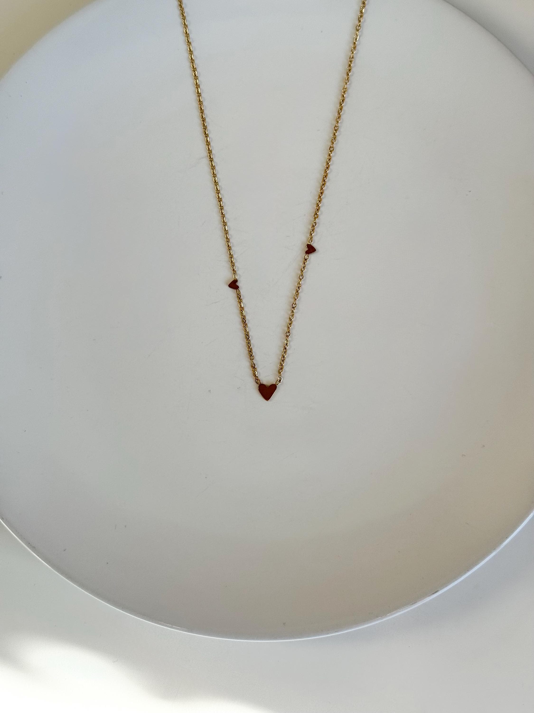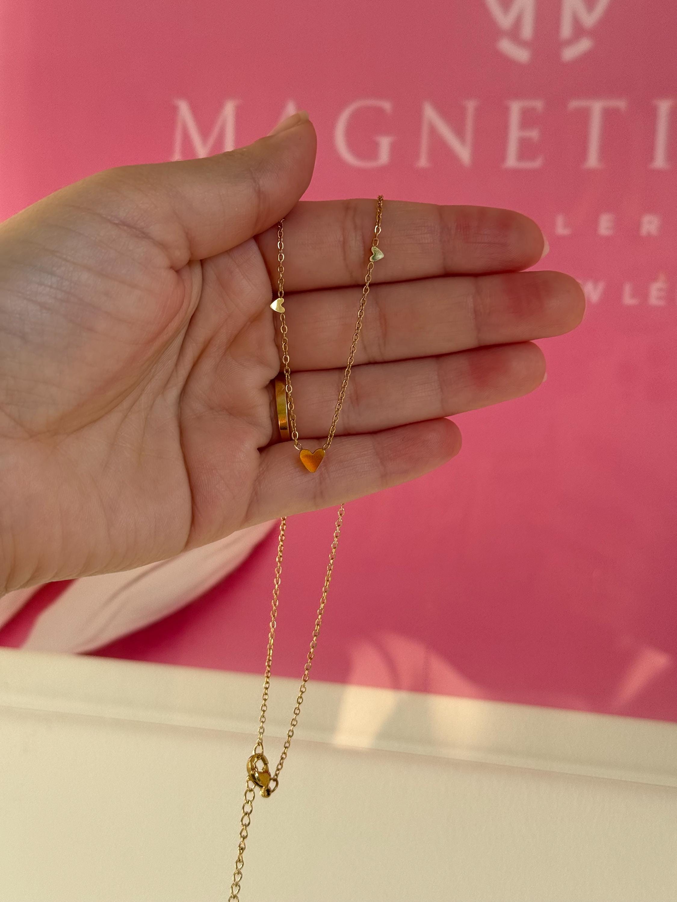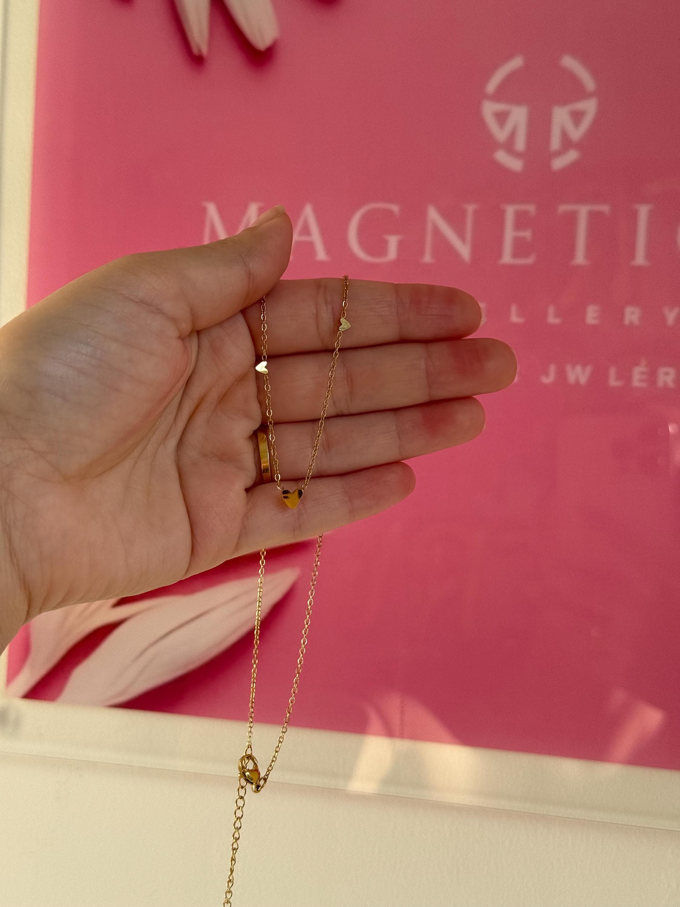 Features: - 18K gold plated stainless steel for lasting beauty - Three tiny heart charms for a romantic, minimalist aesthetic - Perfect for everyday wear, layering, or gifting - Hypoallergenic and tarnish-resistant - Dimensions: Chain length approximately [insert length], hearts size approximately [insert size]