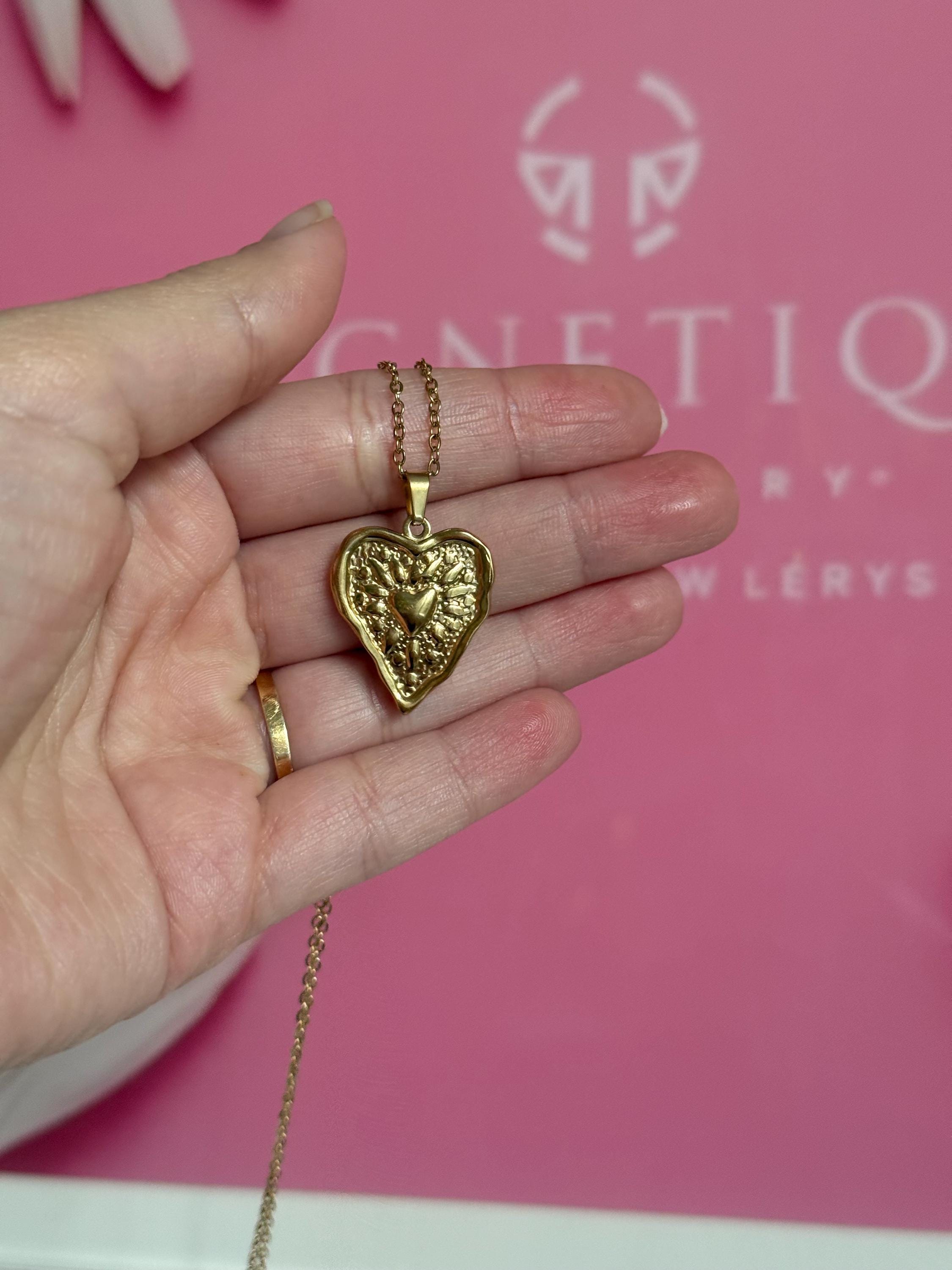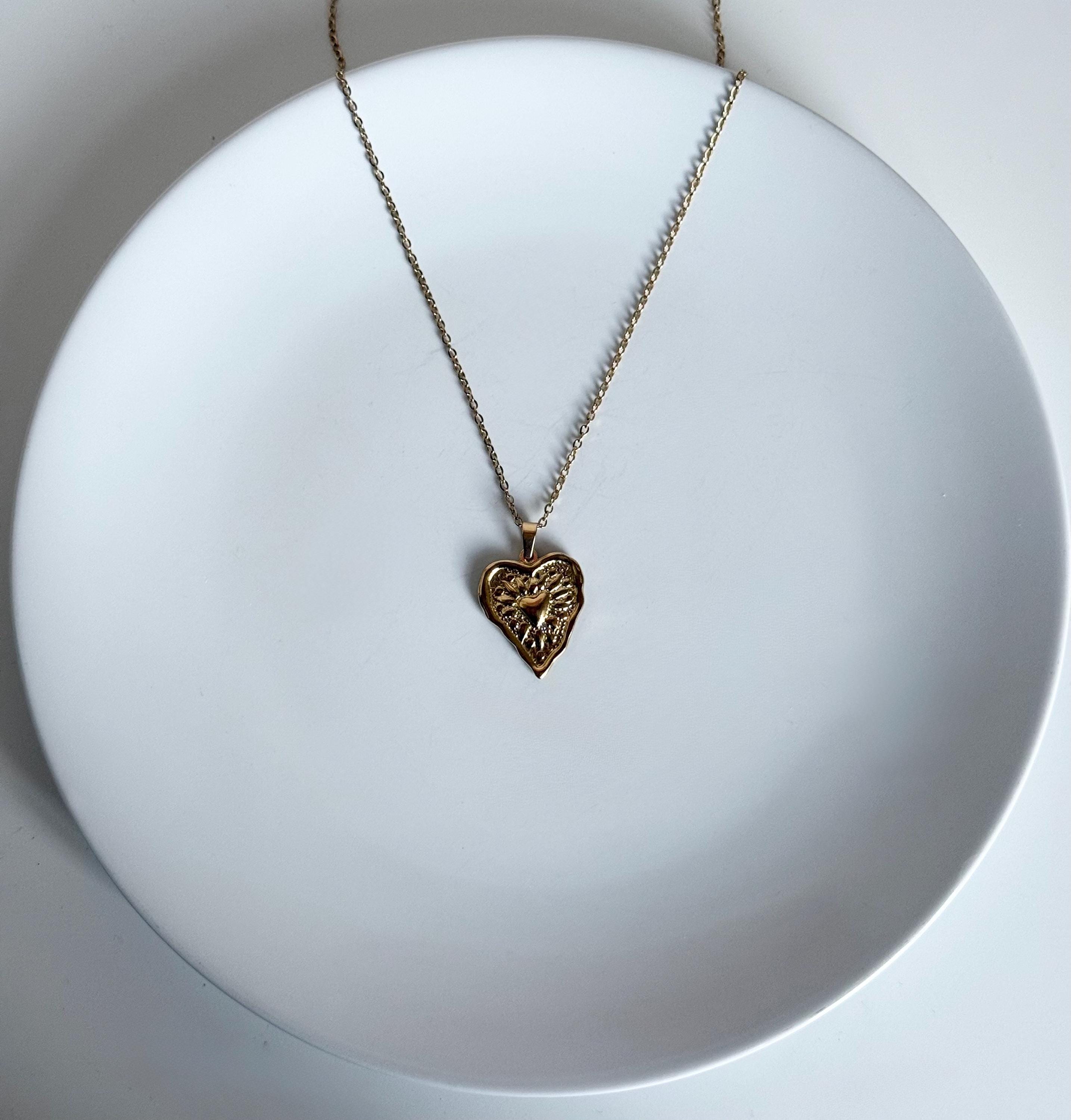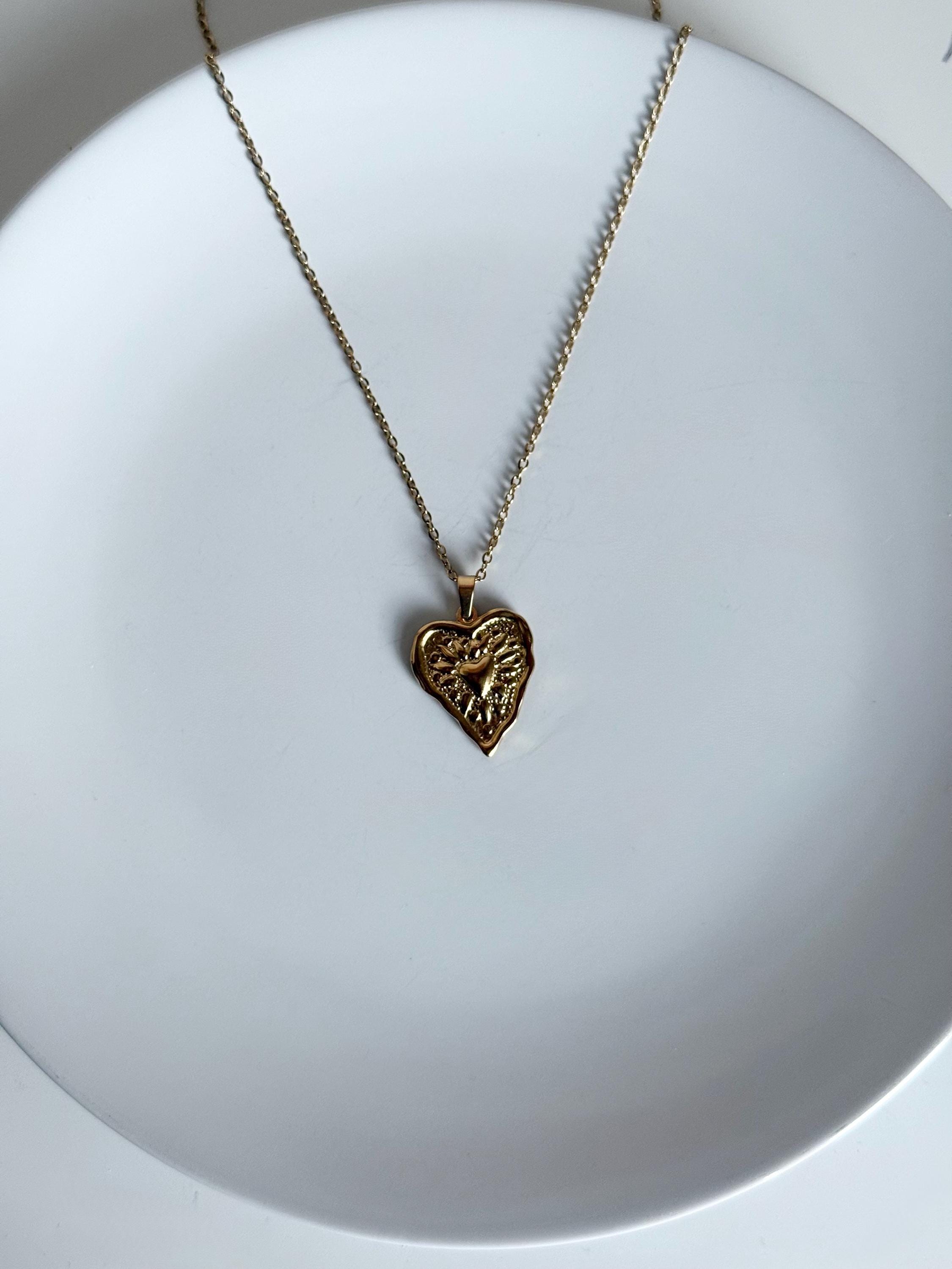Key features: * Made from high-quality stainless steel with an 18K gold plated finish * Features a textured Sacred Heart pendant with intricate detailing * Lightweight and comfortable for daily wear * Perfect for layering or wearing alone as a statement piece * A meaningful gift for women, loved ones, or yourself