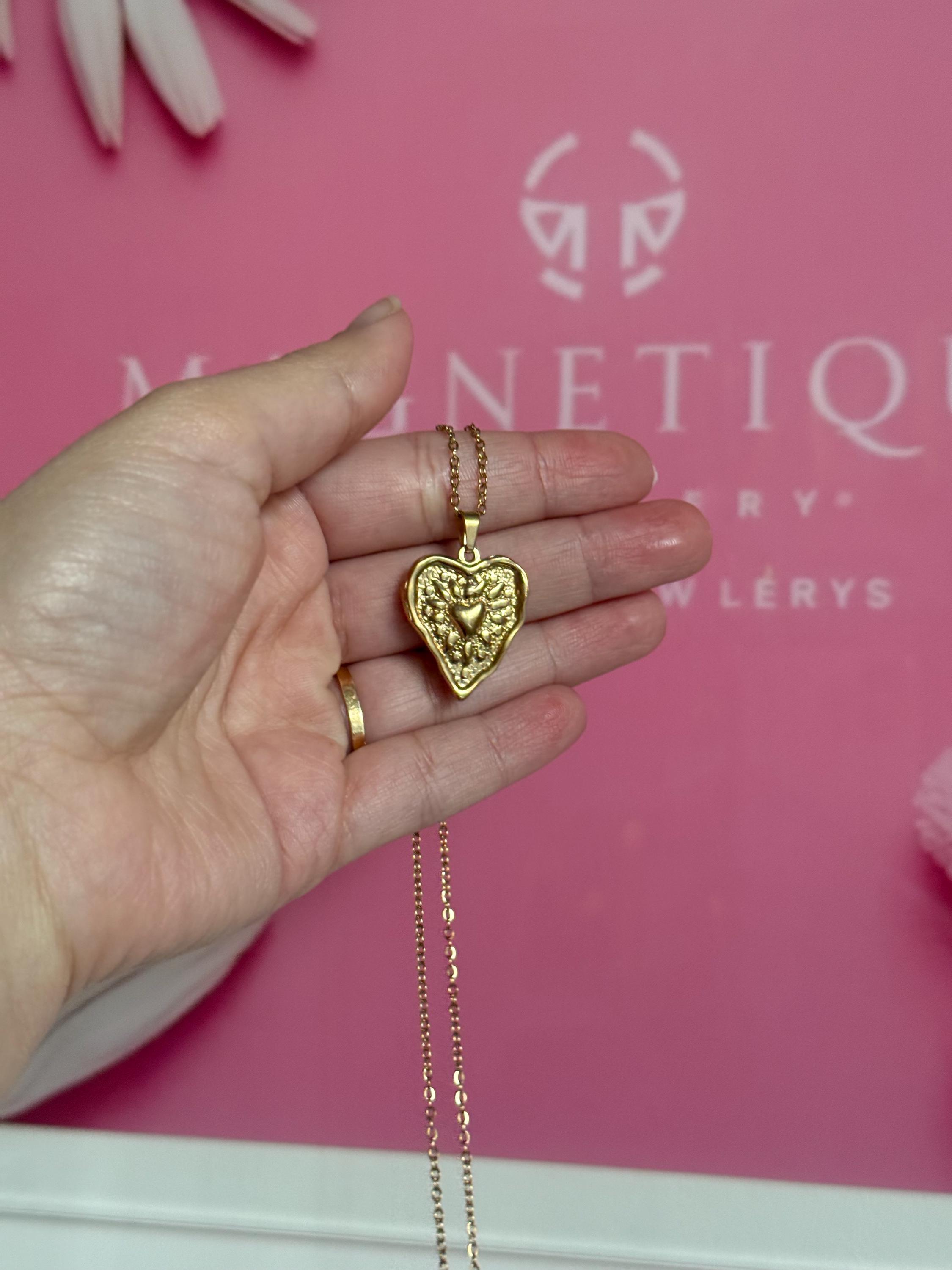 Add a touch of vintage charm and heartfelt symbolism with this beautiful gold heart necklace – a personal gift that speaks volumes. Perfect for gifting on special occasions or as a cherished personal keepsake.