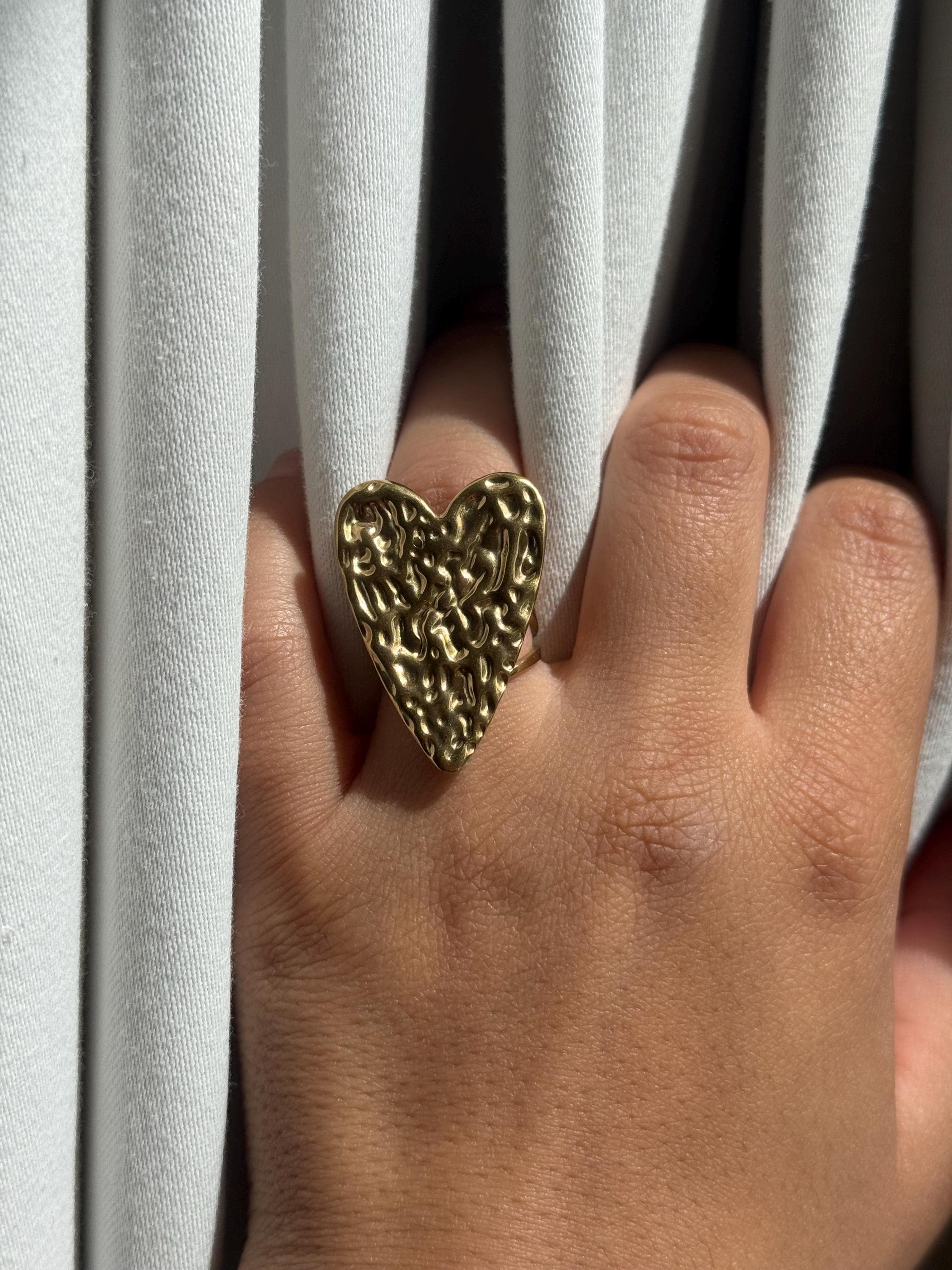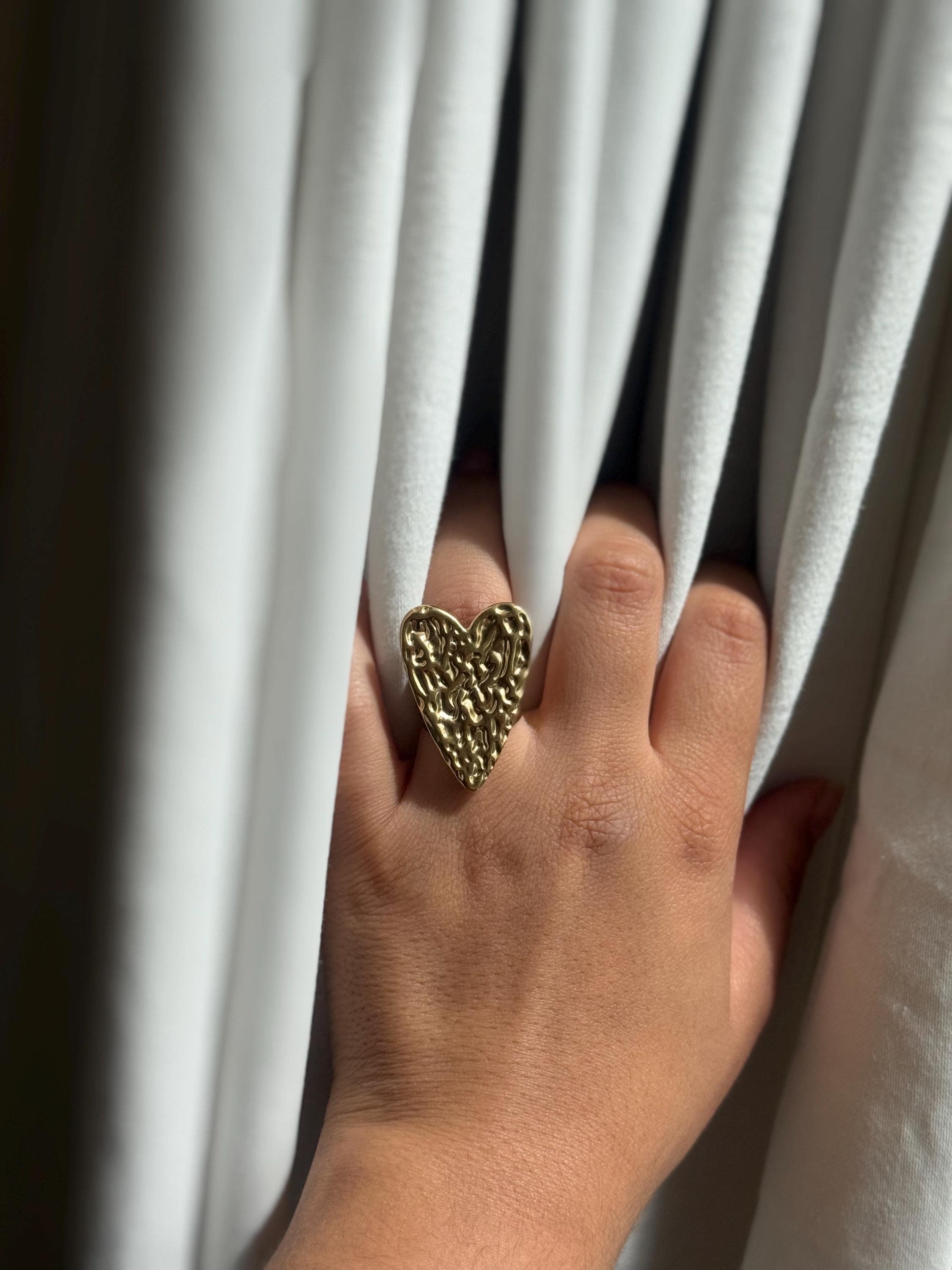 Make a statement with this stunning Statement Open Ring featuring a bold heart shape crafted from high-quality stainless steel in a luxurious gold tone. The textured surface adds a touch of modern sophistication, while the oversized silhouette effortlessly elevates any outfit. Fully adjustable for a perfect fit, this unique fashion ring is designed to suit all styles and finger sizes, making it an ideal gift for her or a special treat for yourself. Whether you're dressing up for a night out or adding a chic accent to everyday wear, this eye-catching piece is sure to turn heads.