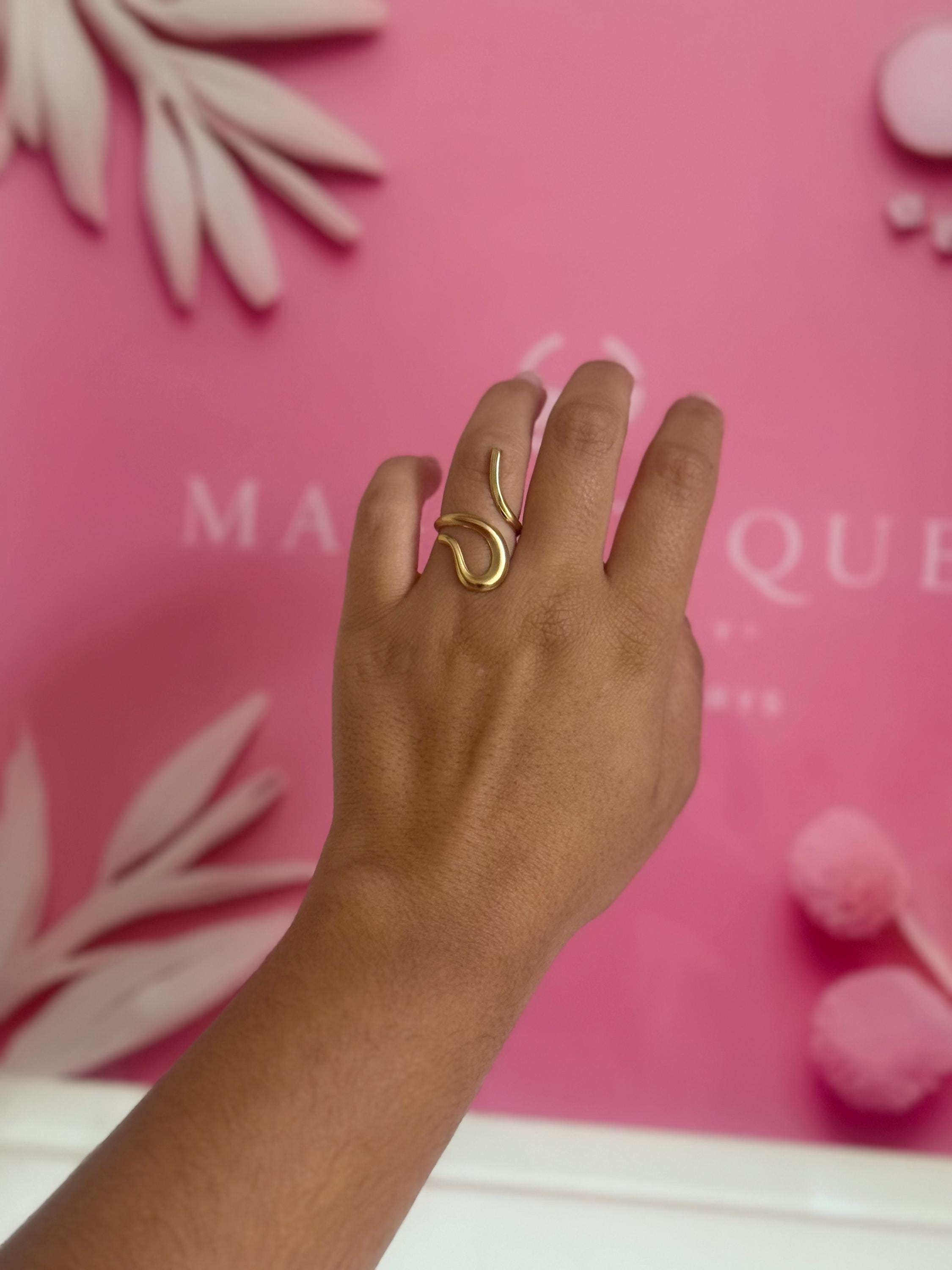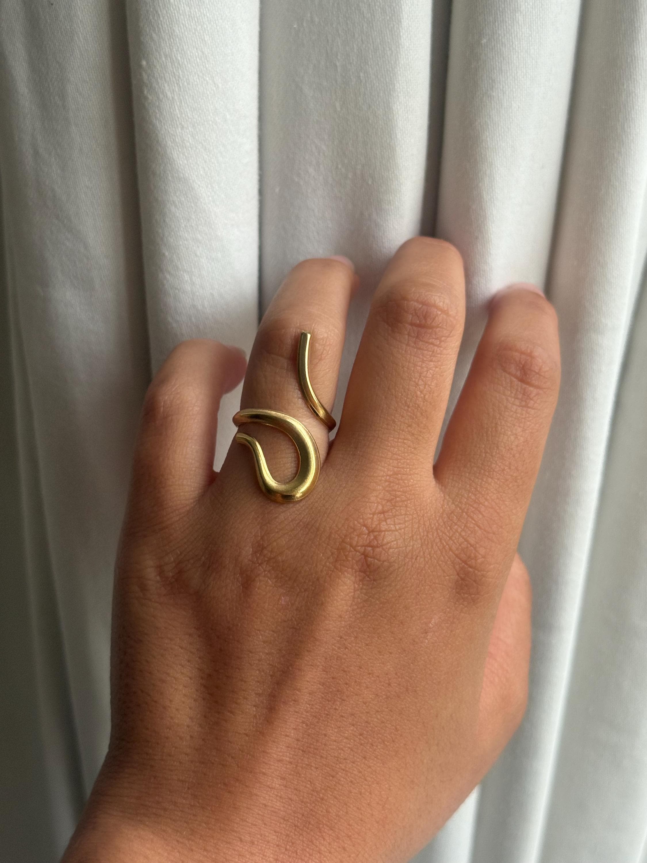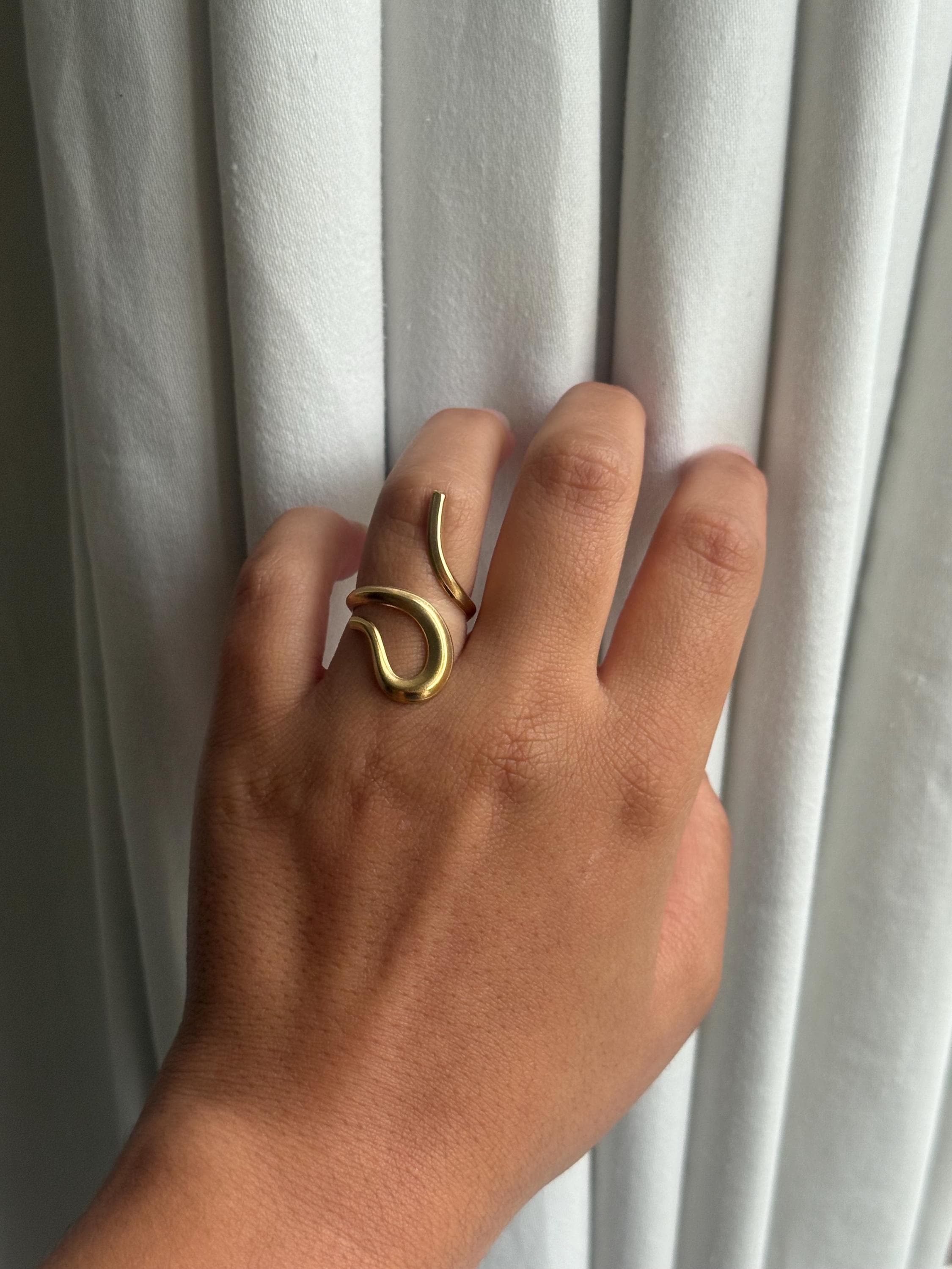 Key features: - Polished gold-tone stainless steel finish for a luxurious shine - Minimalist open design with a contemporary wave shape - Adjustable band for a perfect fit on most fingers - Lightweight, durable, and hypoallergenic – ideal for sensitive skin - Suitable for gifting or personal treat