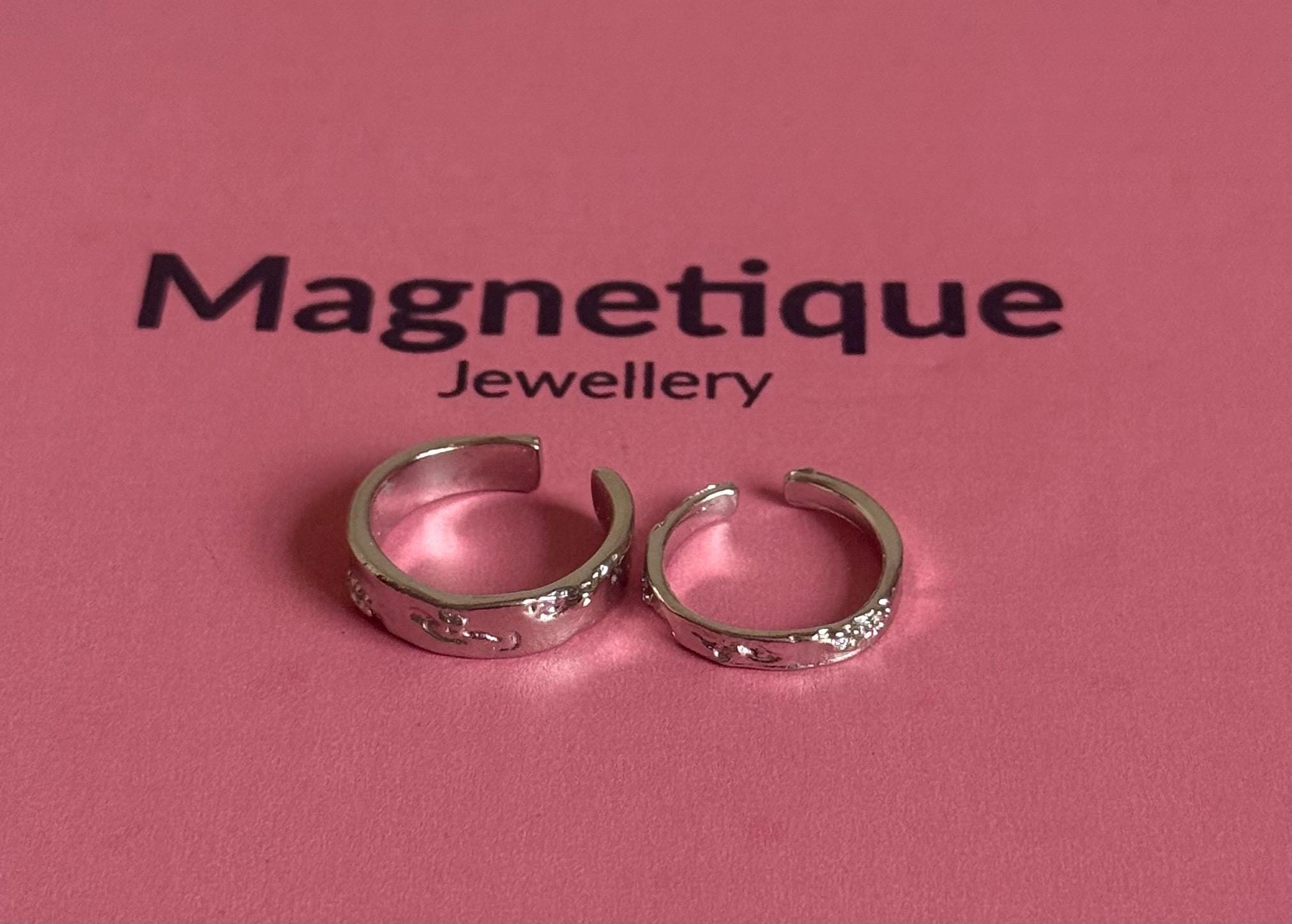 Add a touch of minimalist elegance to your jewelry collection with these stunning adjustable open rings silver jewellery from Magnetique Jewellery. Crafted in a sleek silver-tone, these engraved rings feature delicate carved accents that enhance their unique charm. Perfect for everyday wear or special occasions, these versatile rings can be worn alone for a sleek, clean look or stacked together for a trendy, layered style.