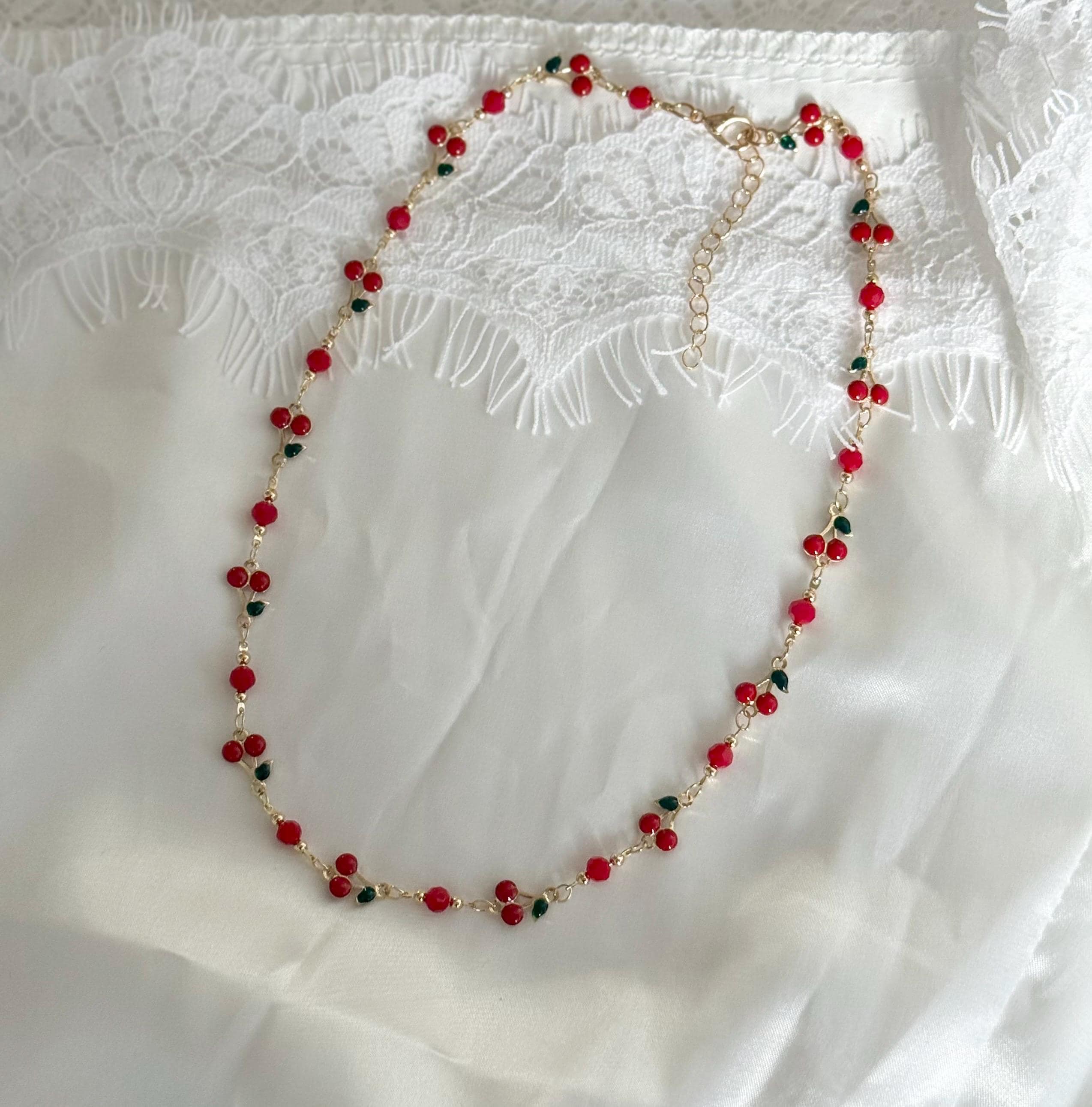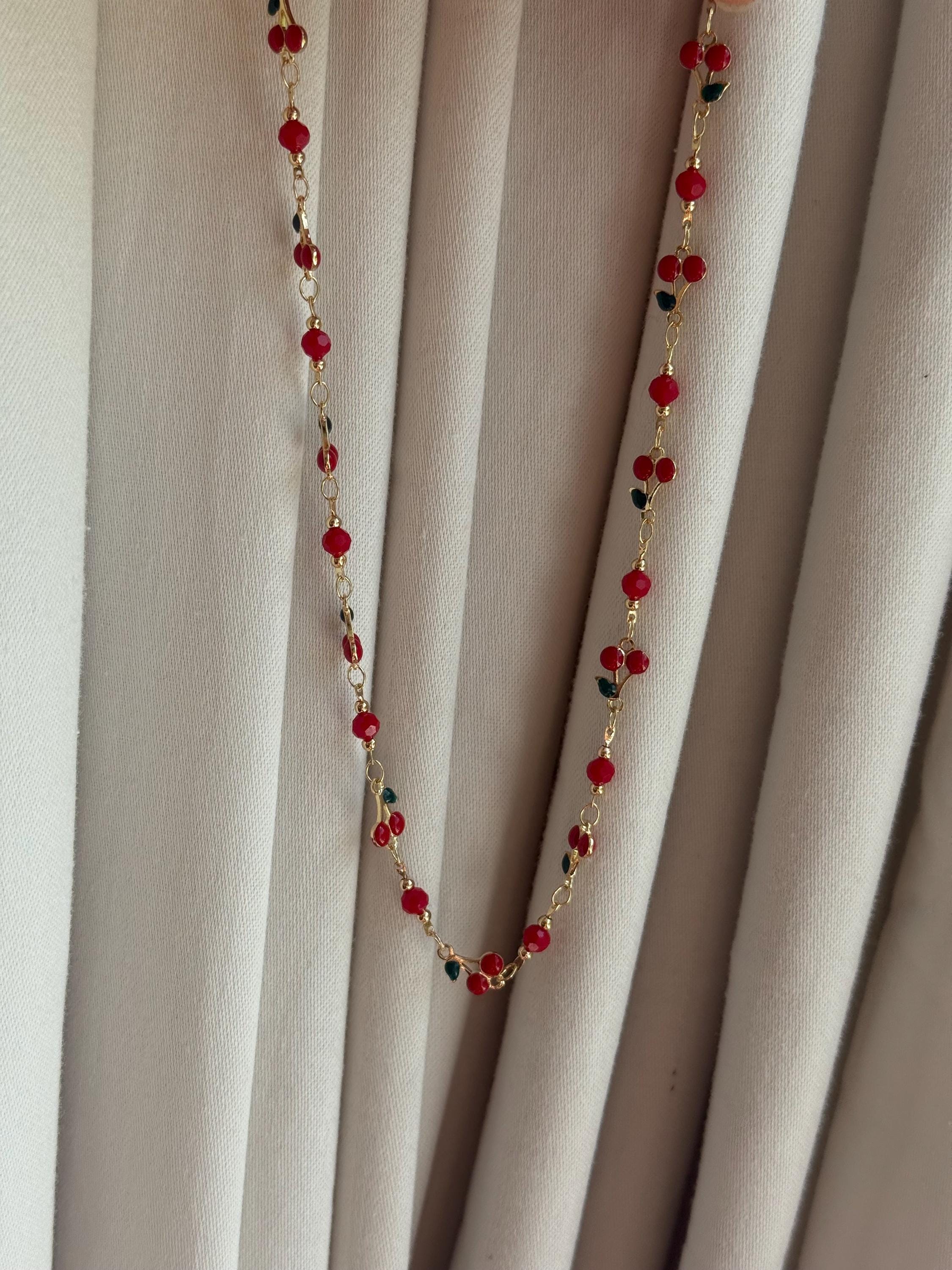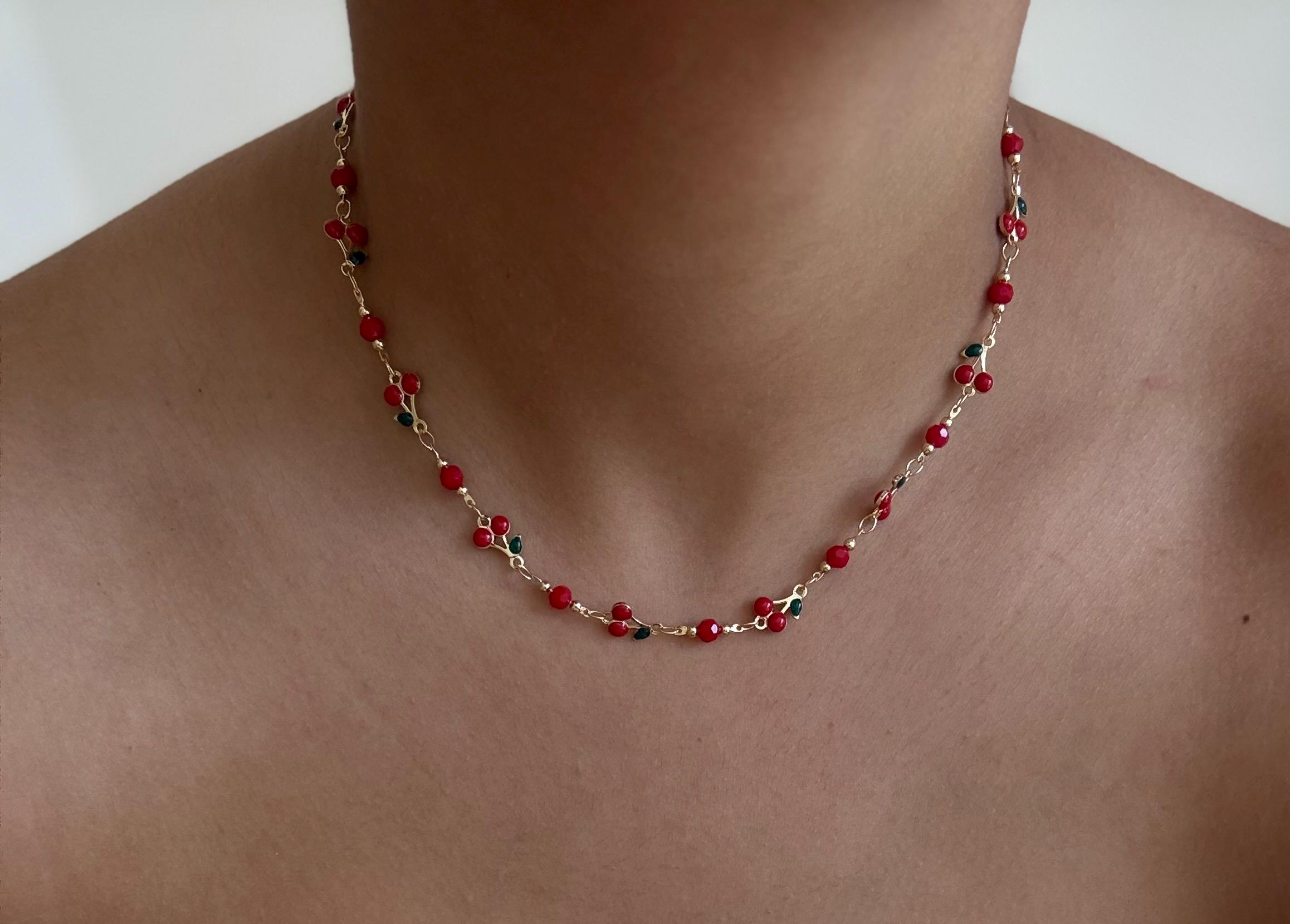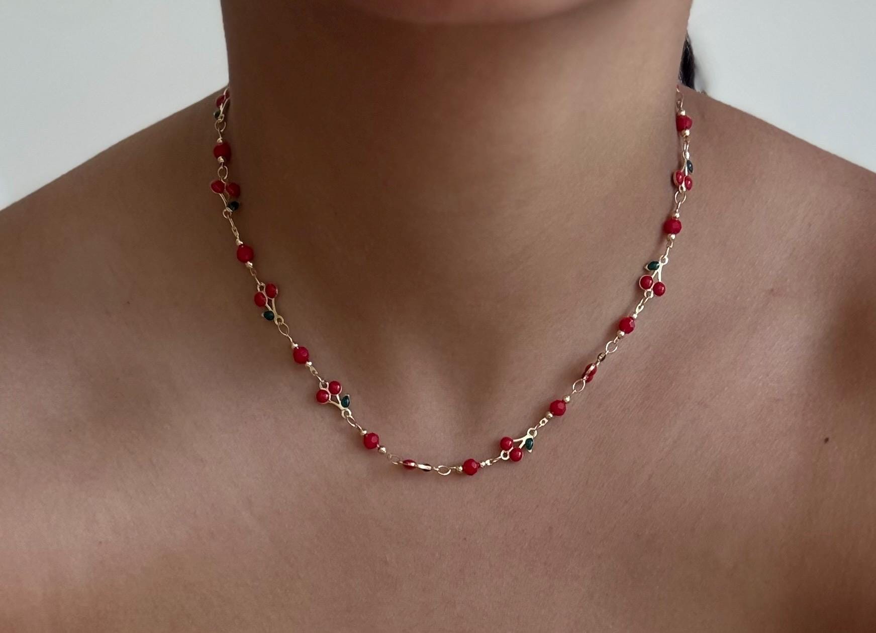 Whether you're seeking a sweet gift or a delightful addition to your jewelry collection, this cherry bead necklace is sure to bring a cheerful, aesthetic touch to your style!