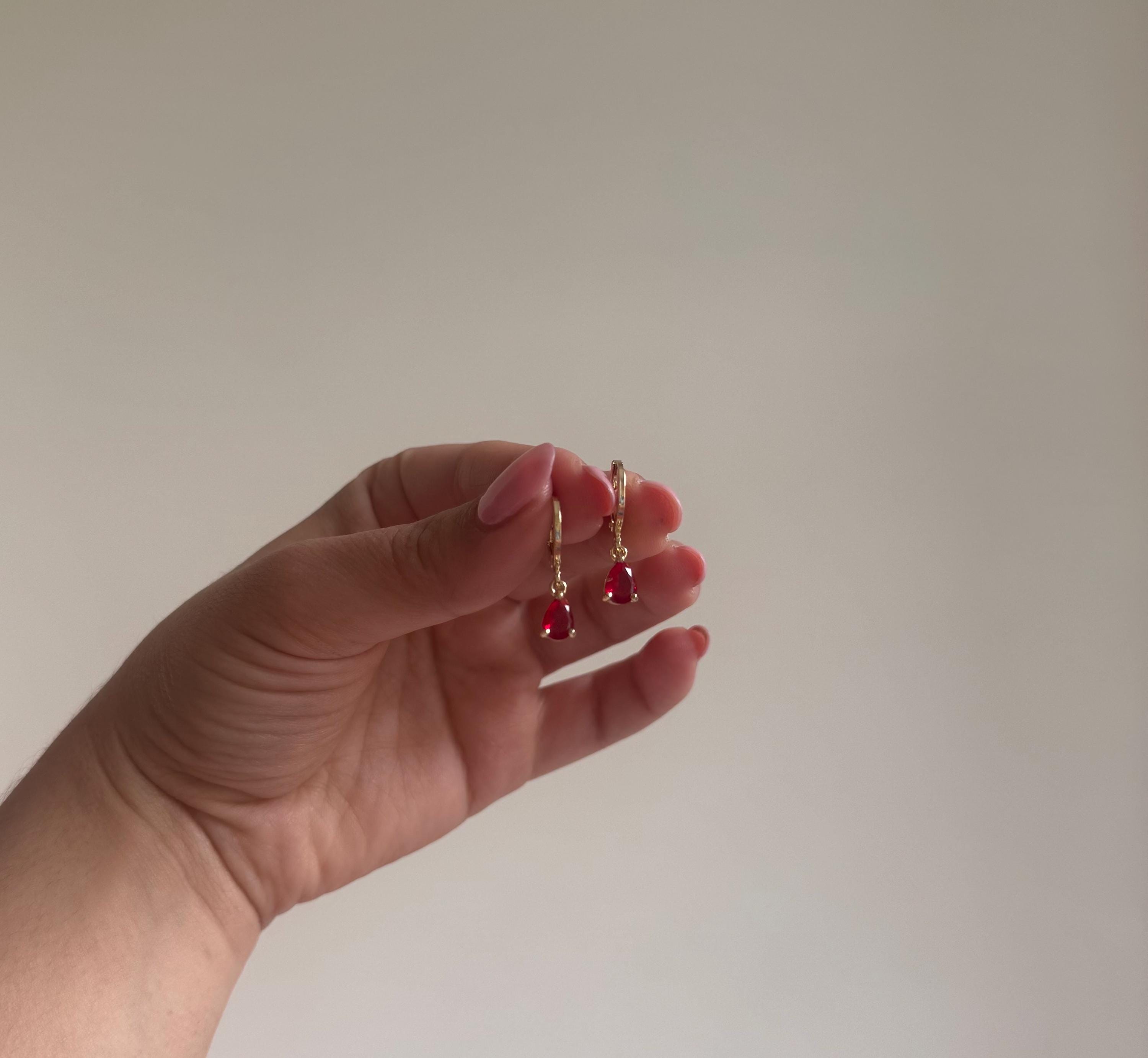 Add a pop of color and elegance to any look with these stunning Red Zircon Teardrop Earrings from Magnetique Jewellery. Crafted from high-quality stainless steel with a polished gold tone, these earrings combine timeless style with modern durability. The brilliant-cut red zircon stones are carefully set in a charming teardrop shape that beautifully catches the light with every movement, creating a captivating sparkle.
