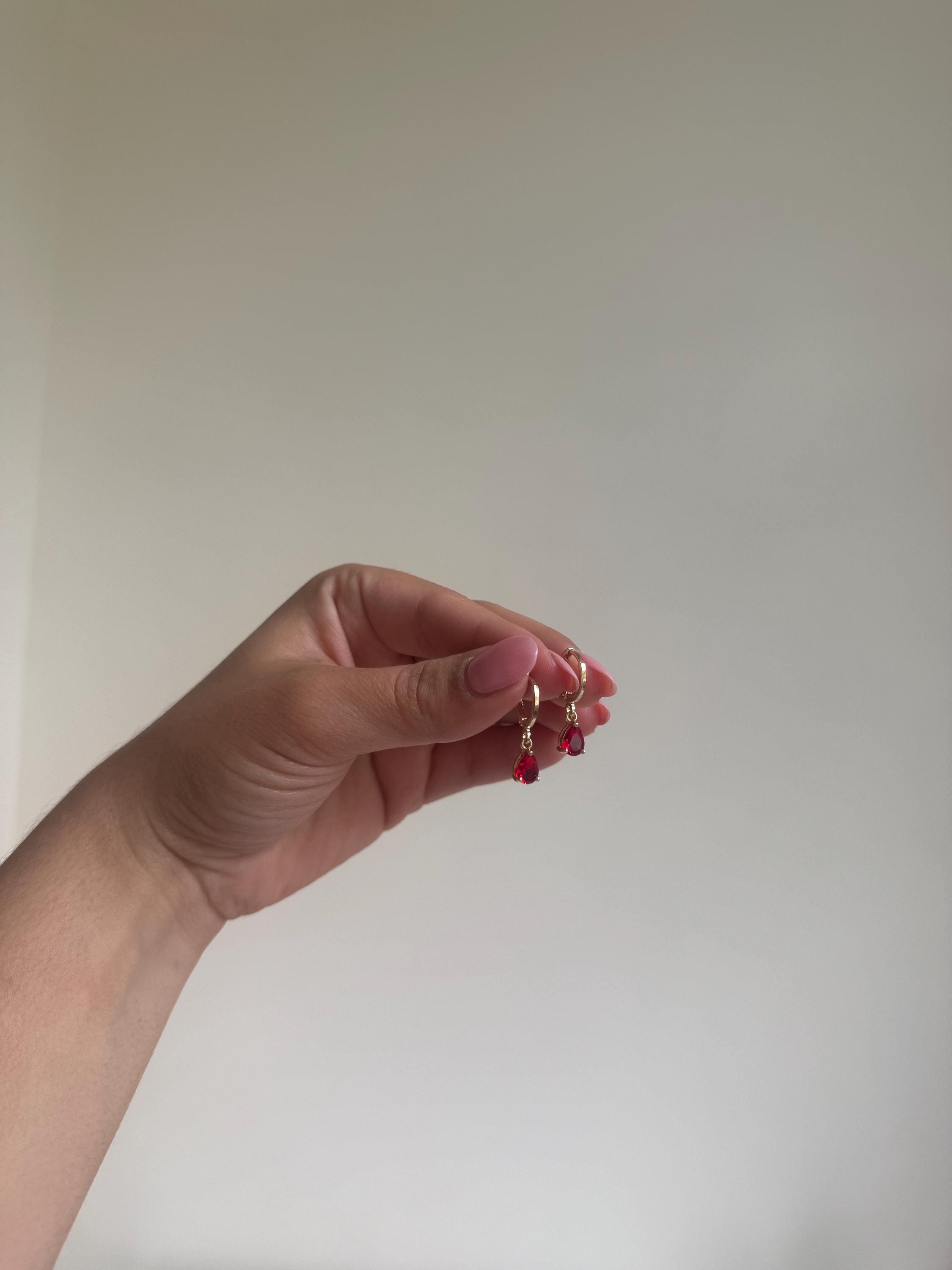 Key features: * Material: Premium stainless steel in a radiant gold tone * Stone: Vibrant red teardrop zircon * Hypoallergenic and fade-resistant for sensitive skin * Lightweight and comfortable for all-day wear * Tarnish-resistant for lasting shine