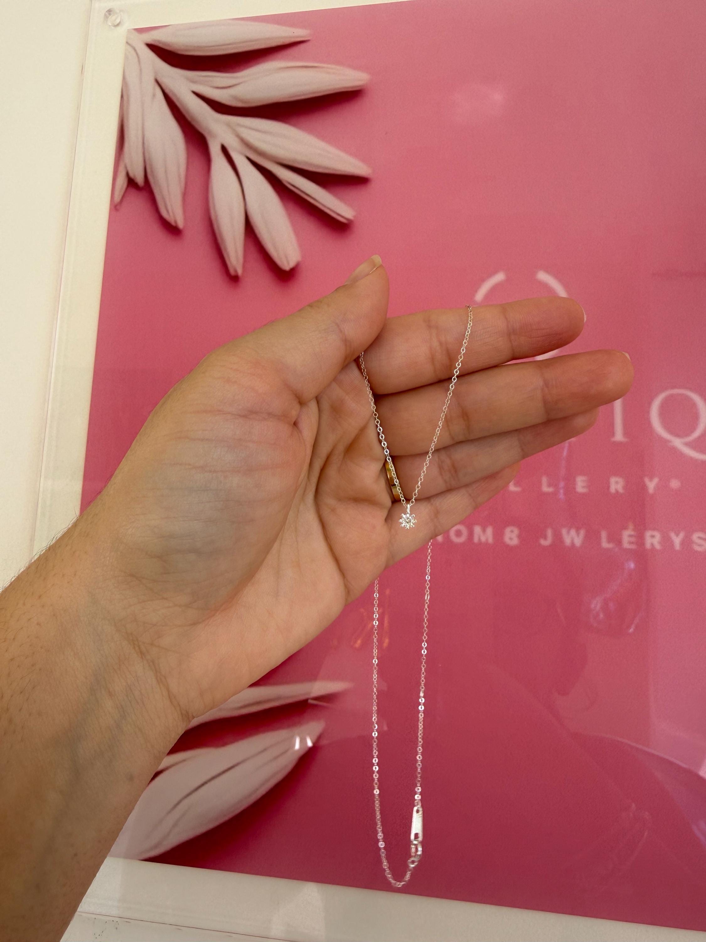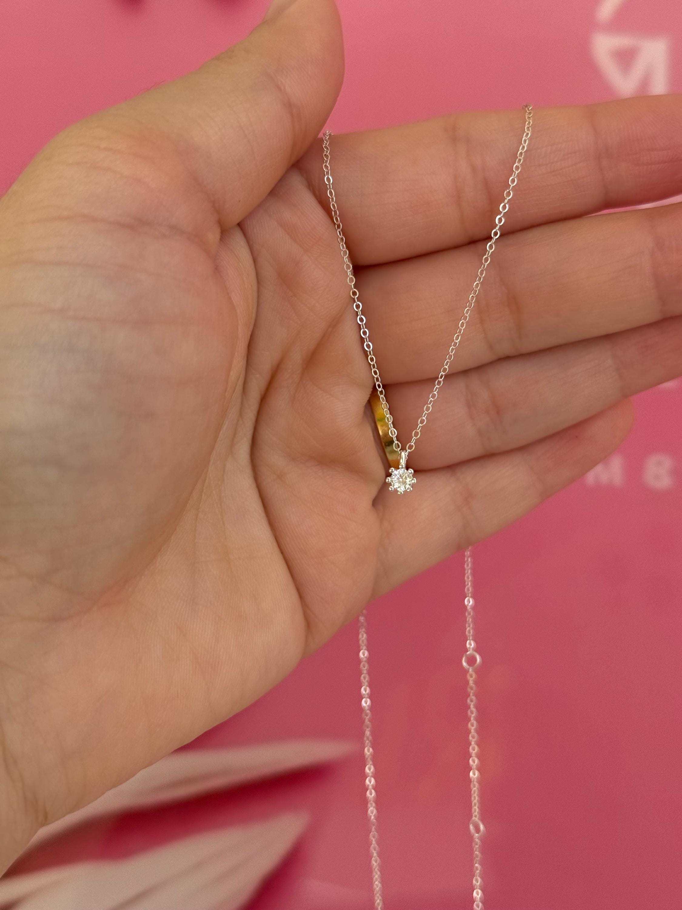 Elevate your jewelry collection with this exquisite 925 Sterling Silver Jewellery , Bride Necklace, a perfect wedding accessory that combines timeless elegance with modern simplicity. Crafted from genuine sterling silver, this dainty solitaire pendant features a sparkling crystal that beautifully catches the light, adding a subtle yet sophisticated glow to your bridal look or everyday wear.