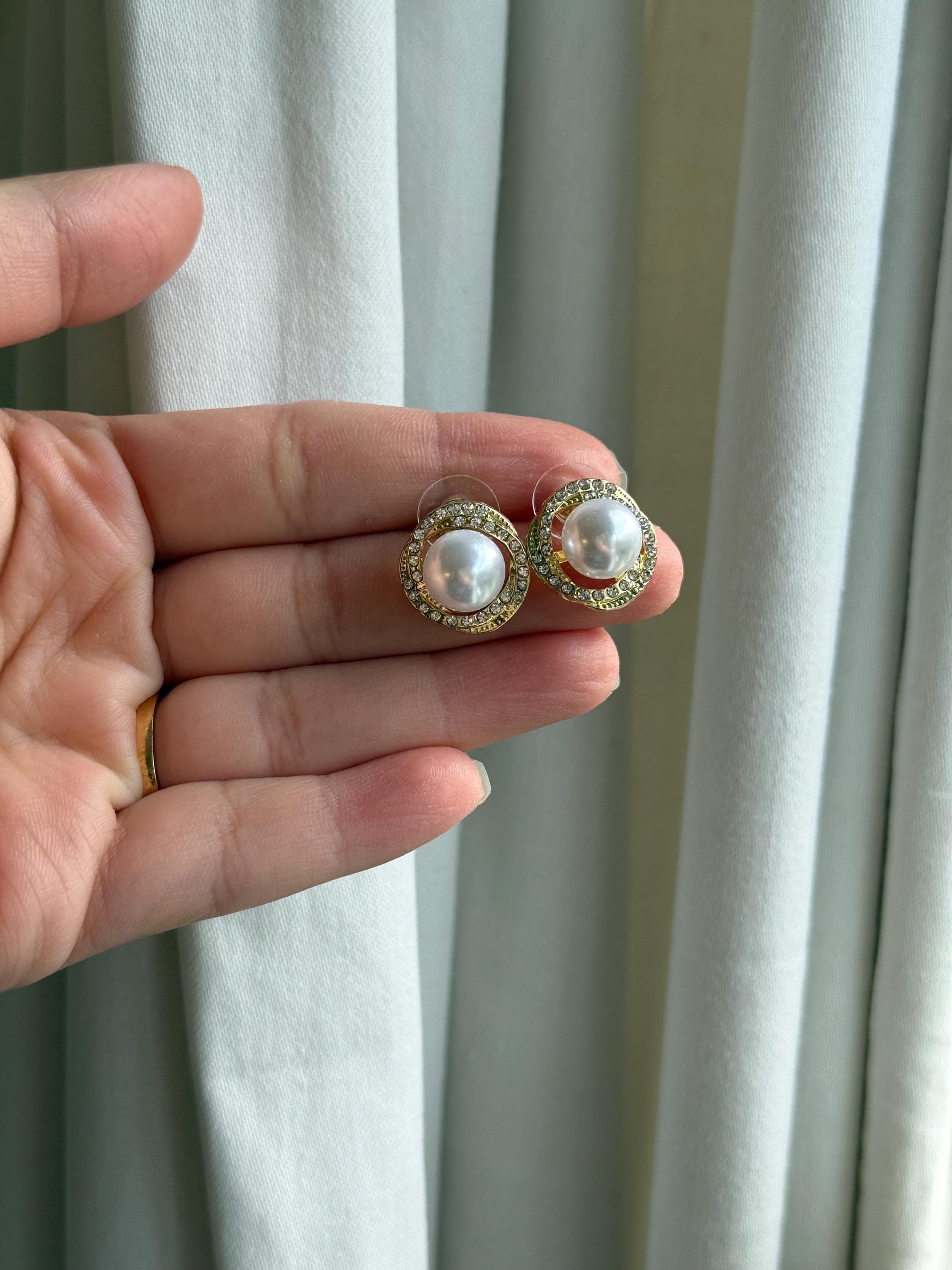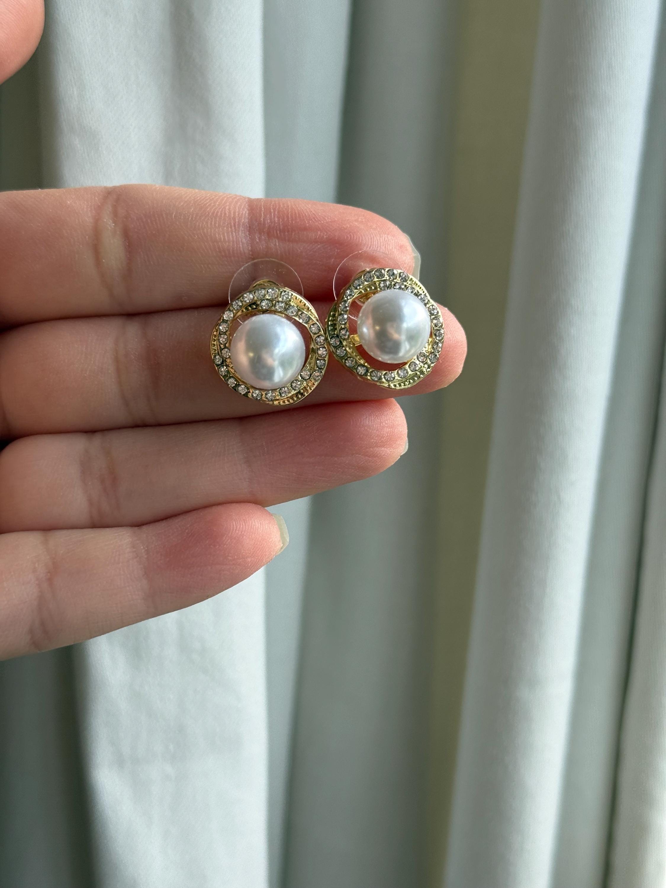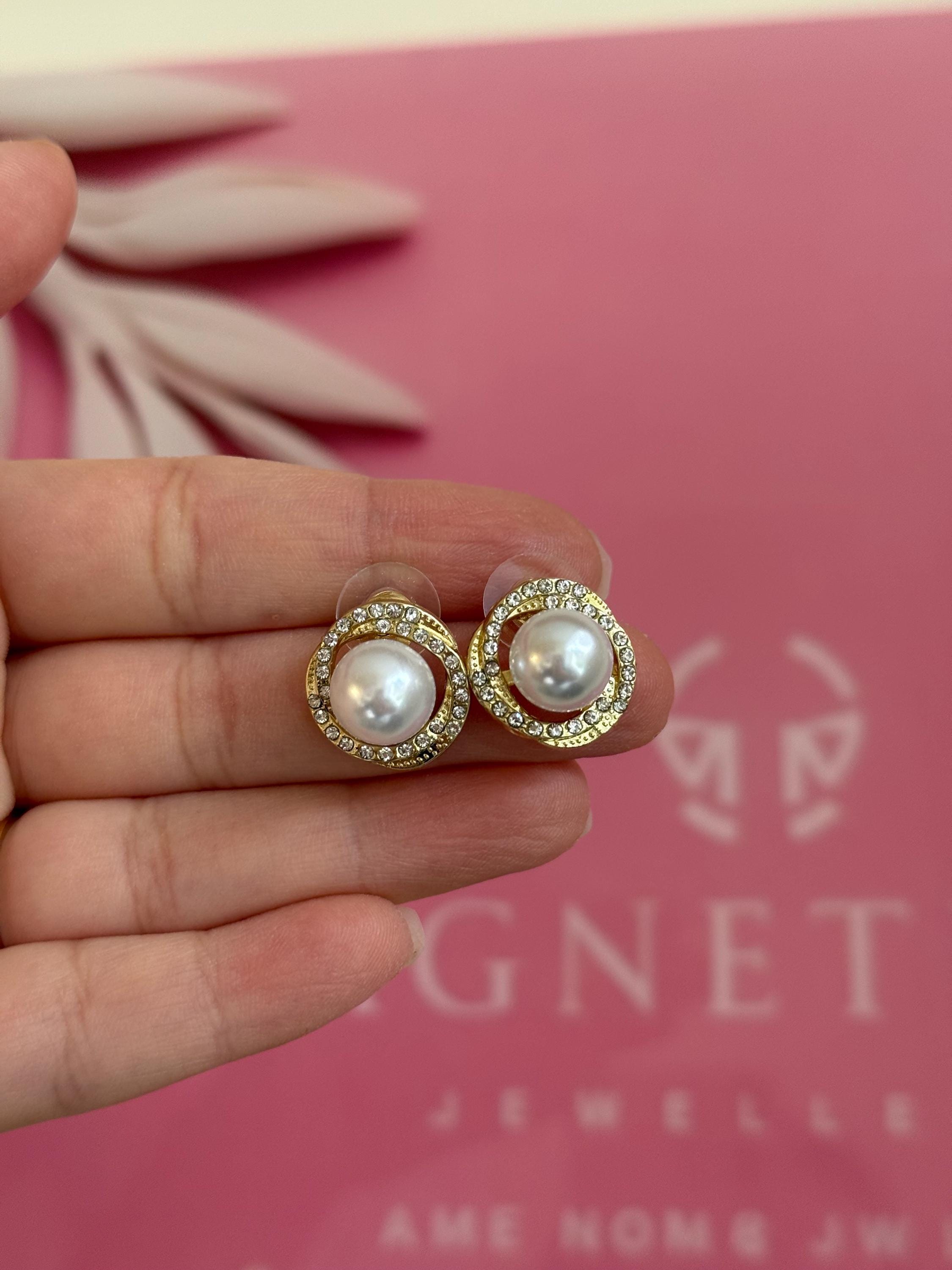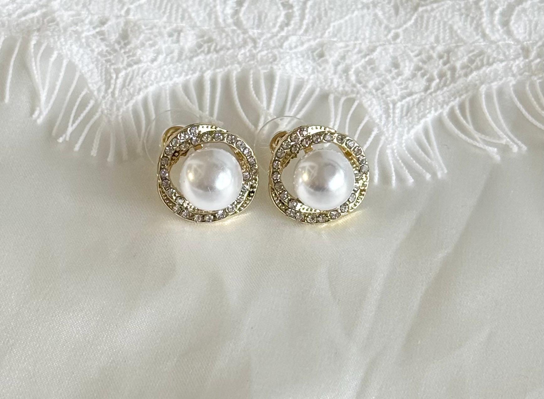 Add timeless elegance to your look with these gold halo pearl stud earrings, designed to elevate both everyday outfits and special occasions.
