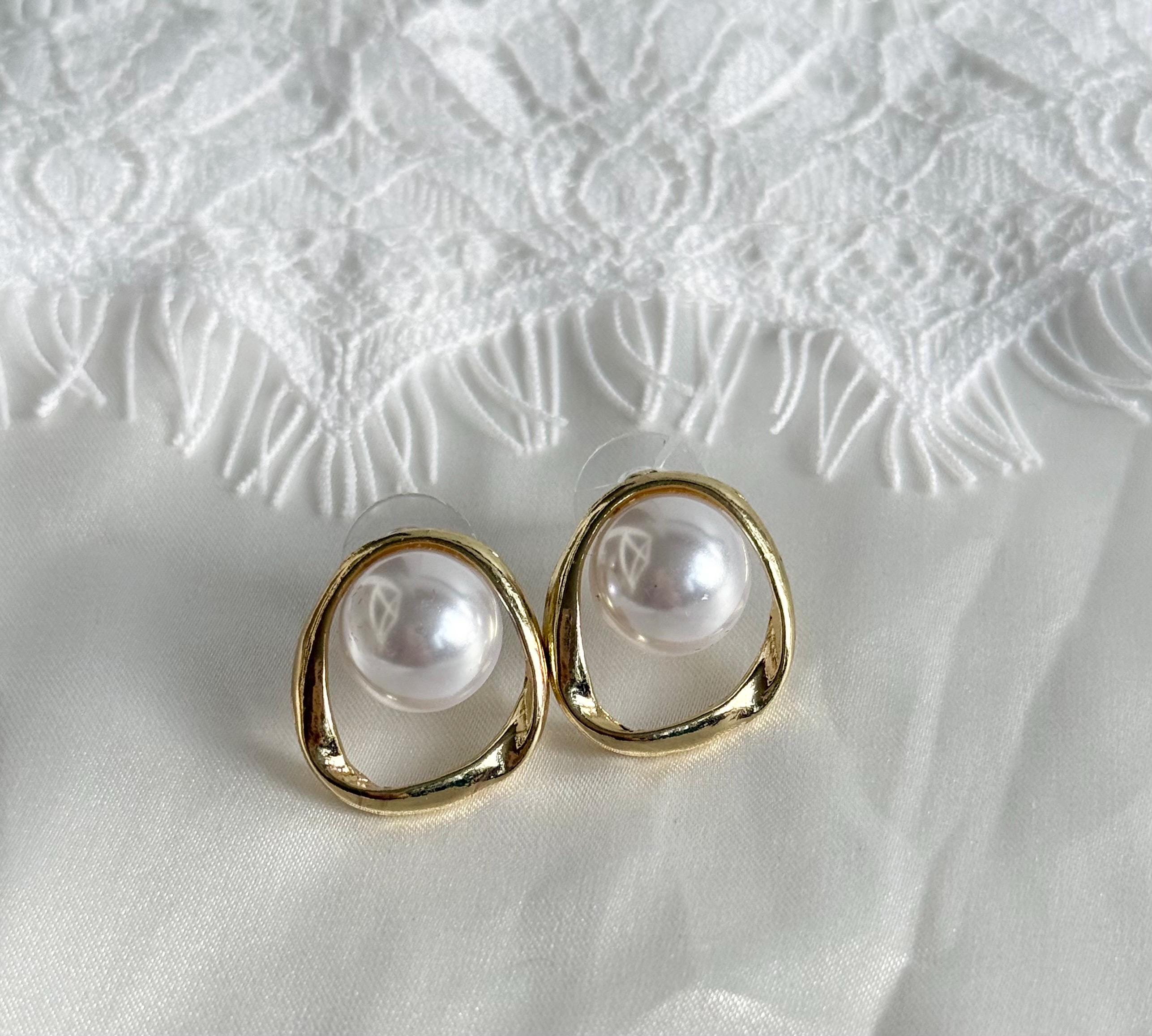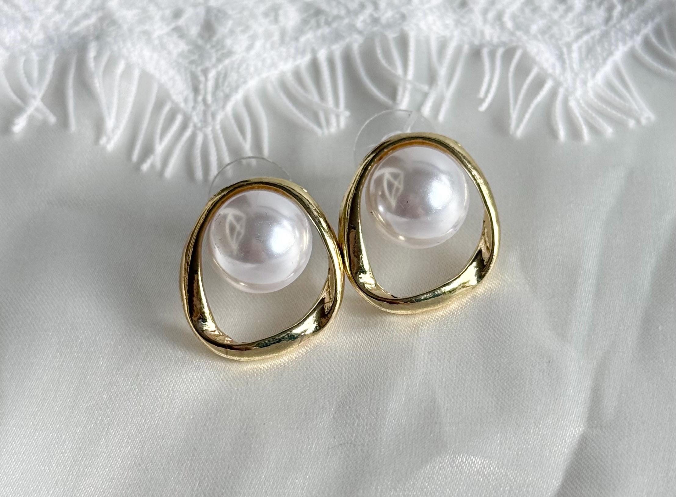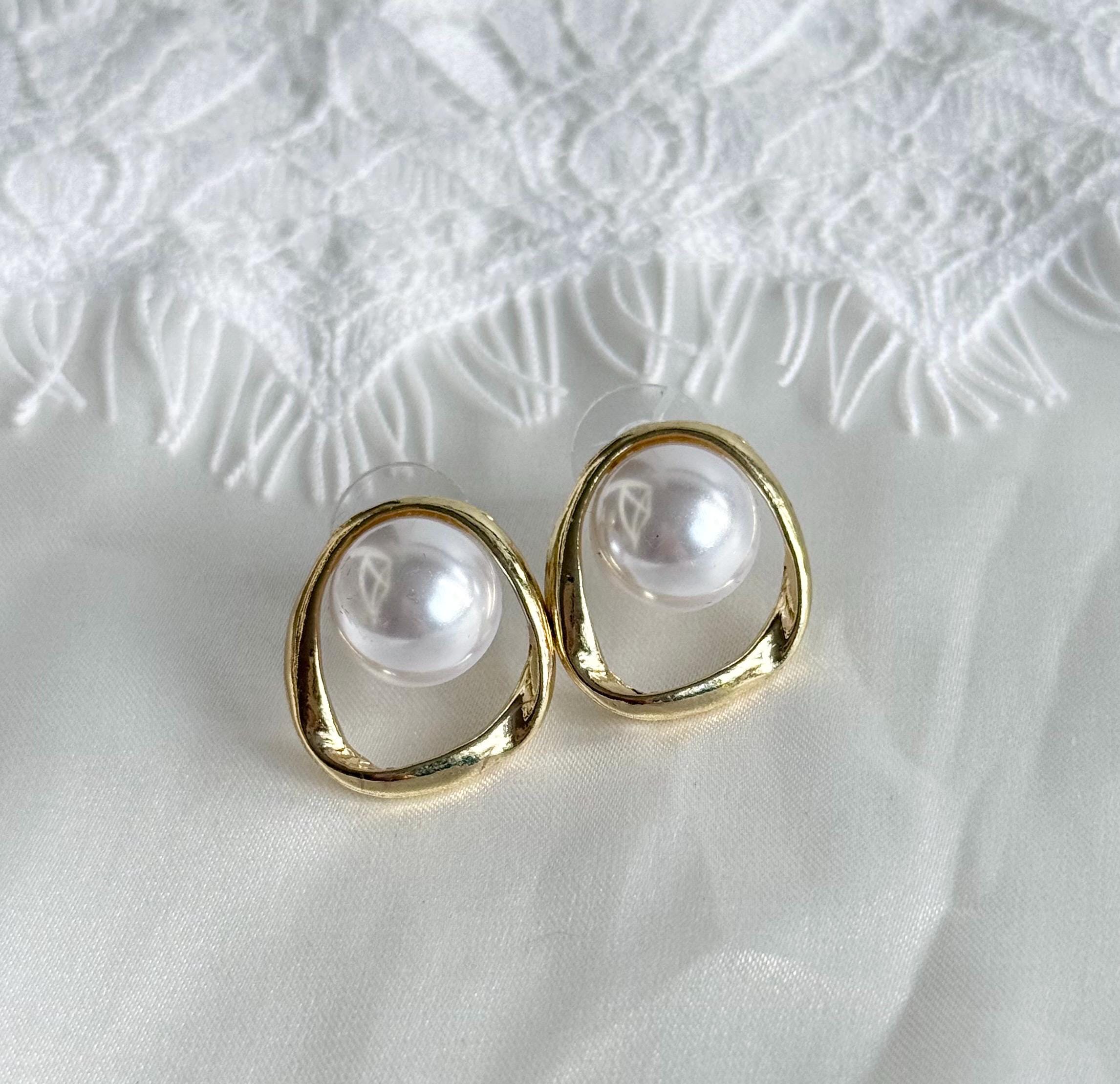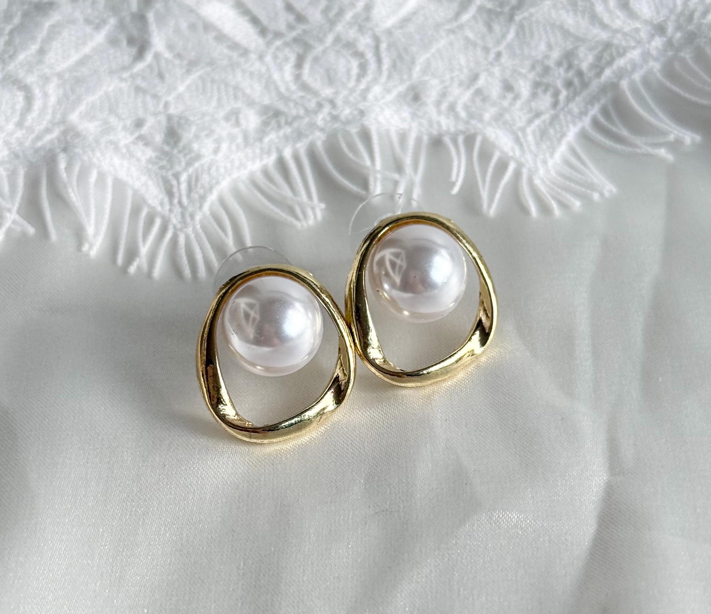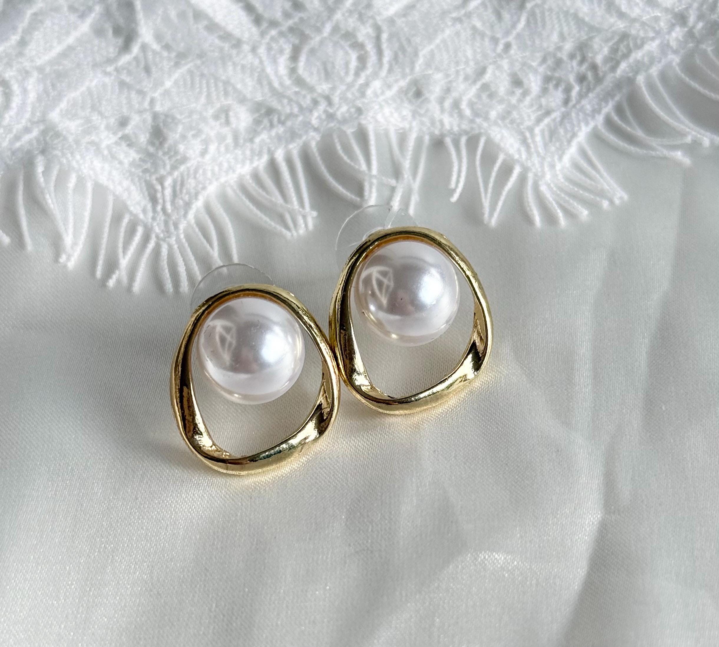 Each earring features a smooth cabochon faux pearl, bezel-set inside an organic open gold frame with a softly irregular shape. The result is a refined yet contemporary look that feels both minimal and luxurious.