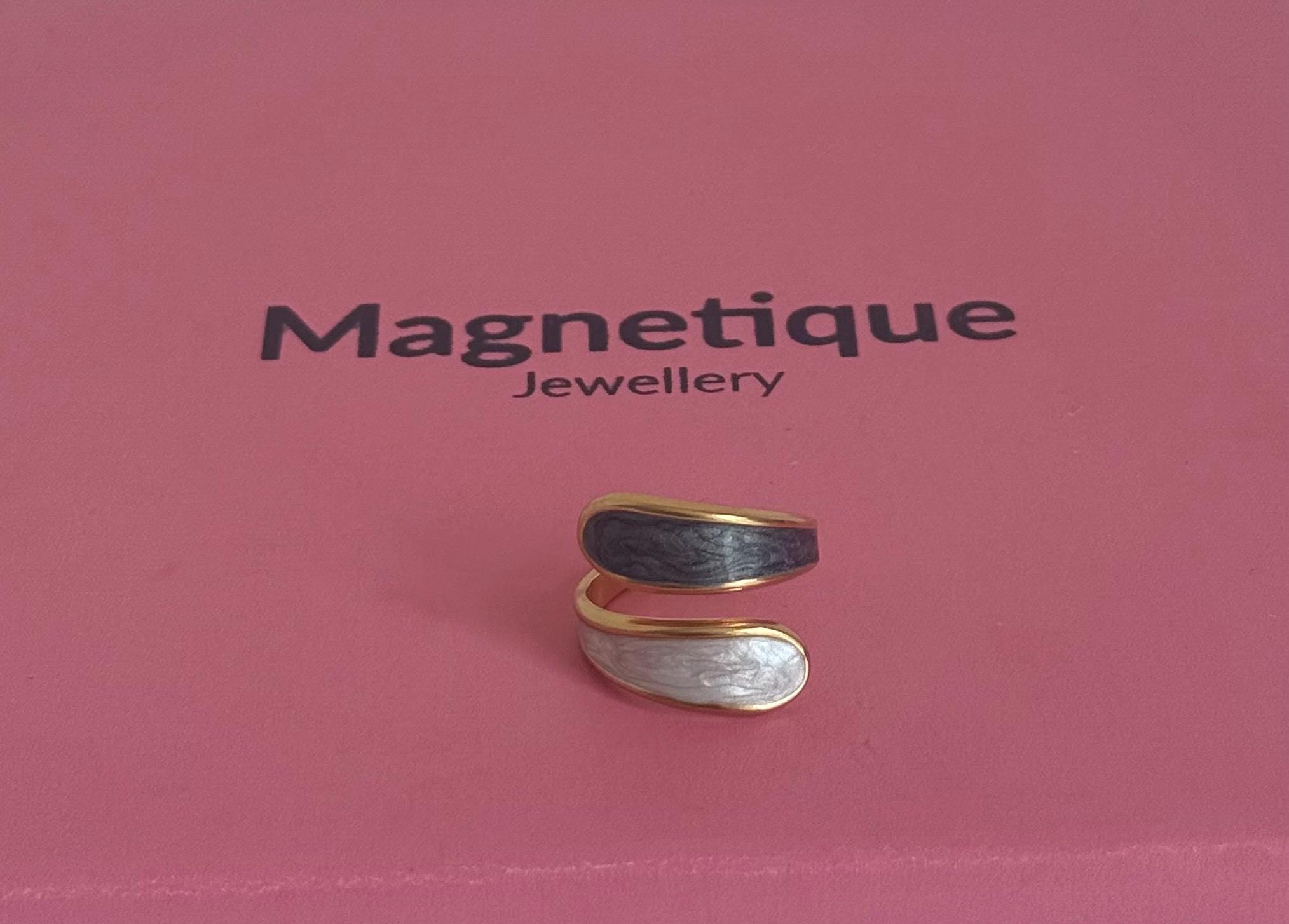 Elevate your everyday style with this stunning Gold Open Ring Adjustable – the perfect blend of modern elegance and minimal sophistication. Designed to make a subtle yet impactful statement, this versatile piece features a sleek, curved silhouette accented with glossy black or white inlay details that catch the light beautifully.