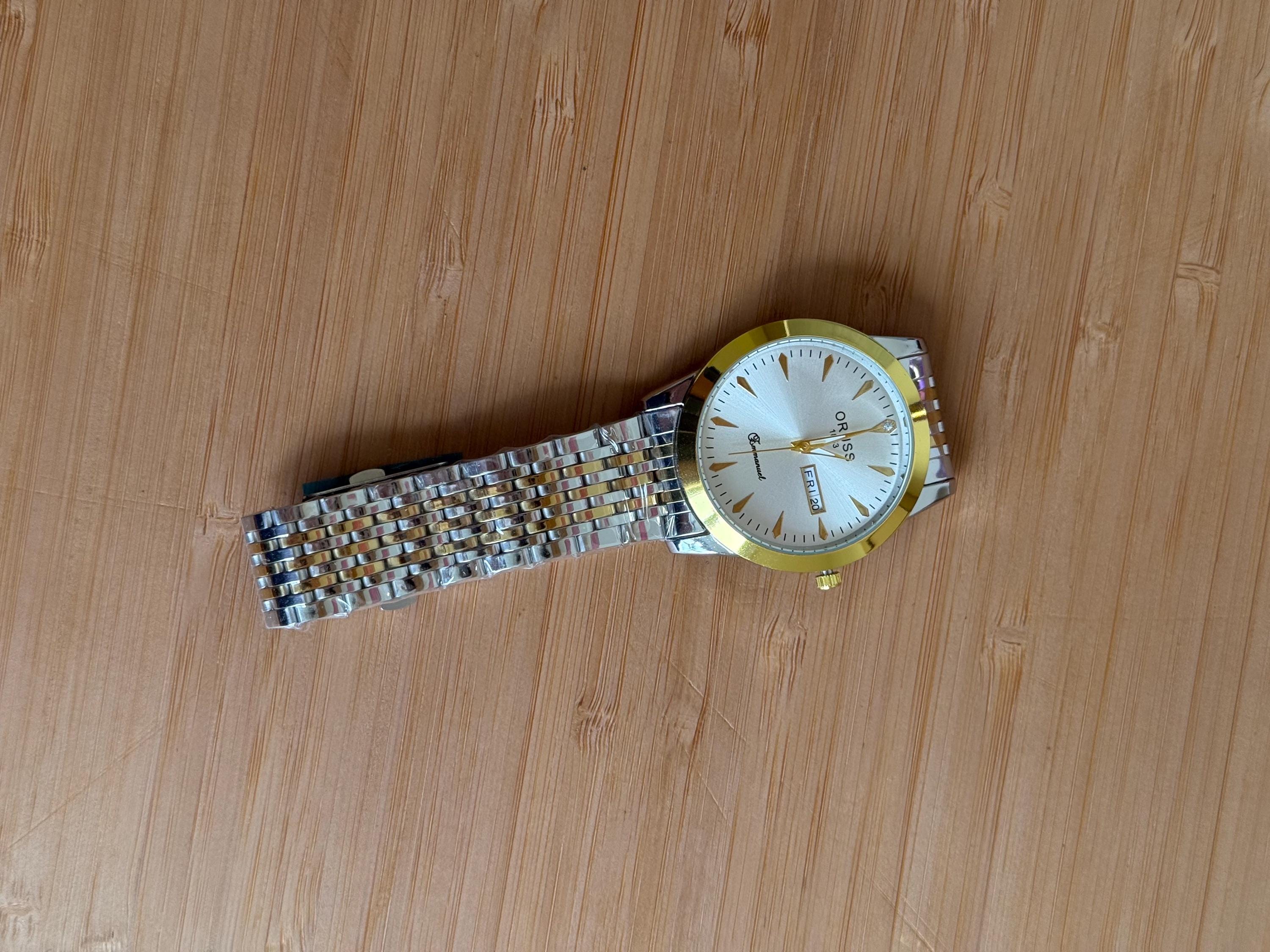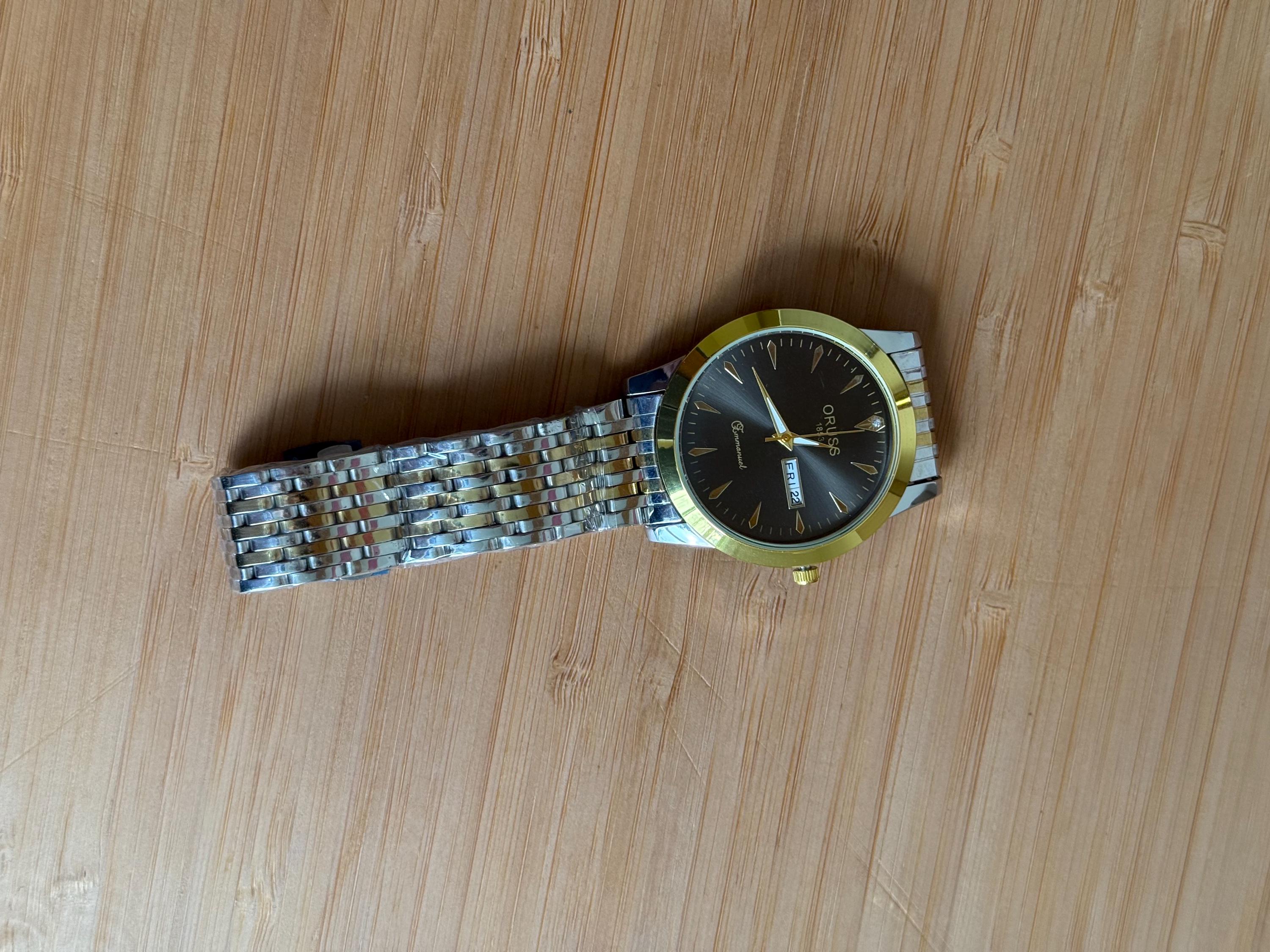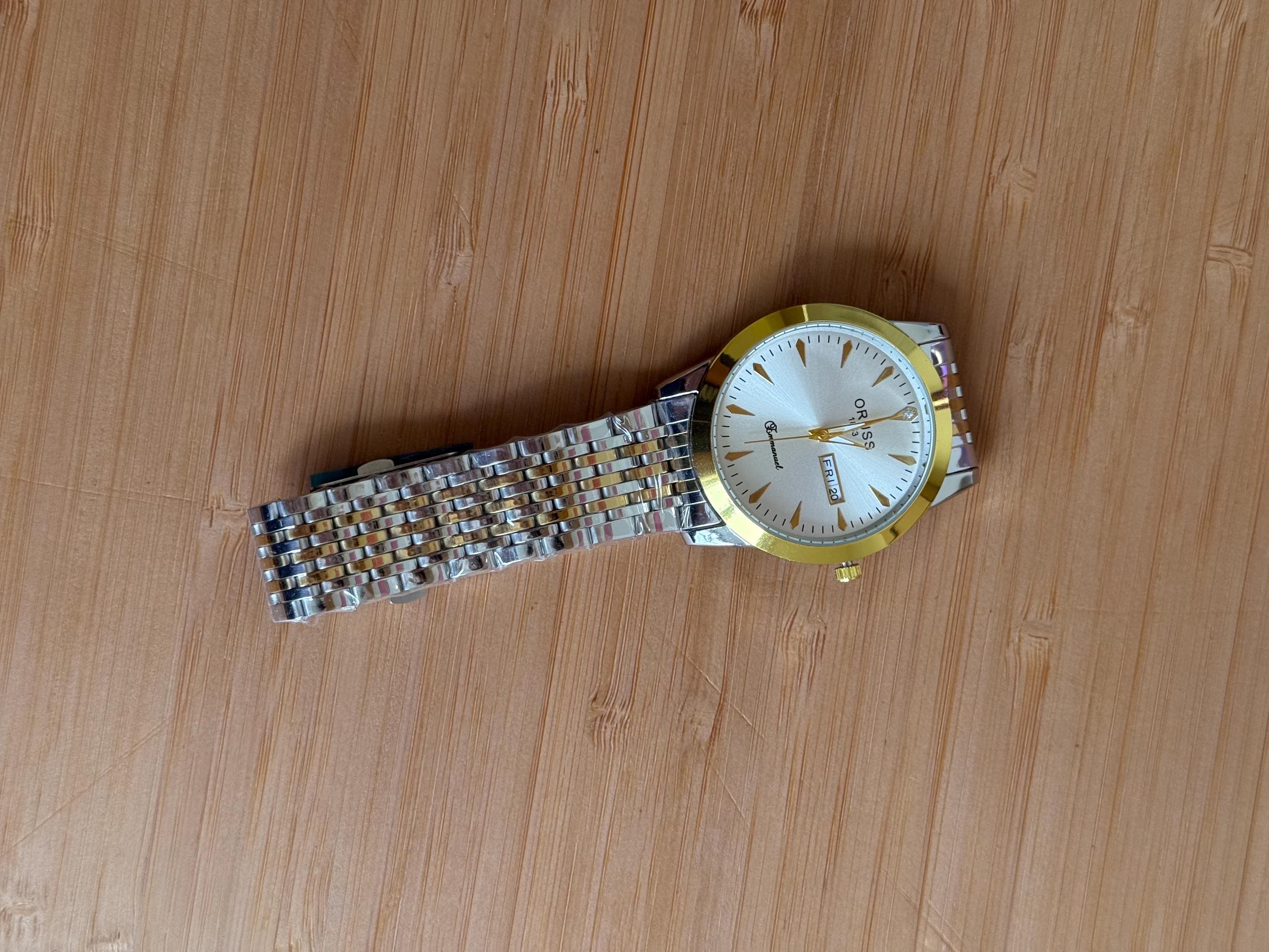 Key features include: - Two-tone silver and gold stainless steel bracelet for a versatile, luxurious look - Quartz movement for precise timekeeping - Elegant round dial with day and date display - Durable stainless steel construction with polished finish - Perfect gift for him or a stylish addition to your men's accessories collection