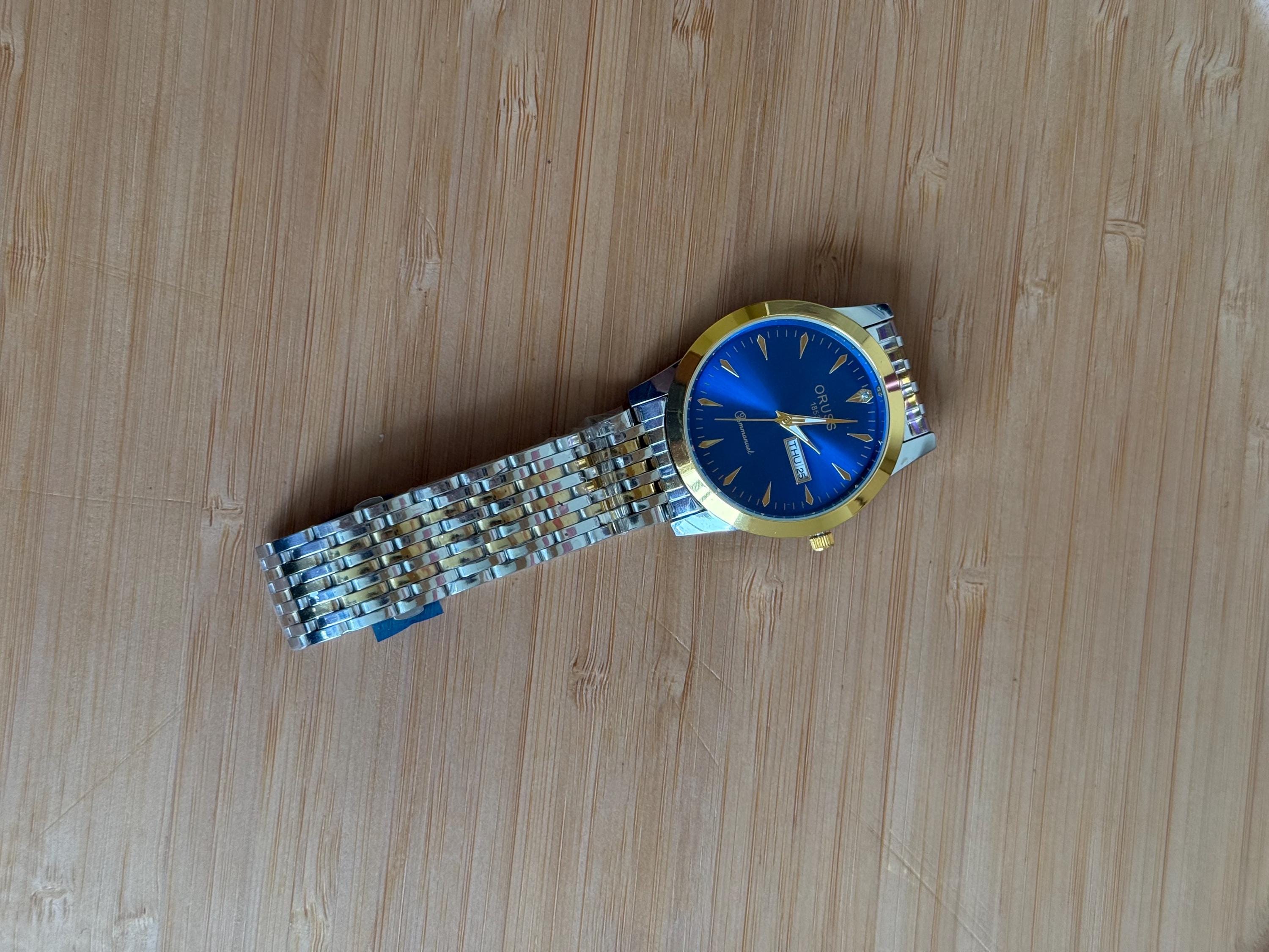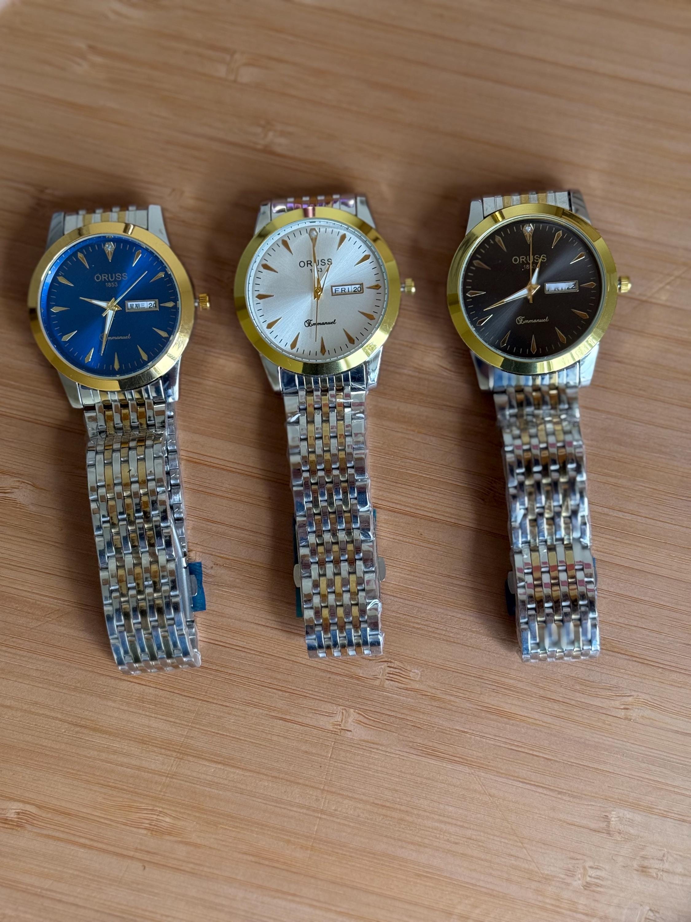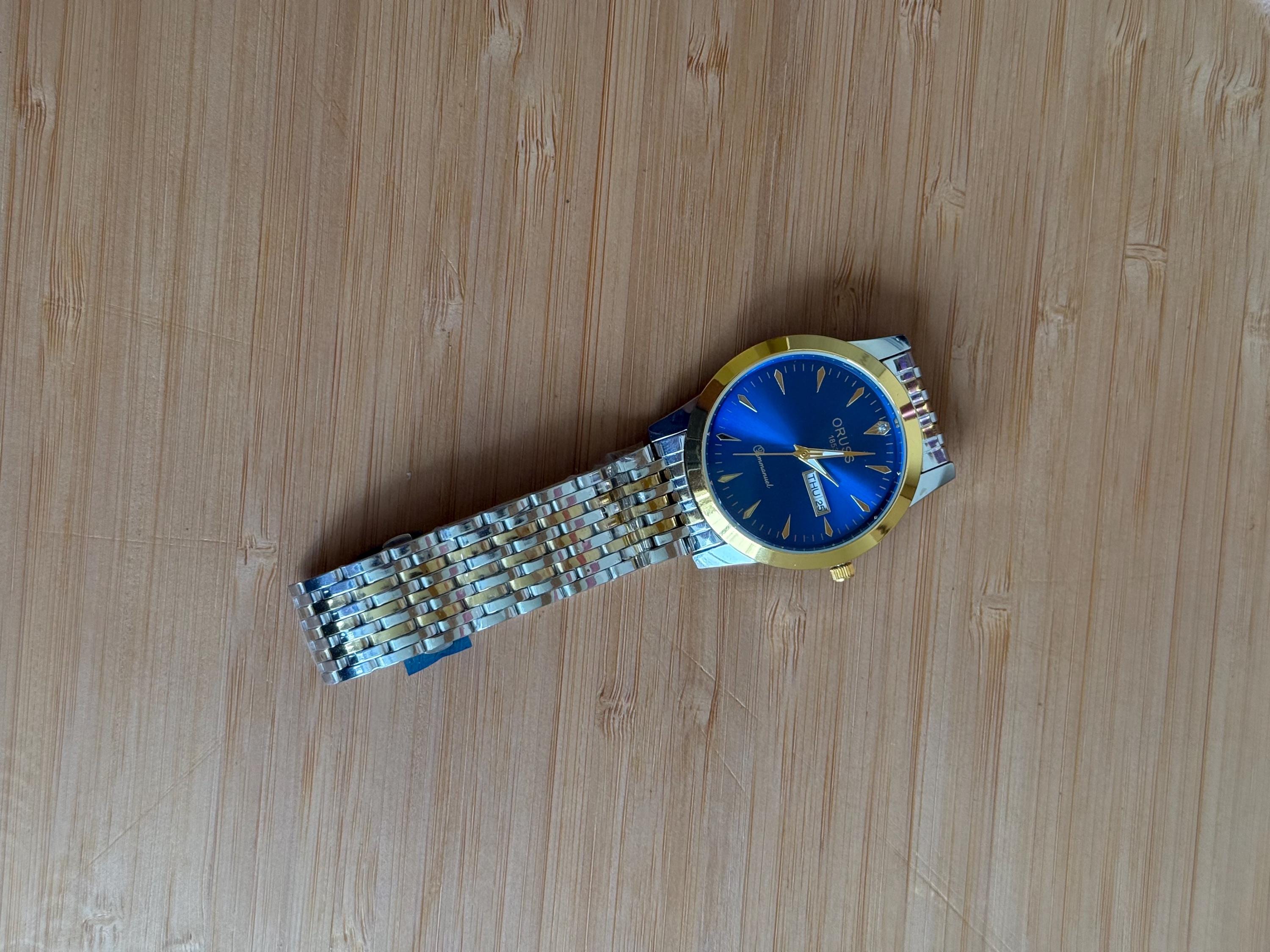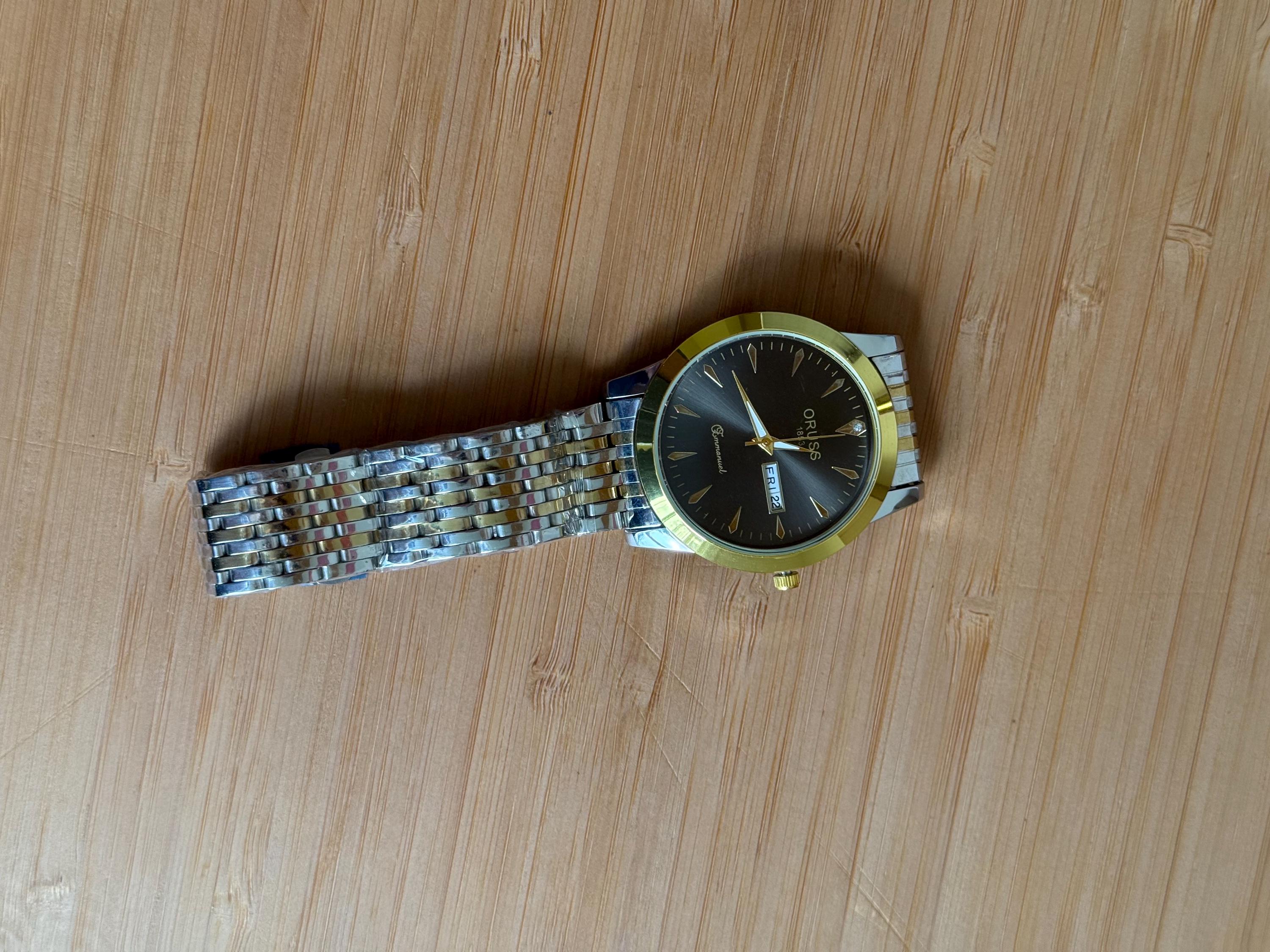 Key features include: - Two-tone silver and gold stainless steel bracelet for a versatile, luxurious look - Quartz movement for precise timekeeping - Elegant round dial with day and date display - Durable stainless steel construction with polished finish - Perfect gift for him or a stylish addition to your men's accessories collection