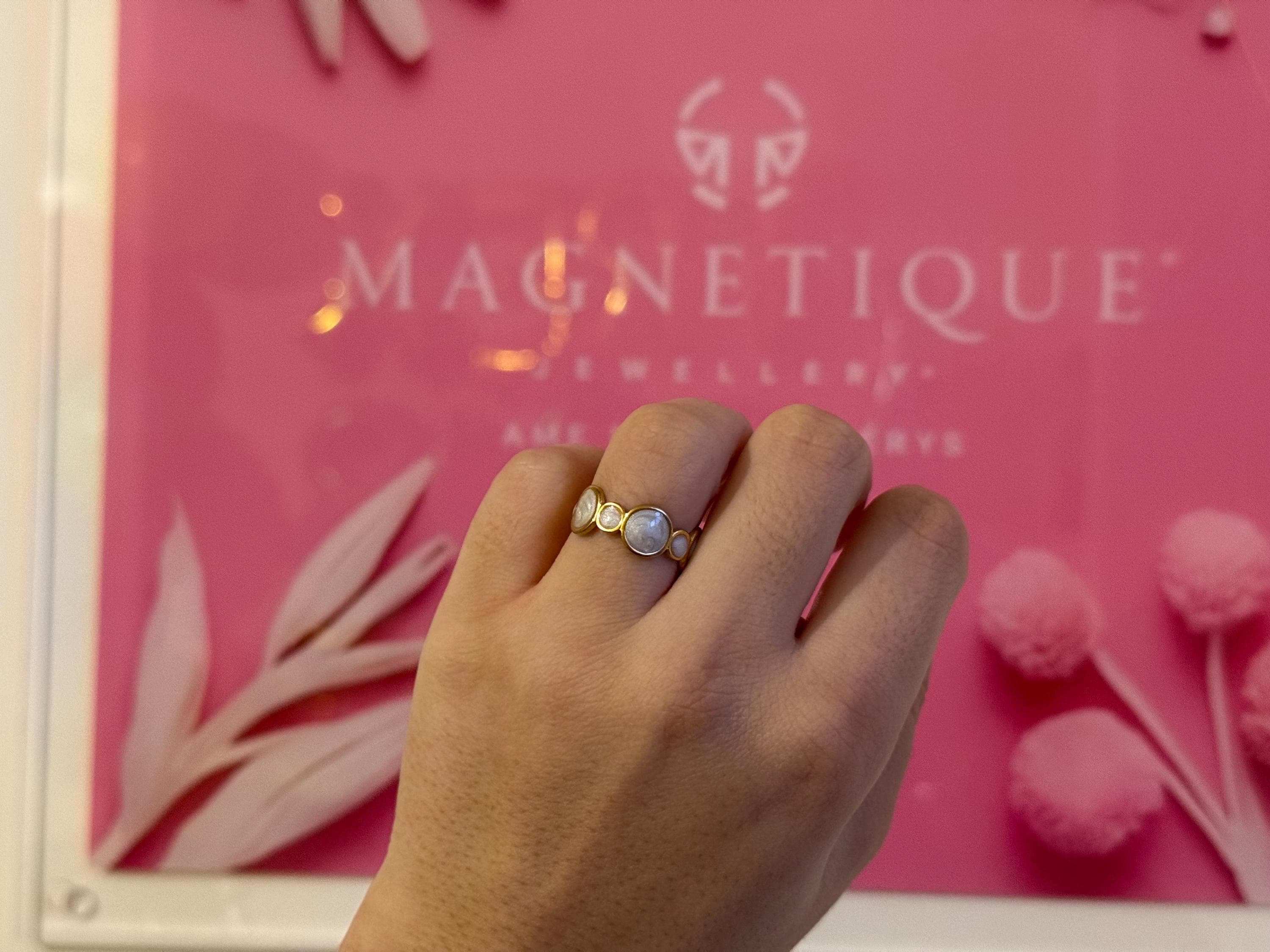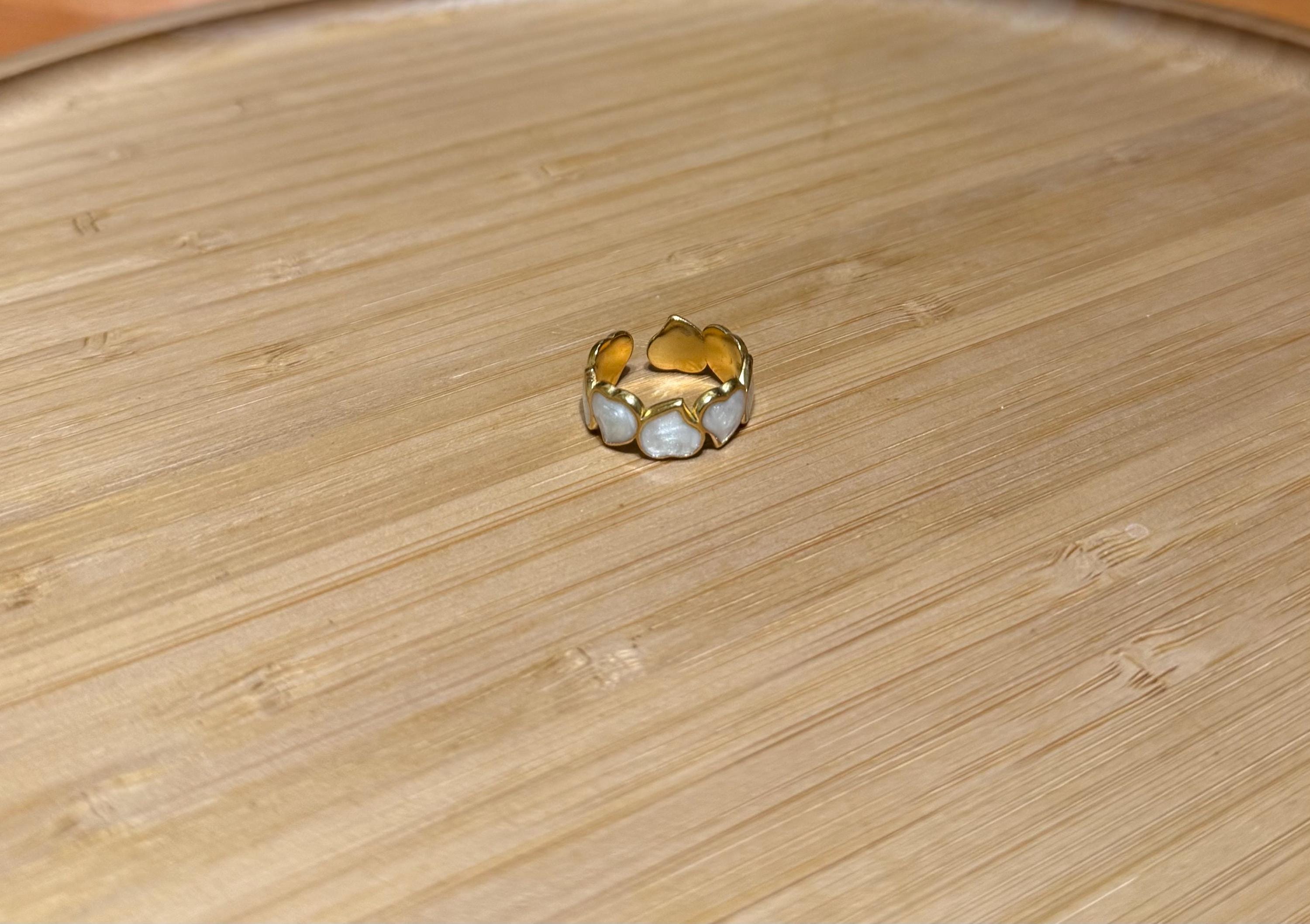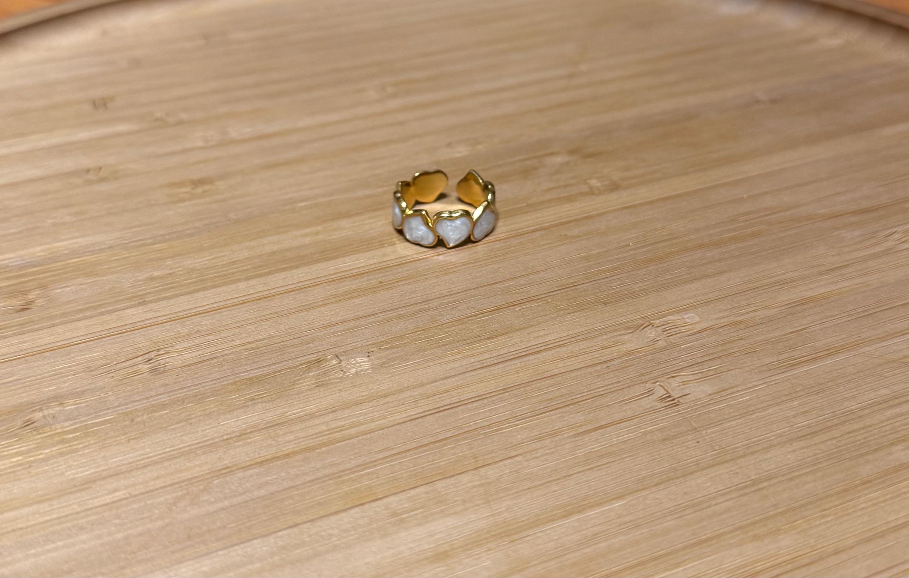 Key features: - Material: High-quality stainless steel with a polished gold-tone finish - Design: Open, adjustable ring with a smooth white inlay - Dimensions: Perfectly proportioned for everyday wear - Care: Clean with a soft cloth and avoid harsh chemicals to maintain its shine