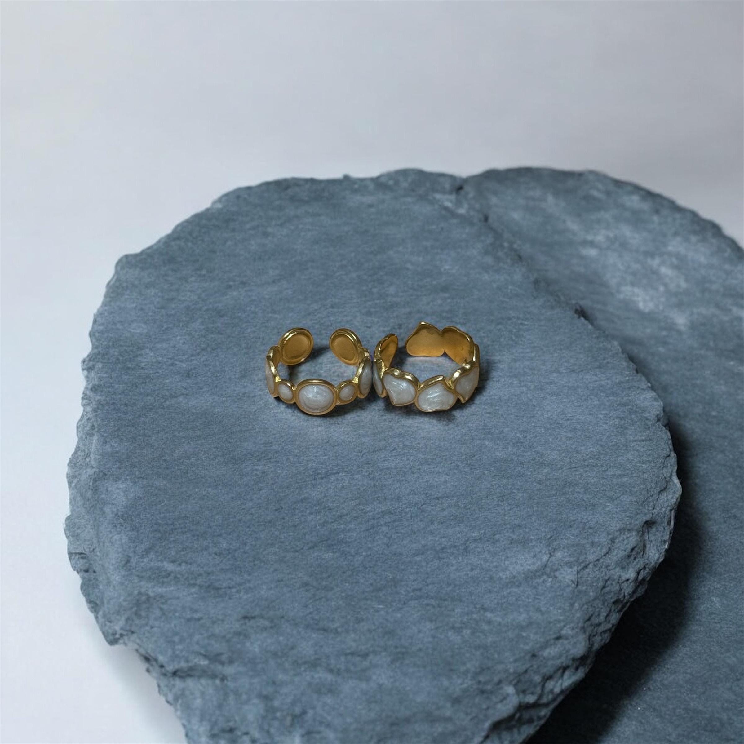 Elevate your everyday style with this stunning stainless steel ring featuring a sleek gold adjustable band and a captivating white inlay. Designed for modern elegance, this open ring seamlessly combines minimalism with sophistication, making it the perfect accessory for any occasion.