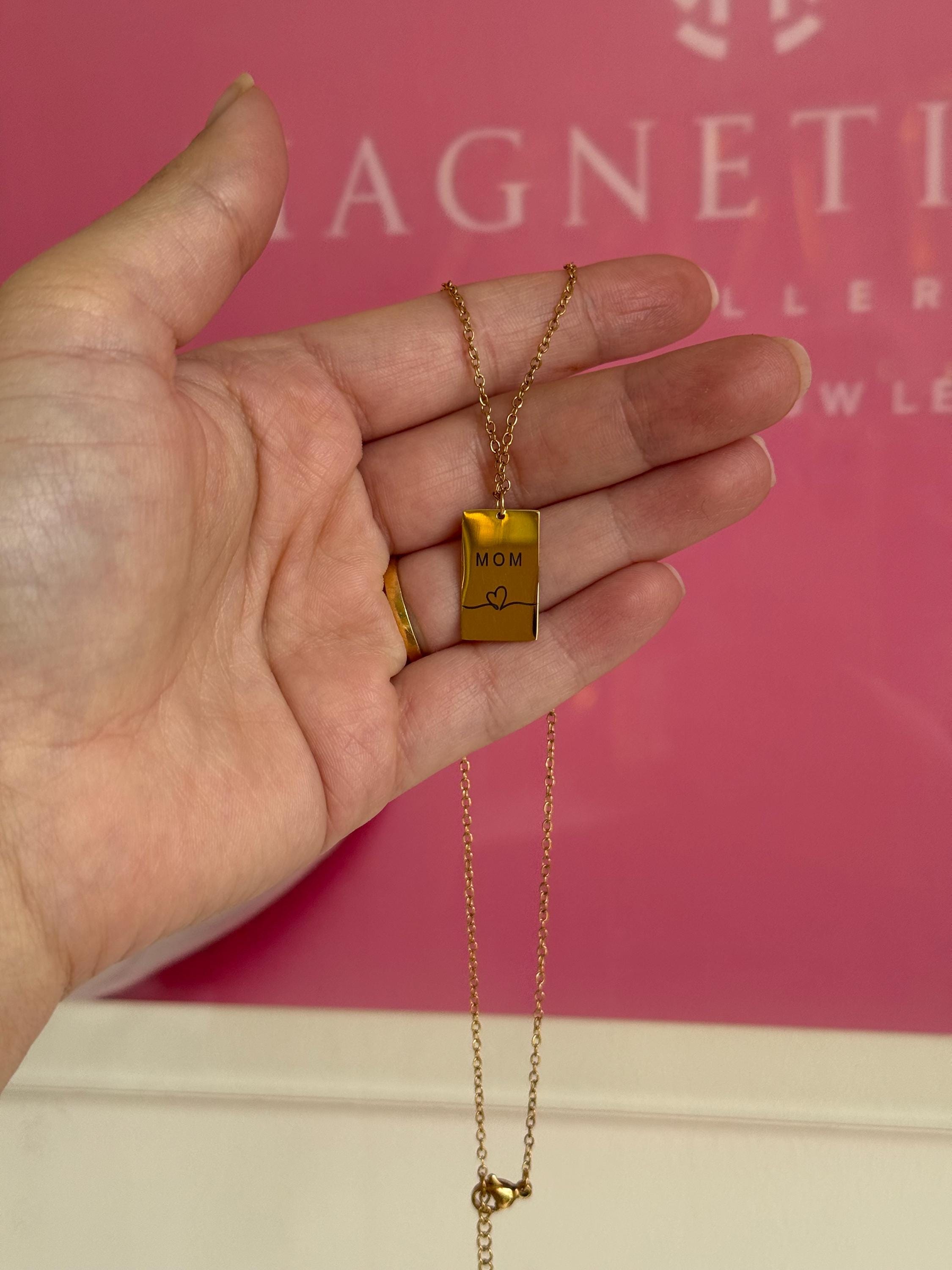 ✨ MOM Necklace – Gold Stainless Steel Bar Pendant Necklace ✨