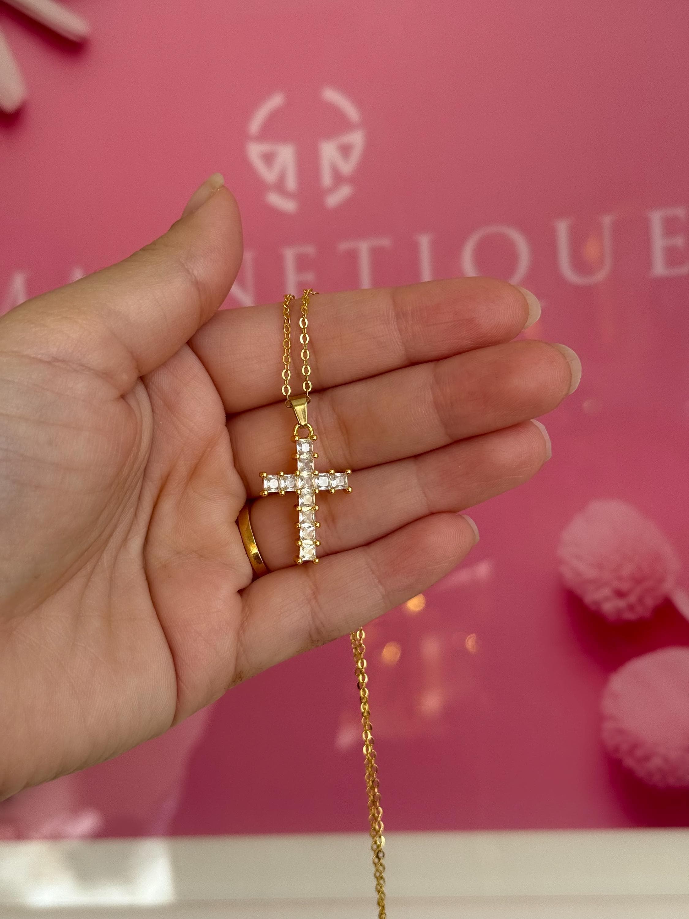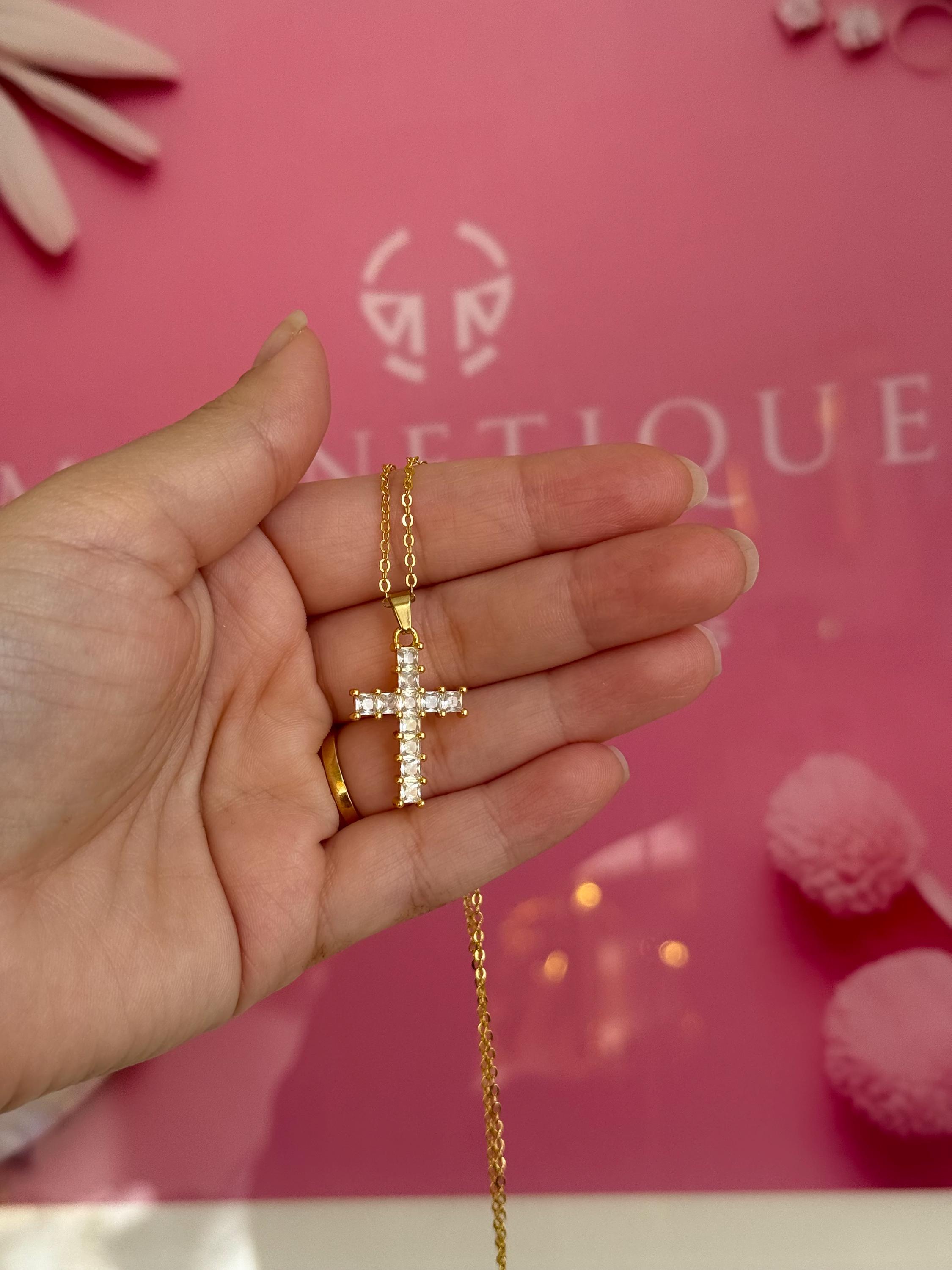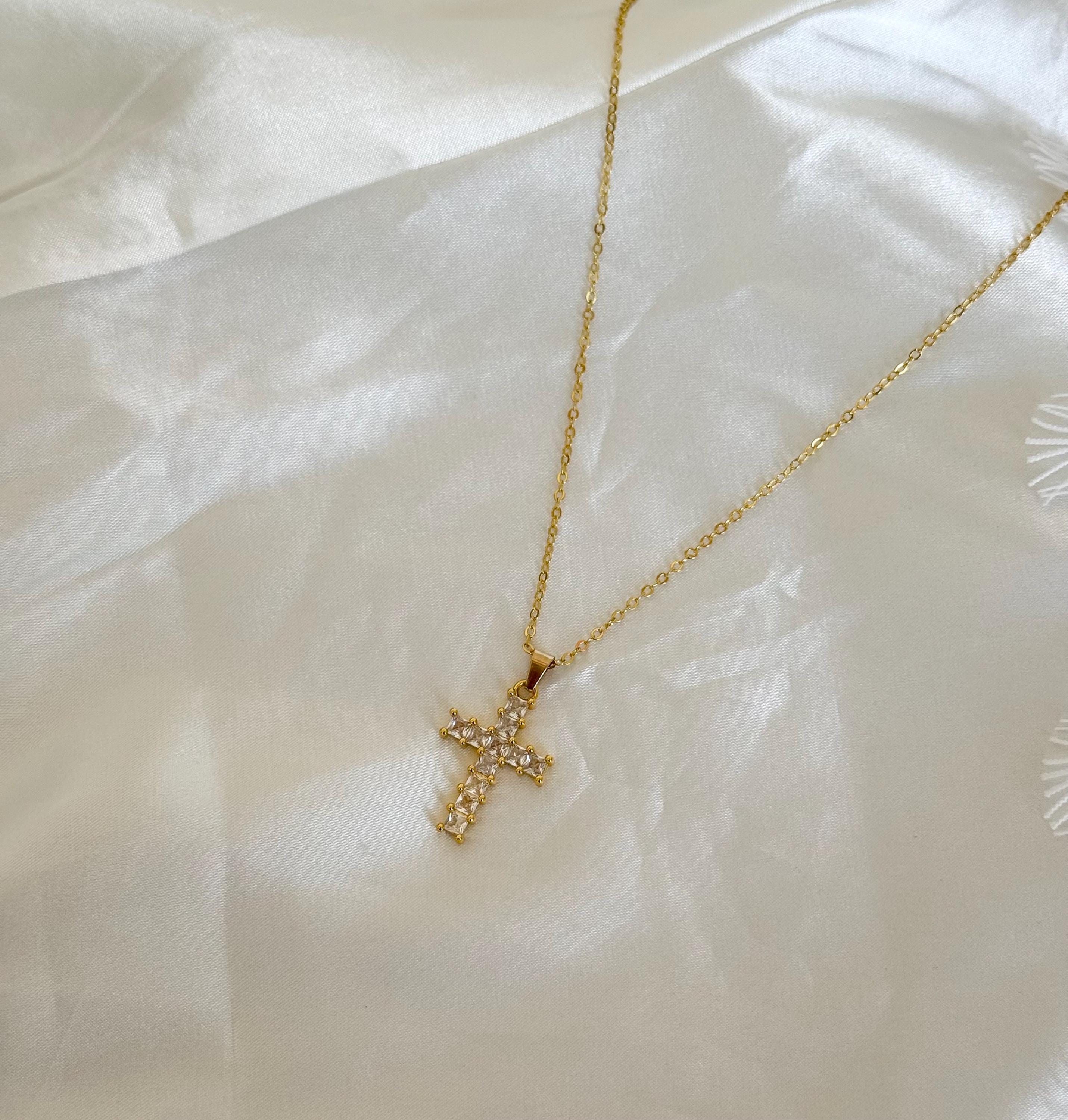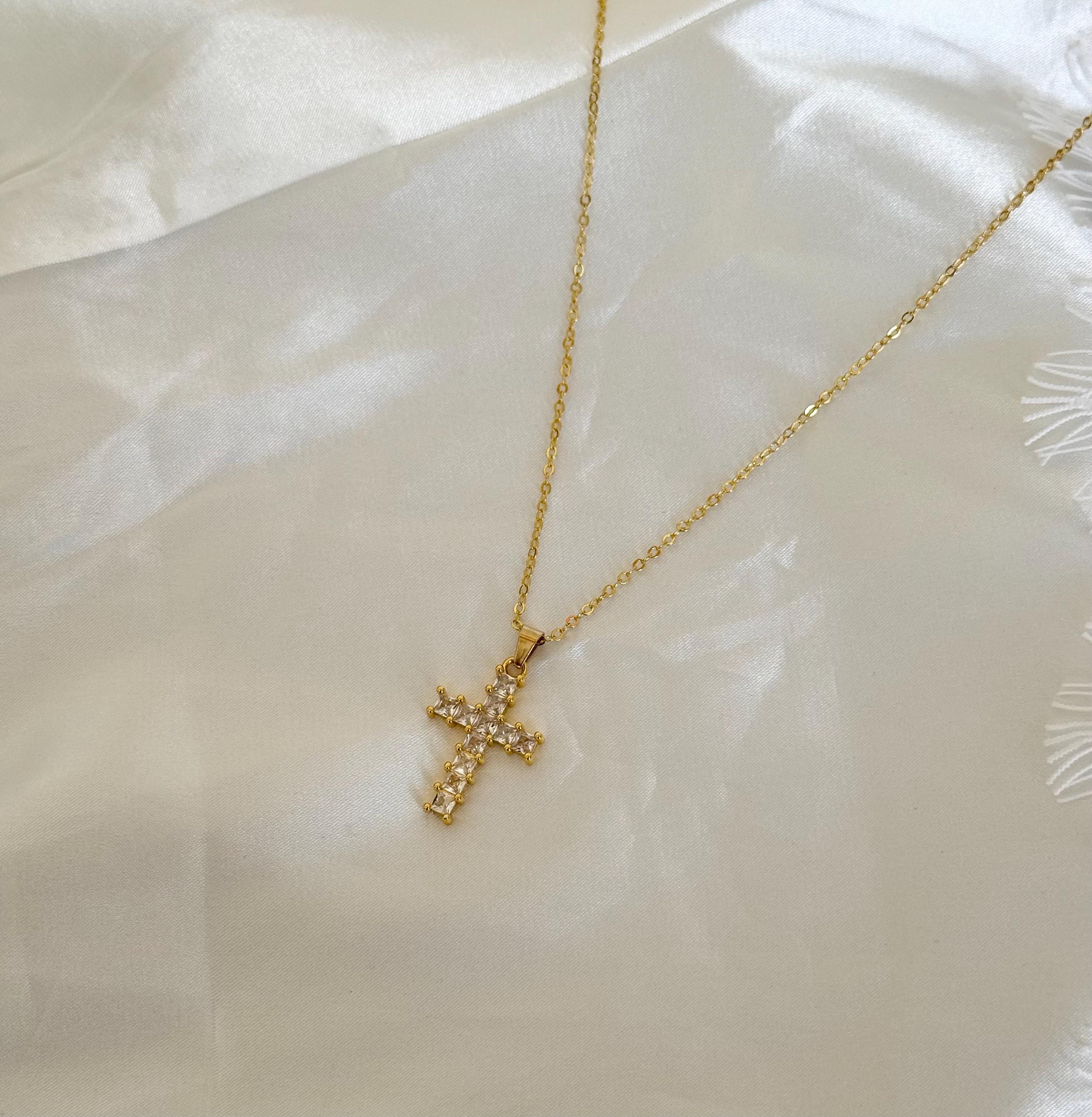 ✨Gold Cross Necklace Stainless Steel, Zircon Pendant Jewellery ✨ A beautiful and meaningful cross necklace featuring sparkling zircon stones set in a classic gold-tone cross pendant. This elegant and timeless design symbolizes faith while adding a sophisticated touch to any outfit.