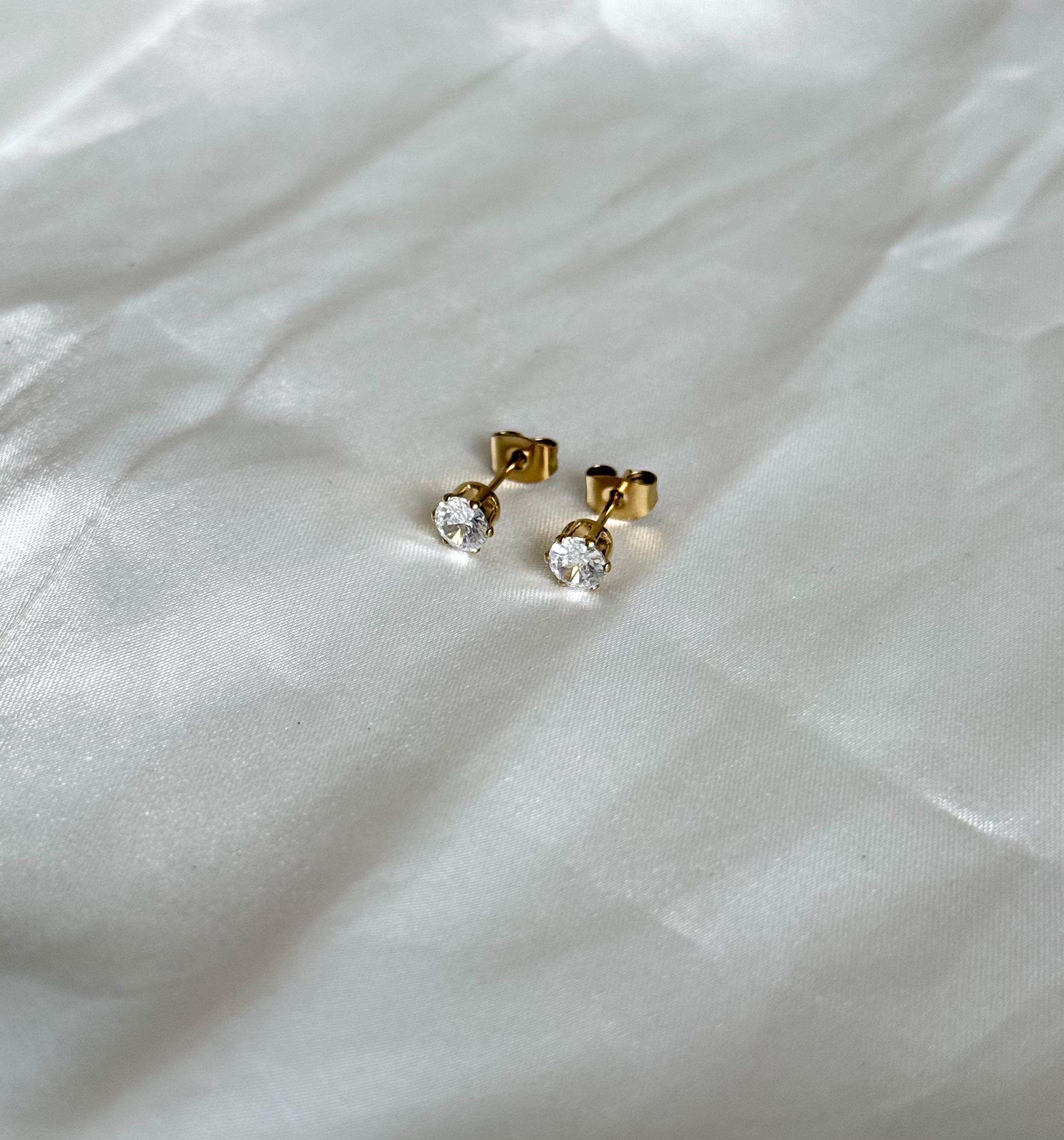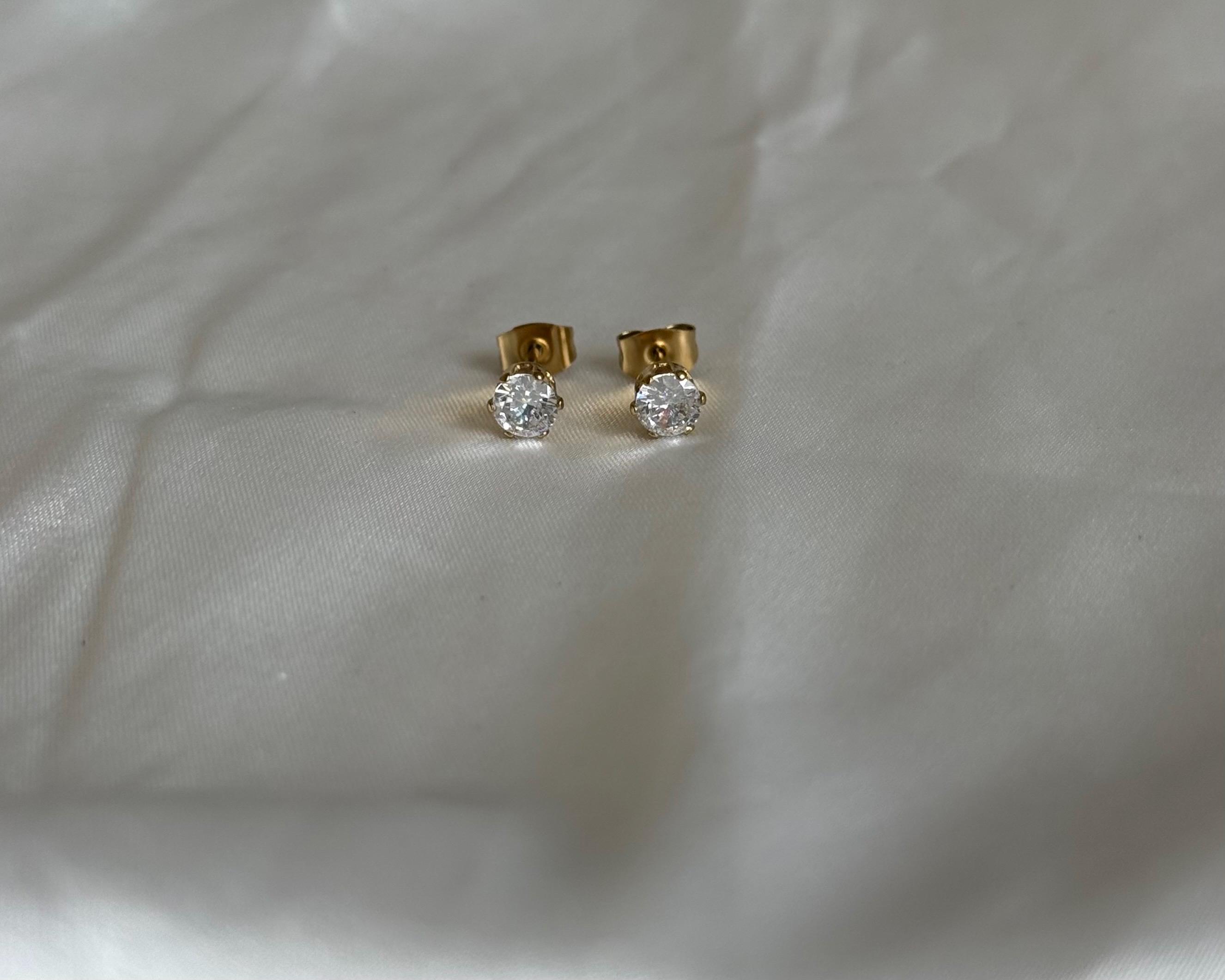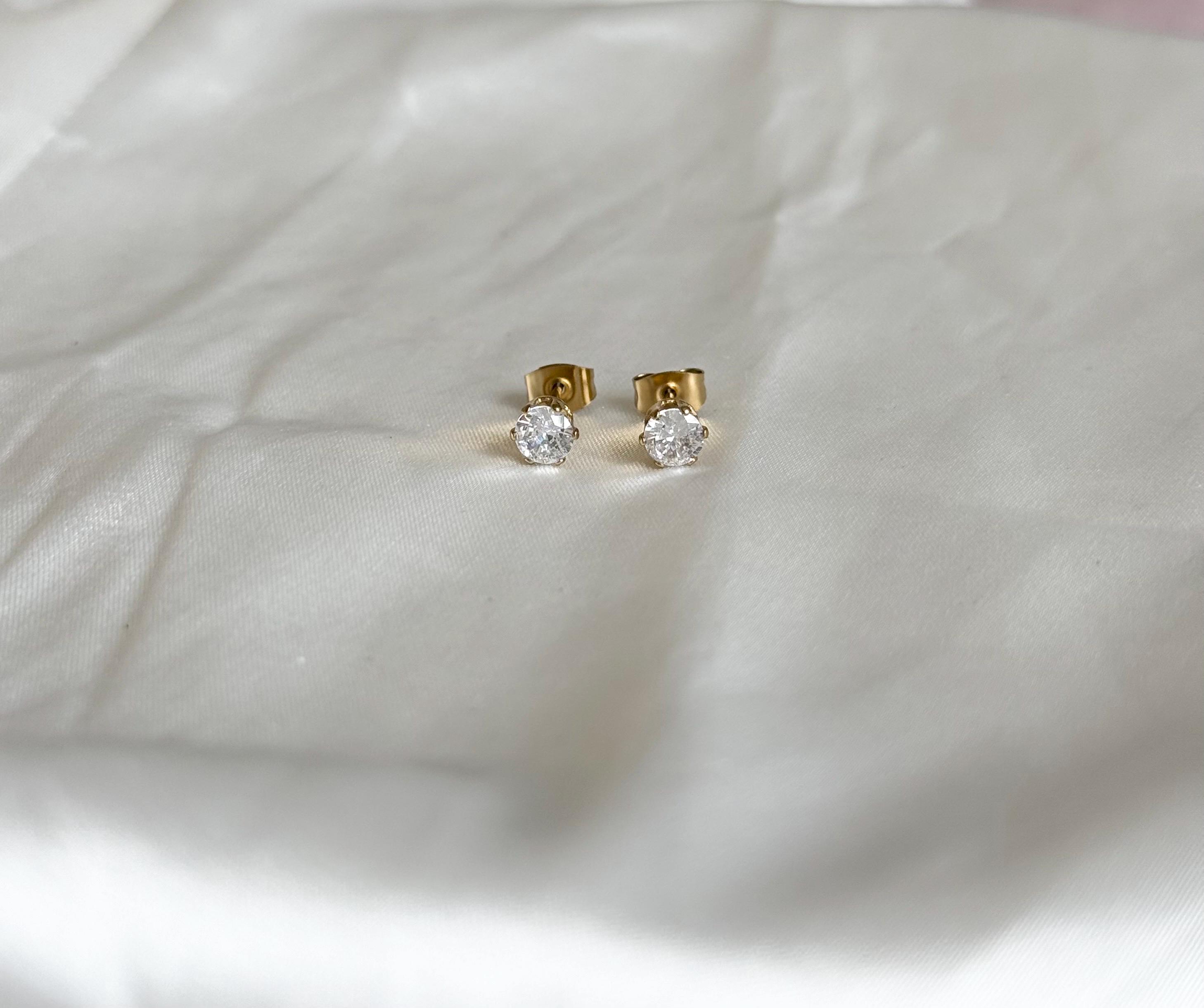 Key Features: - Made with stainless steel for strength and resistance to tarnish - Gold tone finish for a warm, luxurious look - Round brilliant cut cubic zirconia for maximum sparkle - Secure butterfly back closure for comfort and peace of mind - Lightweight and hypoallergenic, suitable for sensitive ears - Perfect for everyday wear, gifting, or elevating your style