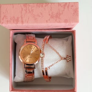 Discover the perfect romantic gift with our Rose Gold Crystal Gift Set, featuring a stunning watch and jewelry collection beautifully presented in a luxurious gift box. This complete set is designed to create a soft, feminine, and elegant look, making it an ideal gift for birthdays, anniversaries, or special moments with someone you cherish.