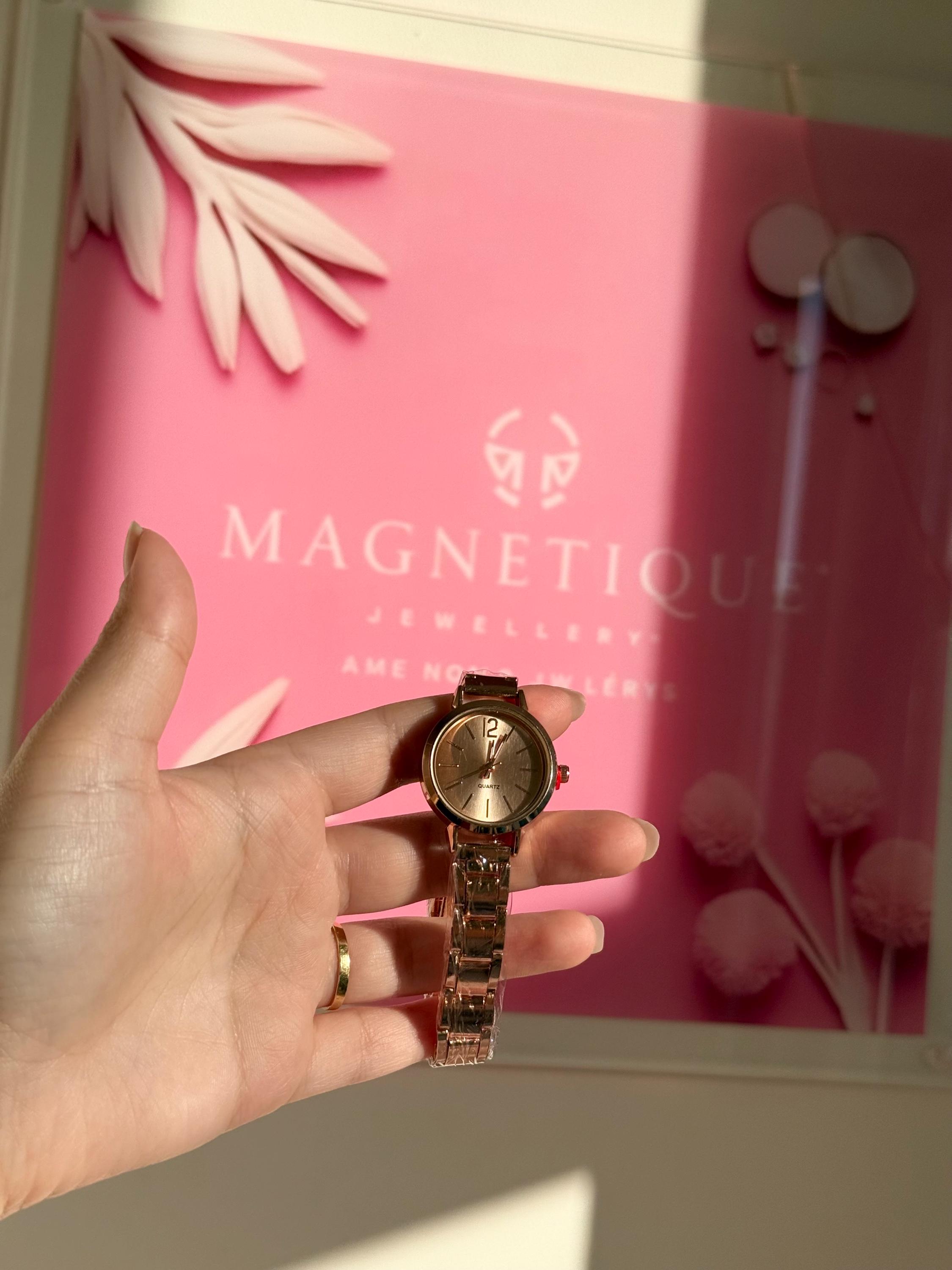 • Rose gold quartz watch • Crystal circle detail bracelet • Luxury presentation gift box