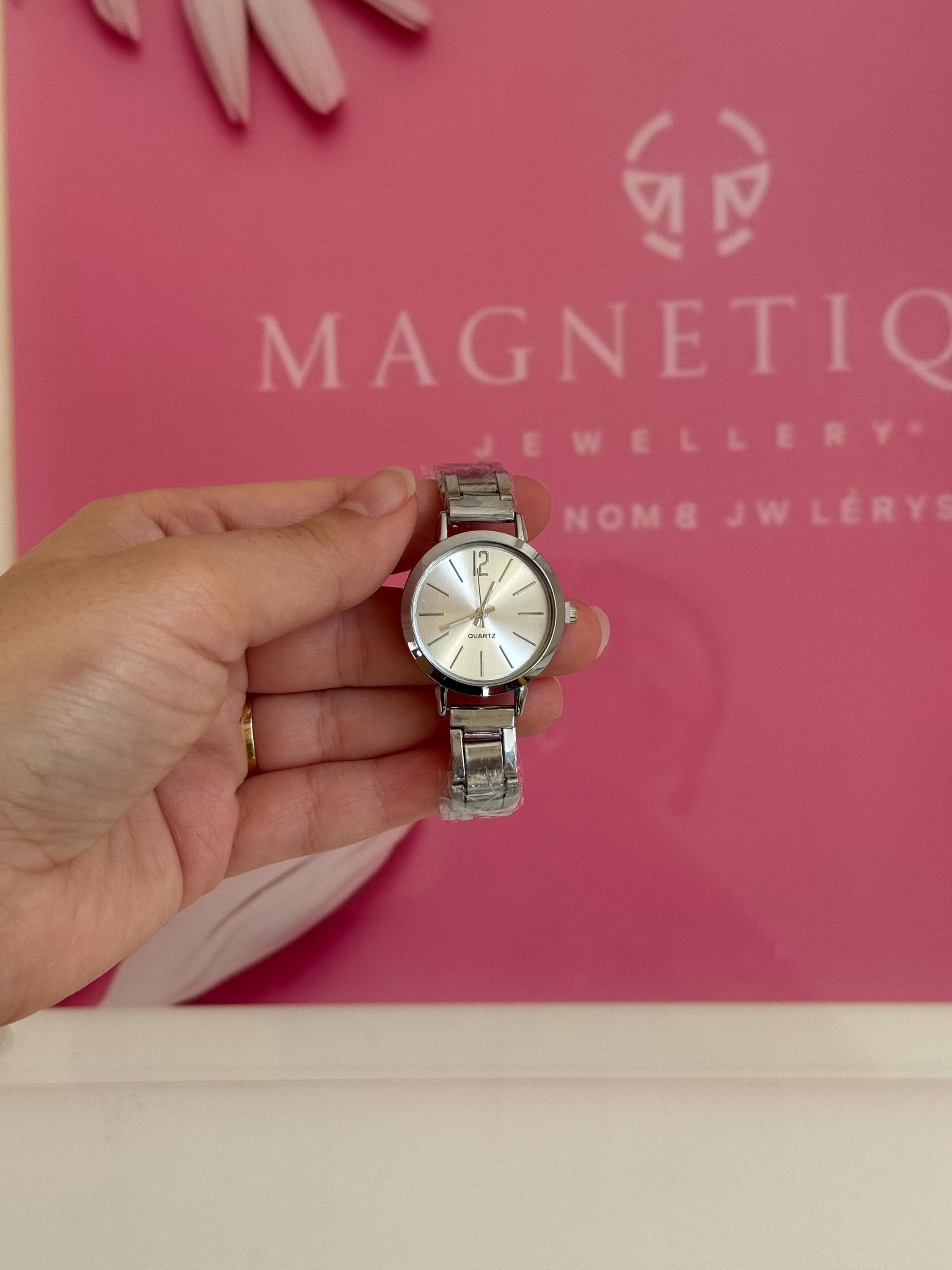• Rose gold quartz watch • Crystal detail bracelet with delicate flower charm • Premium pink presentation gift box