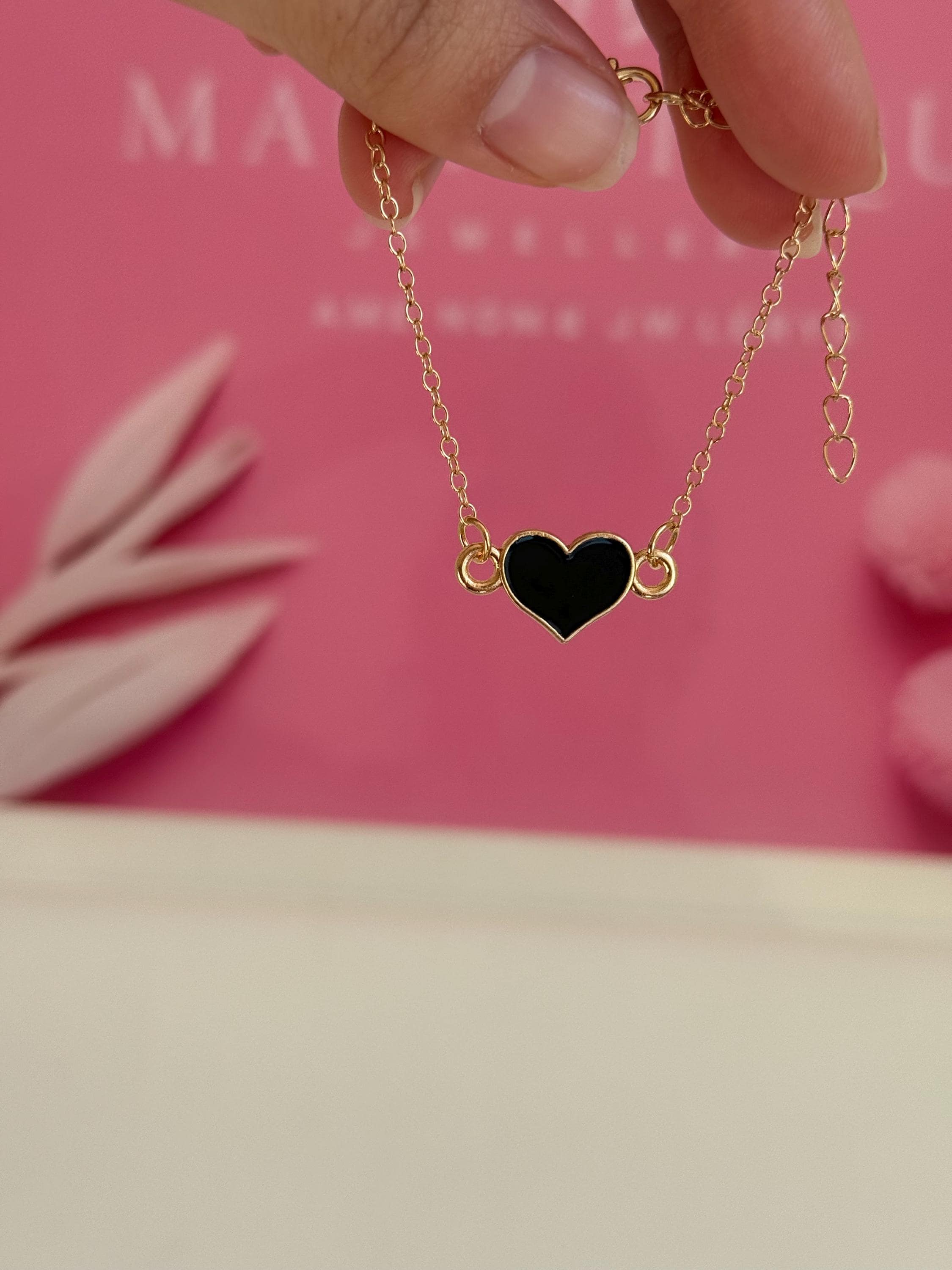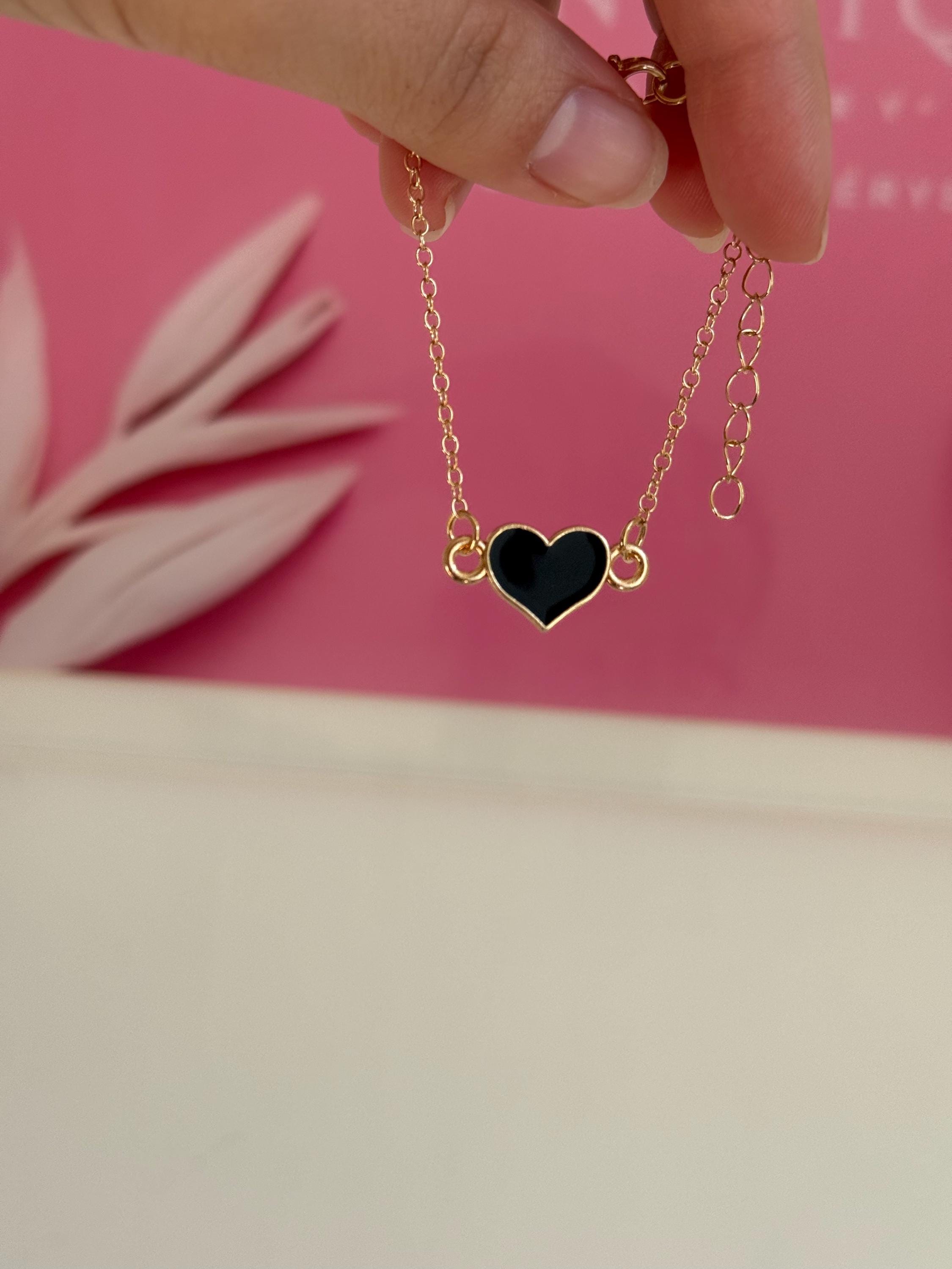 This elegant jewellery set includes a classic gold tone quartz watch and a delicate bracelet featuring a black enamel heart charm.