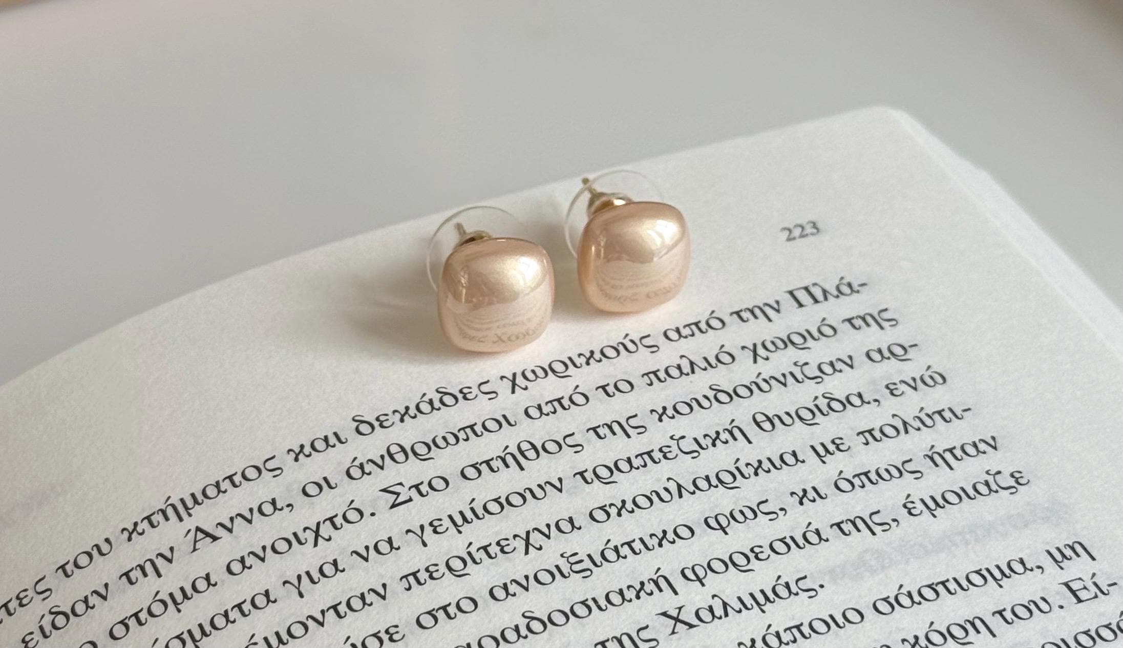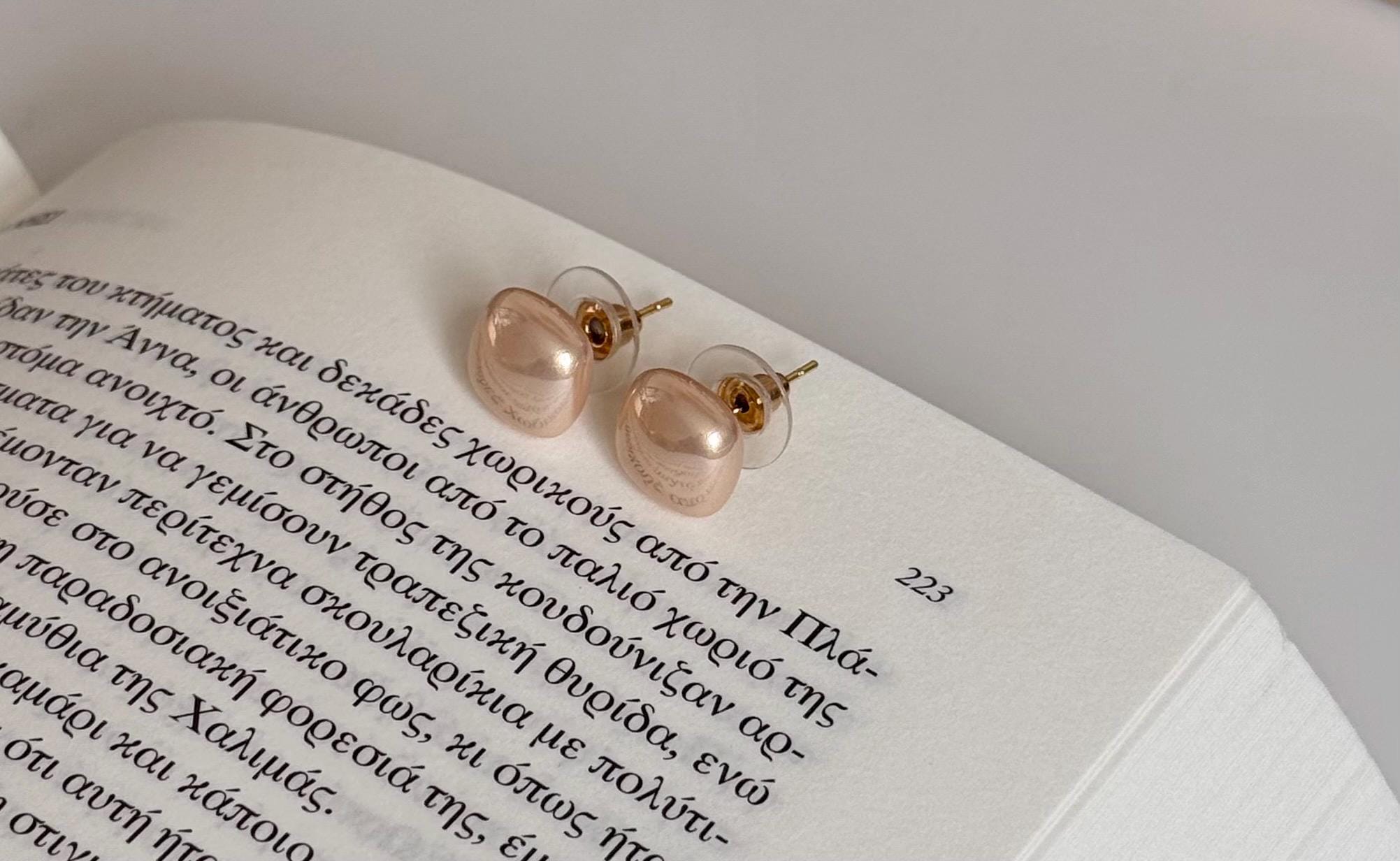 Rose Gold Pearl Stud Earrings - Silver Needle - Everyday Minimalist Jewellery ✨ Elegant rose gold pearl stud earrings with a soft baroque-inspired shape.