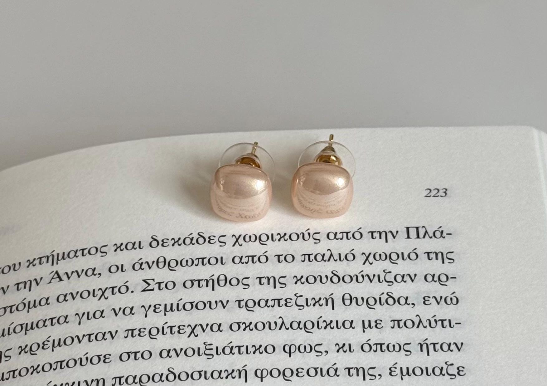 These minimalist earrings feature a luminous pearl design with a smooth rose gold finish, creating a timeless and sophisticated look. Perfect for everyday elegance or special occasions.