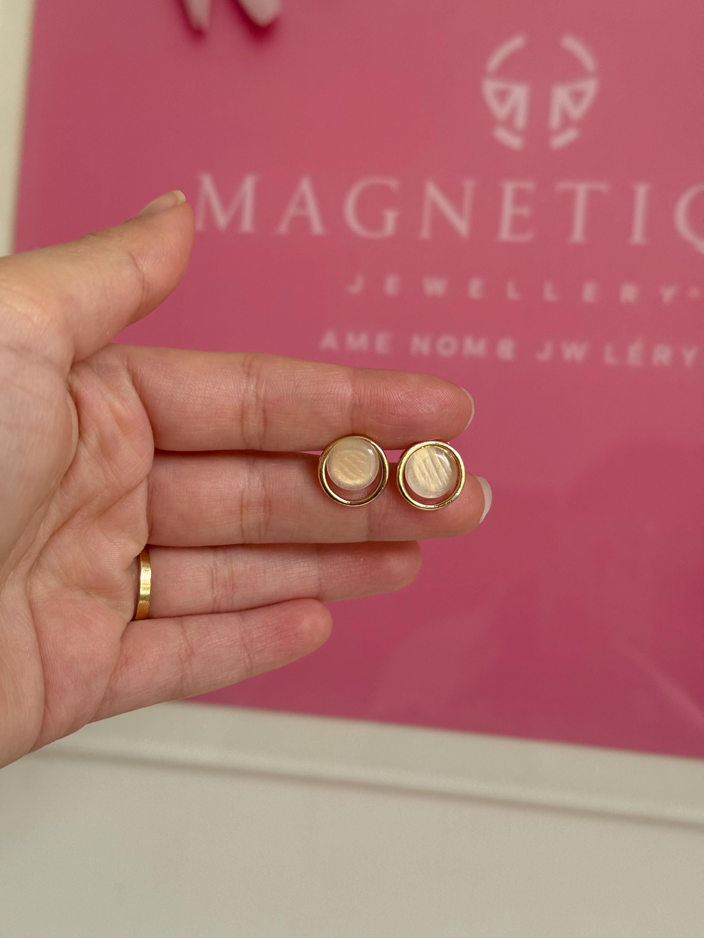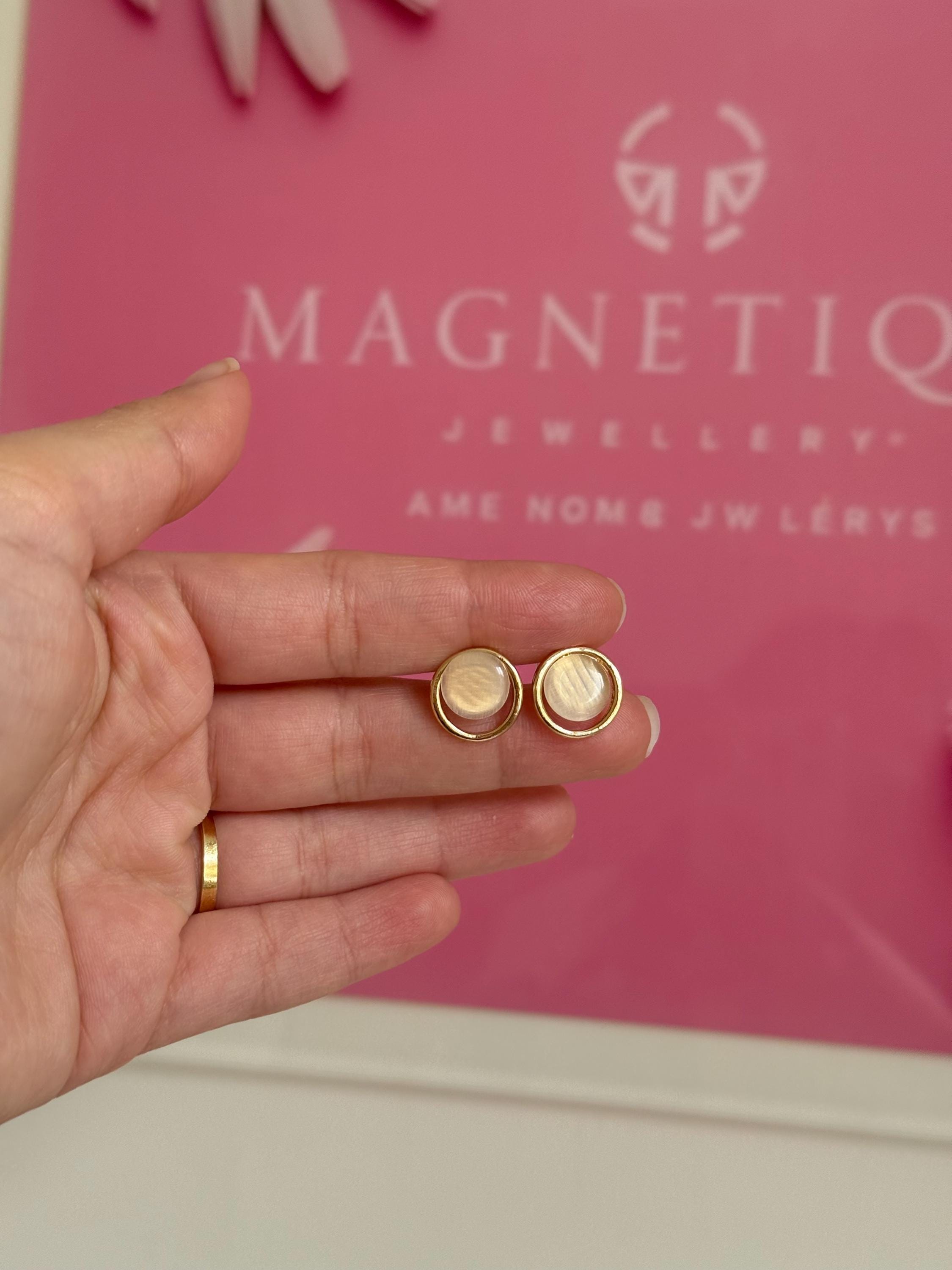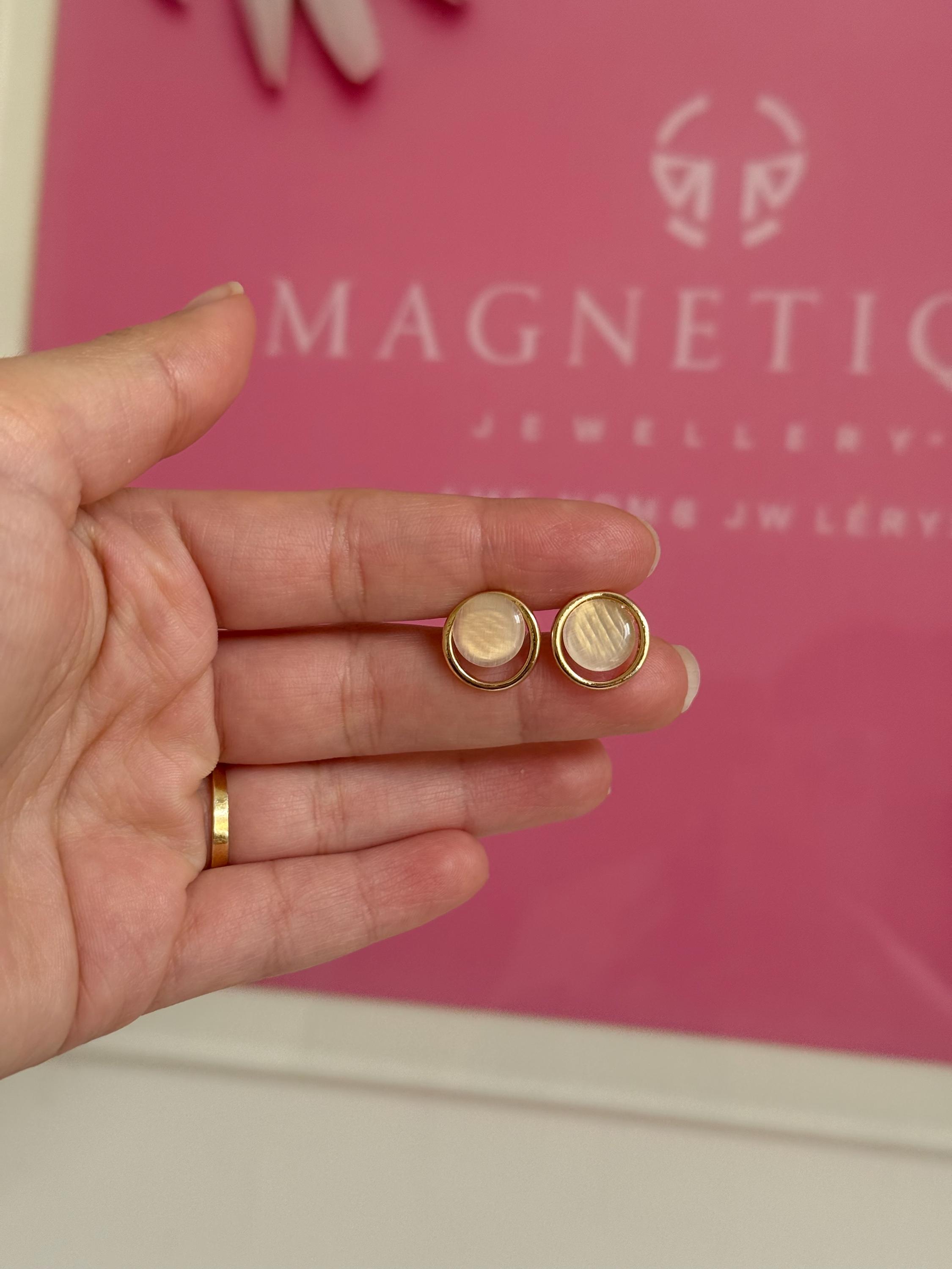 Gold Stud Earrings- Silver Needle - Minimal Round Moonstone Jewellery ✨