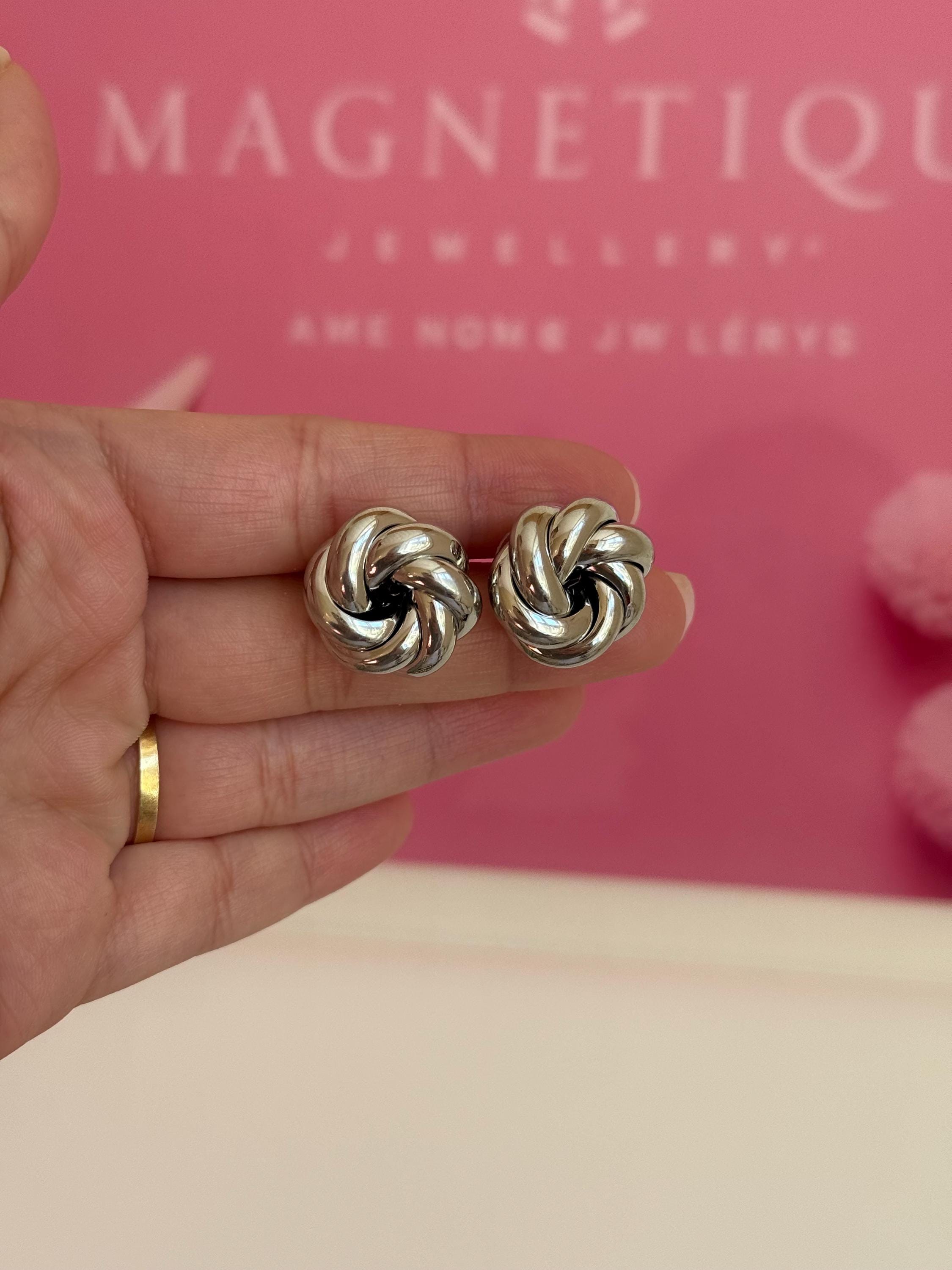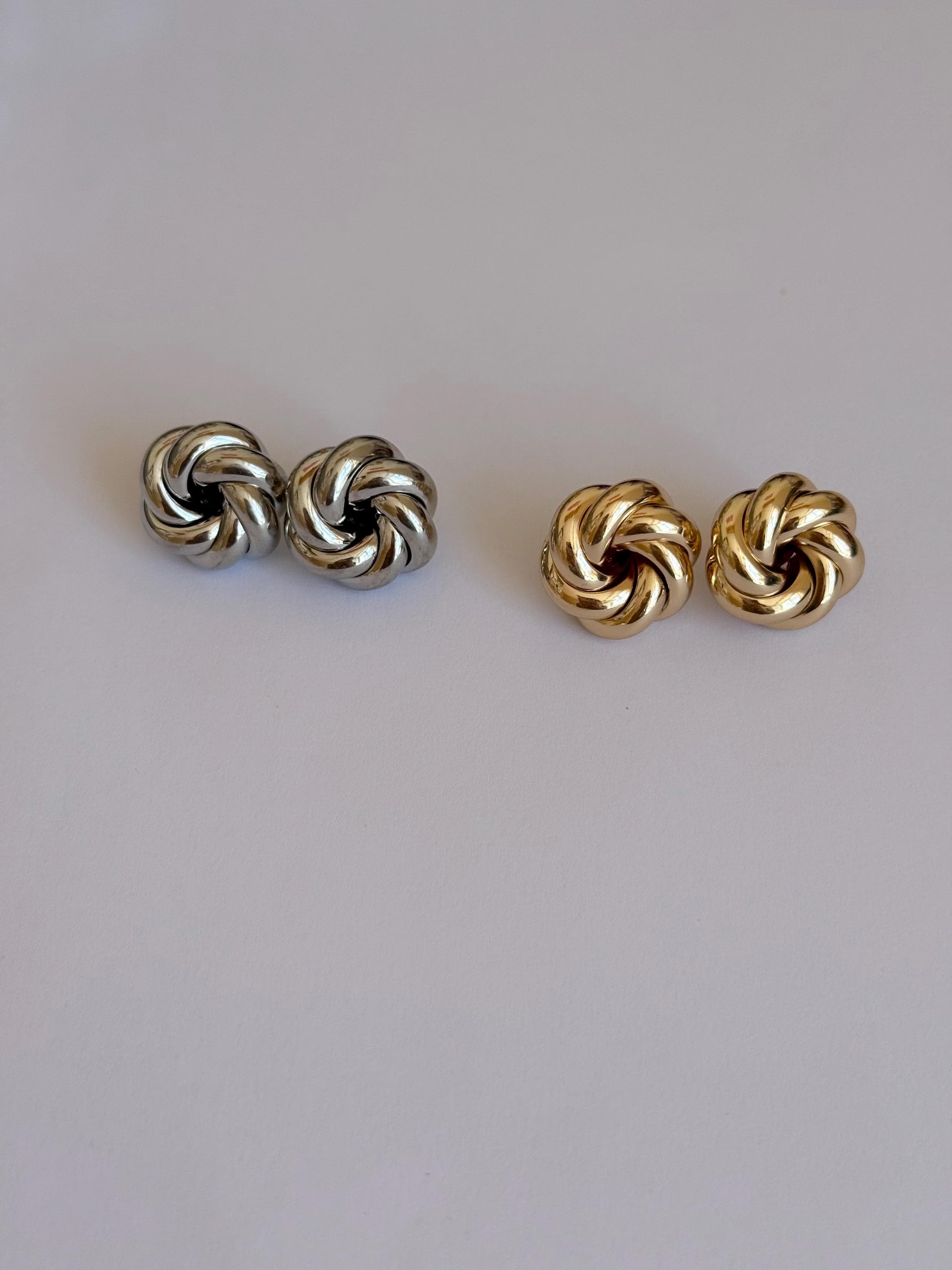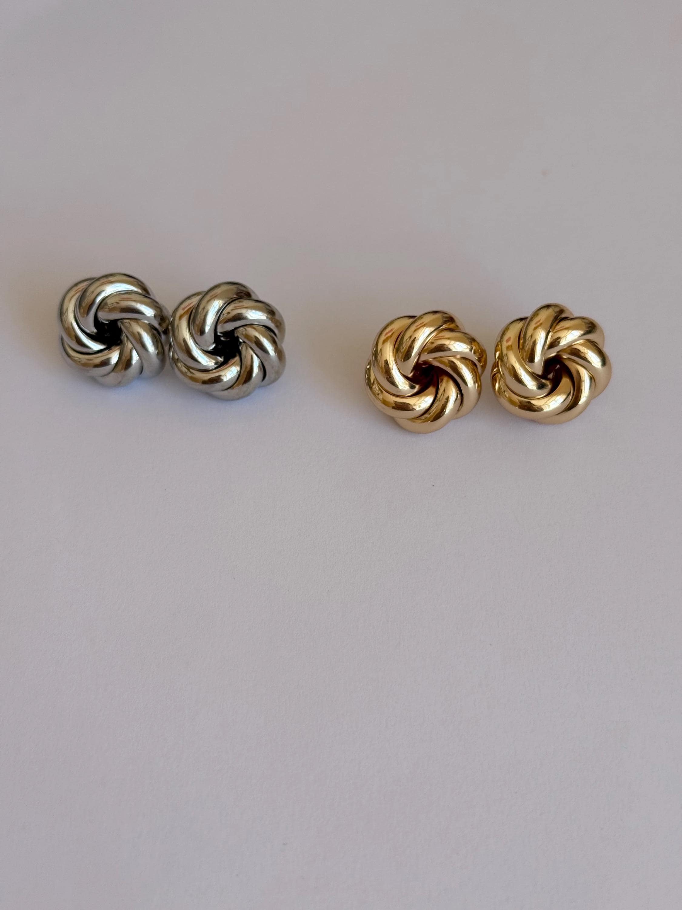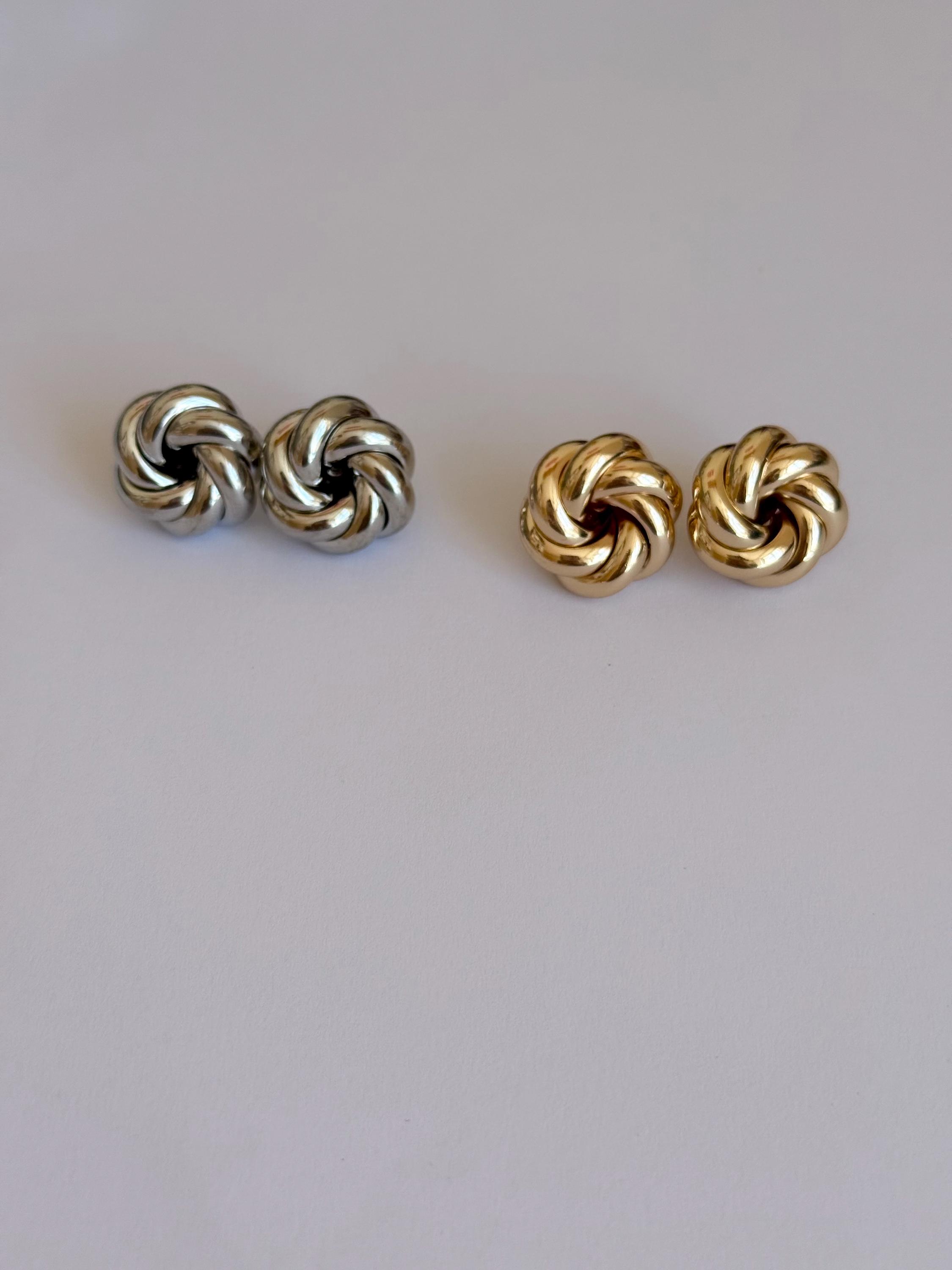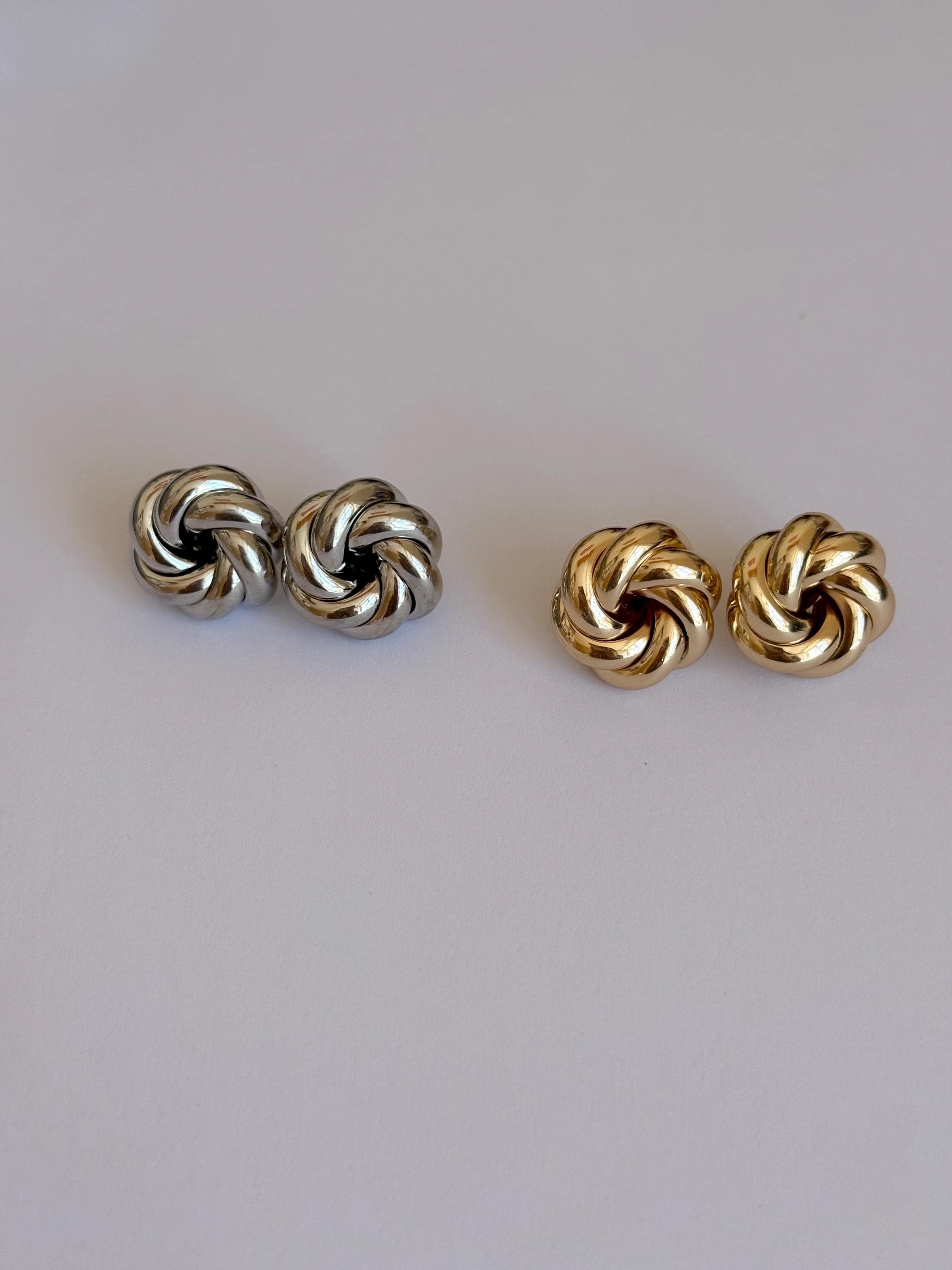 These chunky yet sophisticated earrings are available in both gold and silver tones, making them perfect for everyday wear or special occasions. Their classic knot shape adds a stylish and modern touch to any outfit.