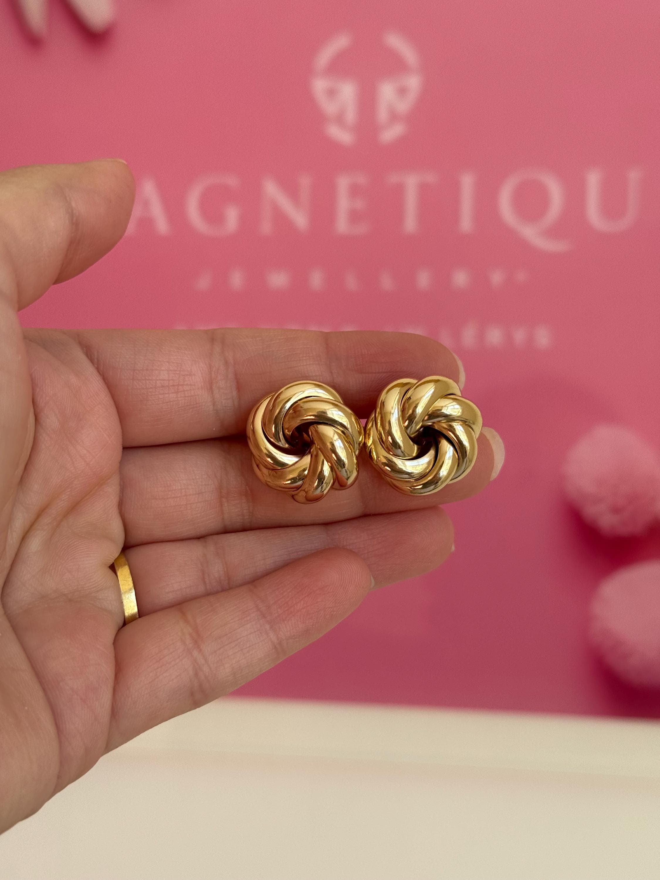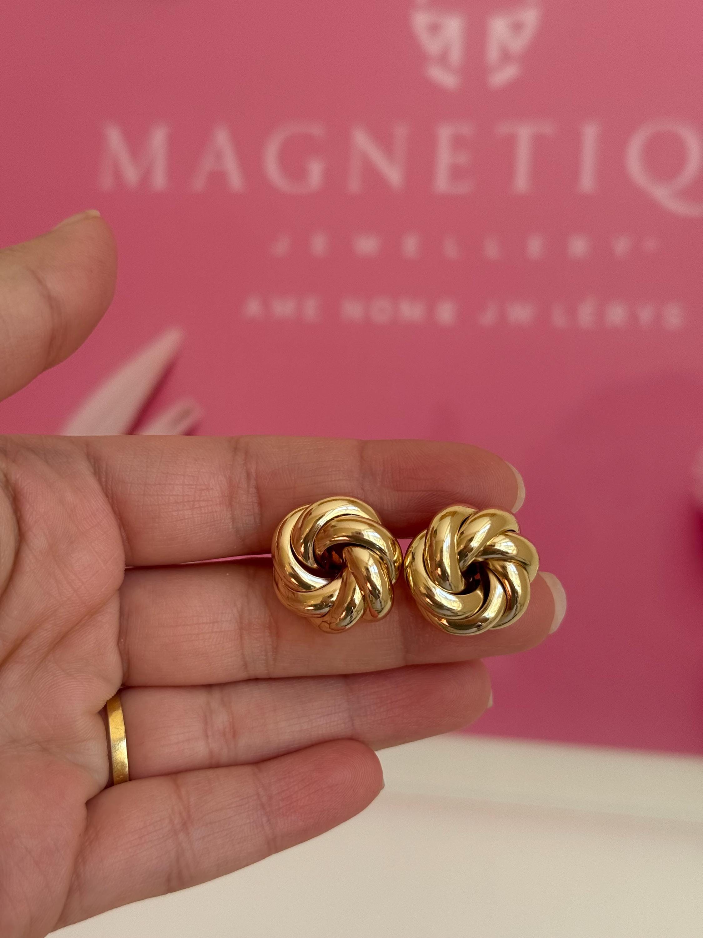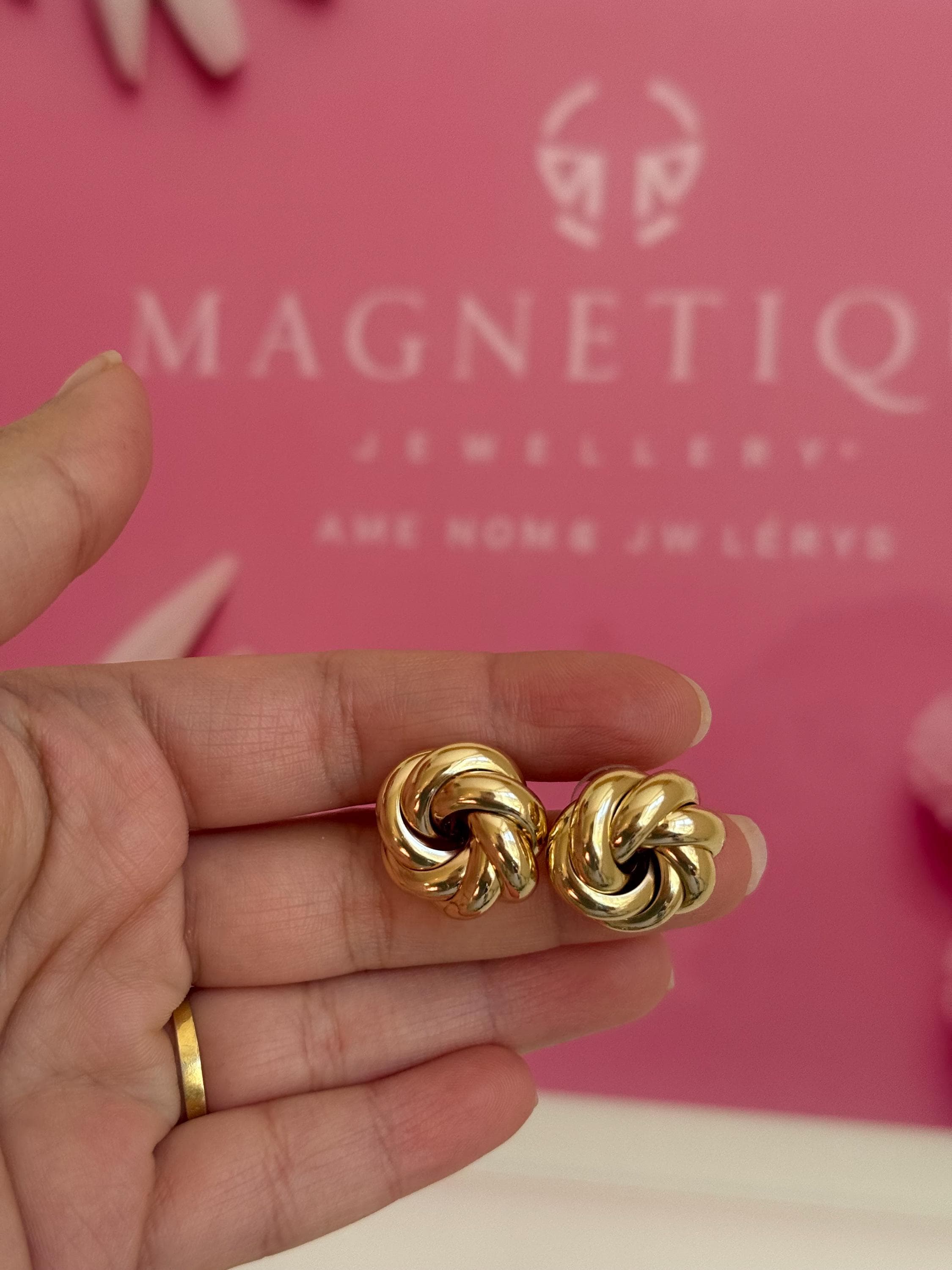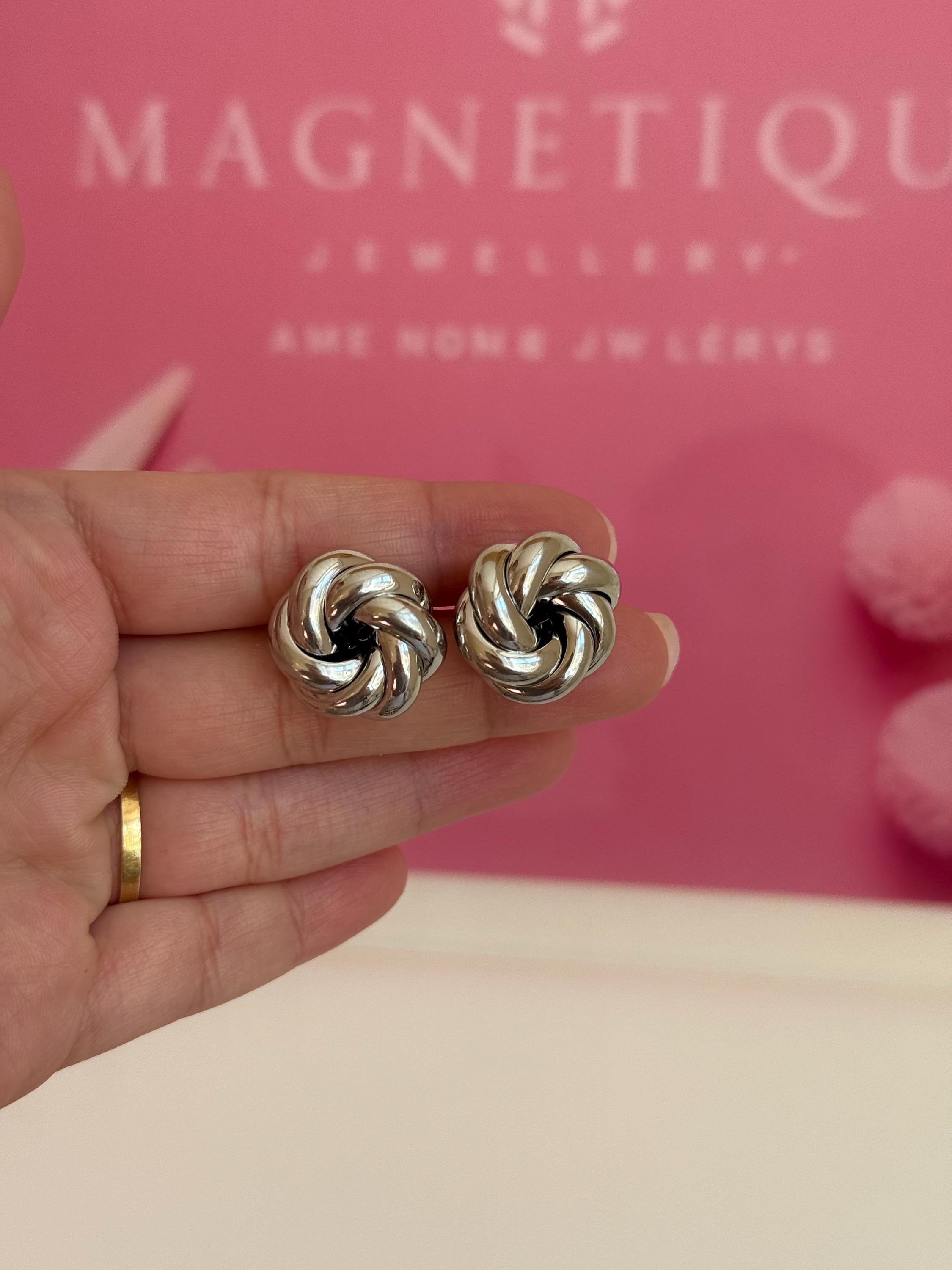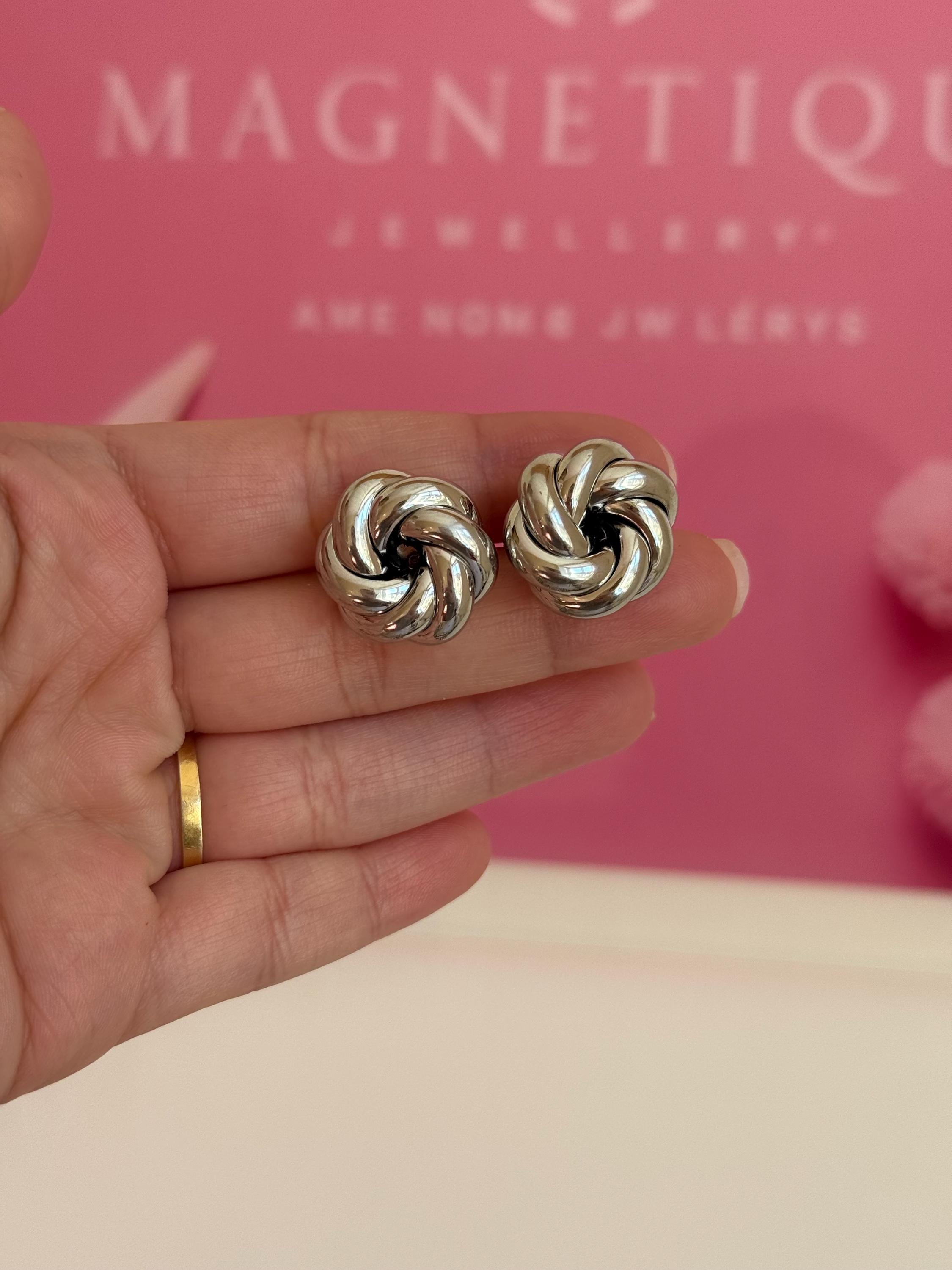 These chunky yet sophisticated earrings are available in both gold and silver tones, making them perfect for everyday wear or special occasions. Their classic knot shape adds a stylish and modern touch to any outfit.