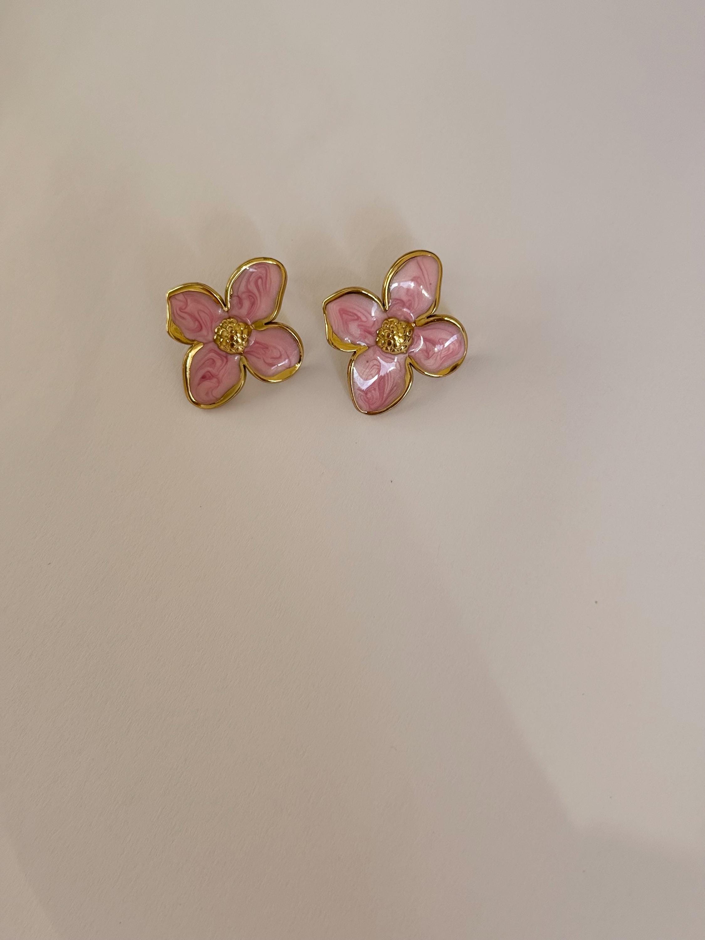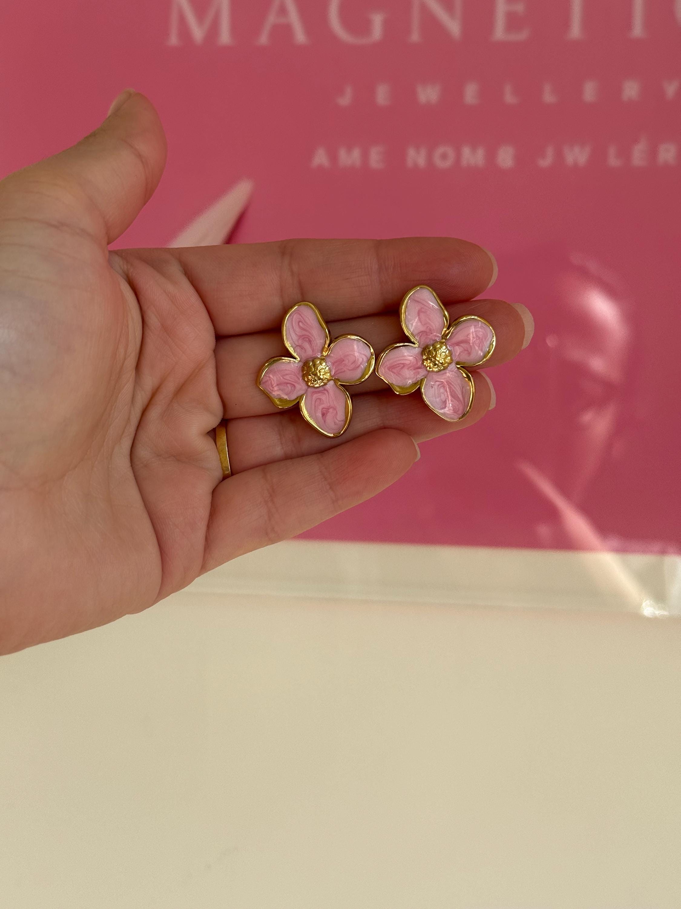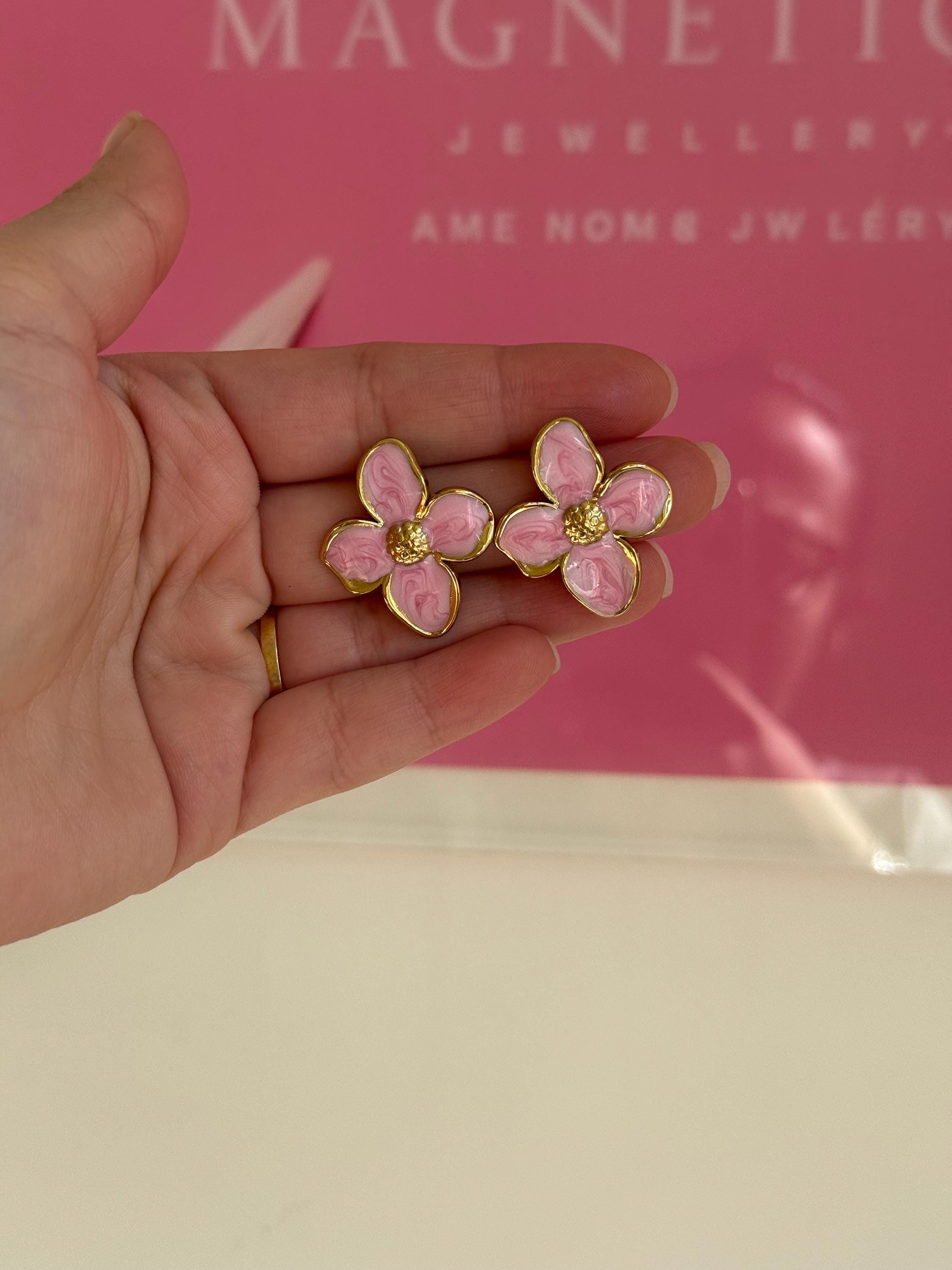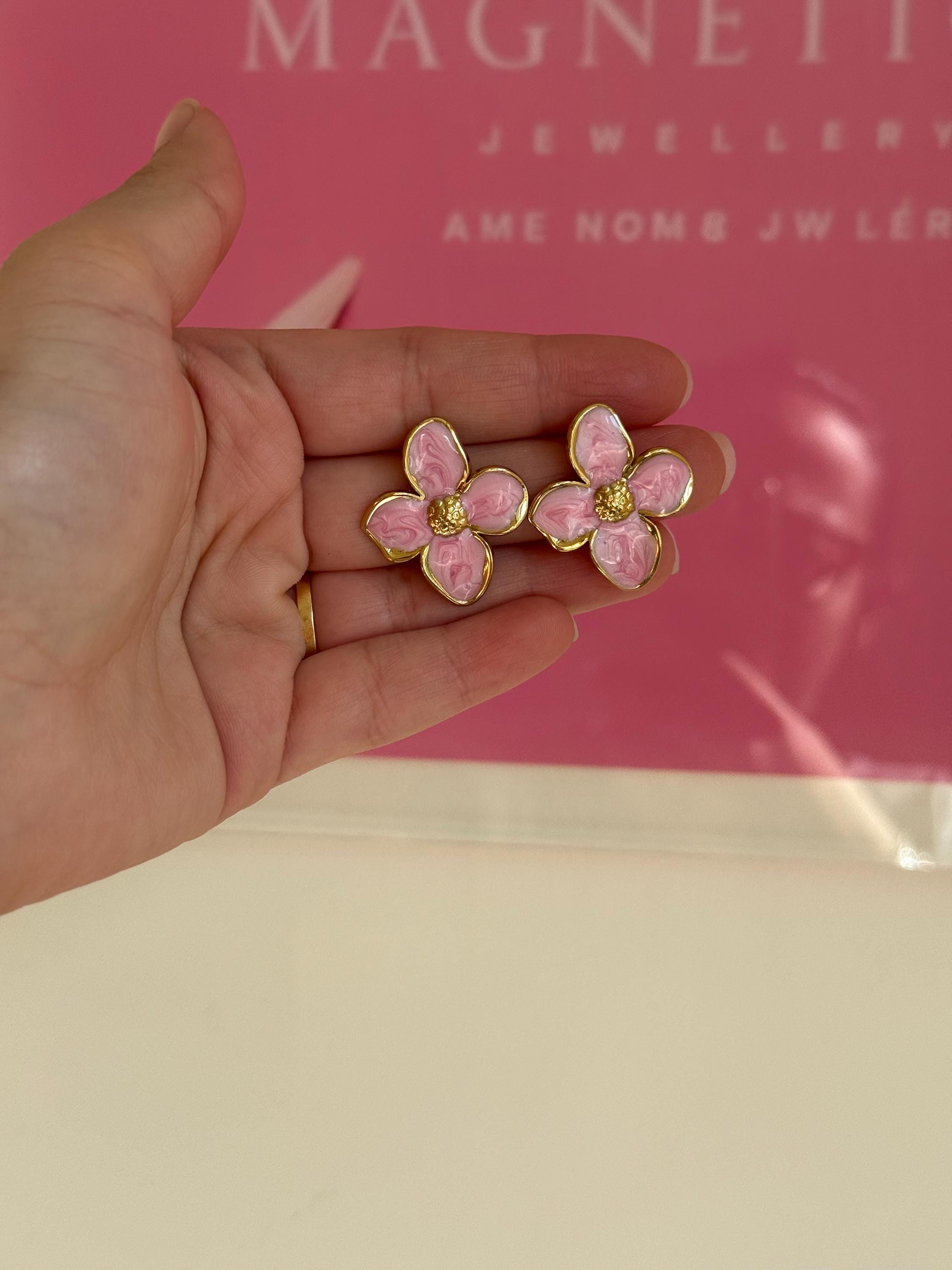 Adorable pink flower stud earrings designed to add a soft and feminine touch to your look.