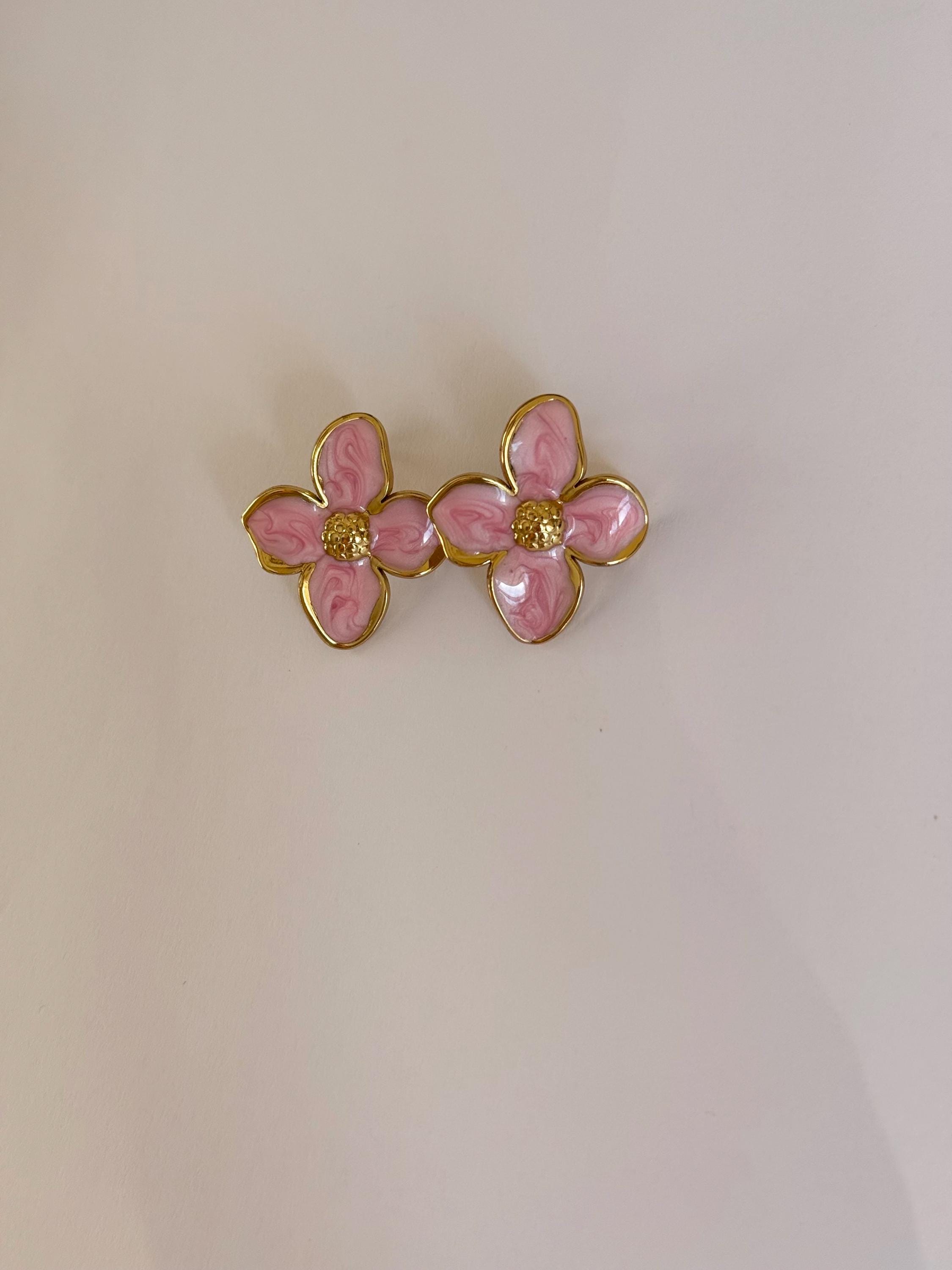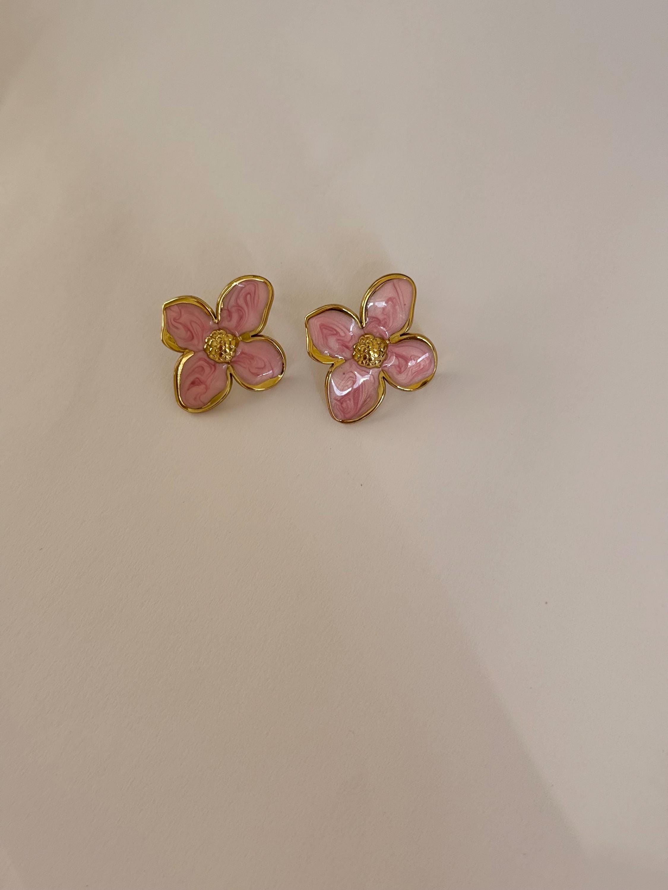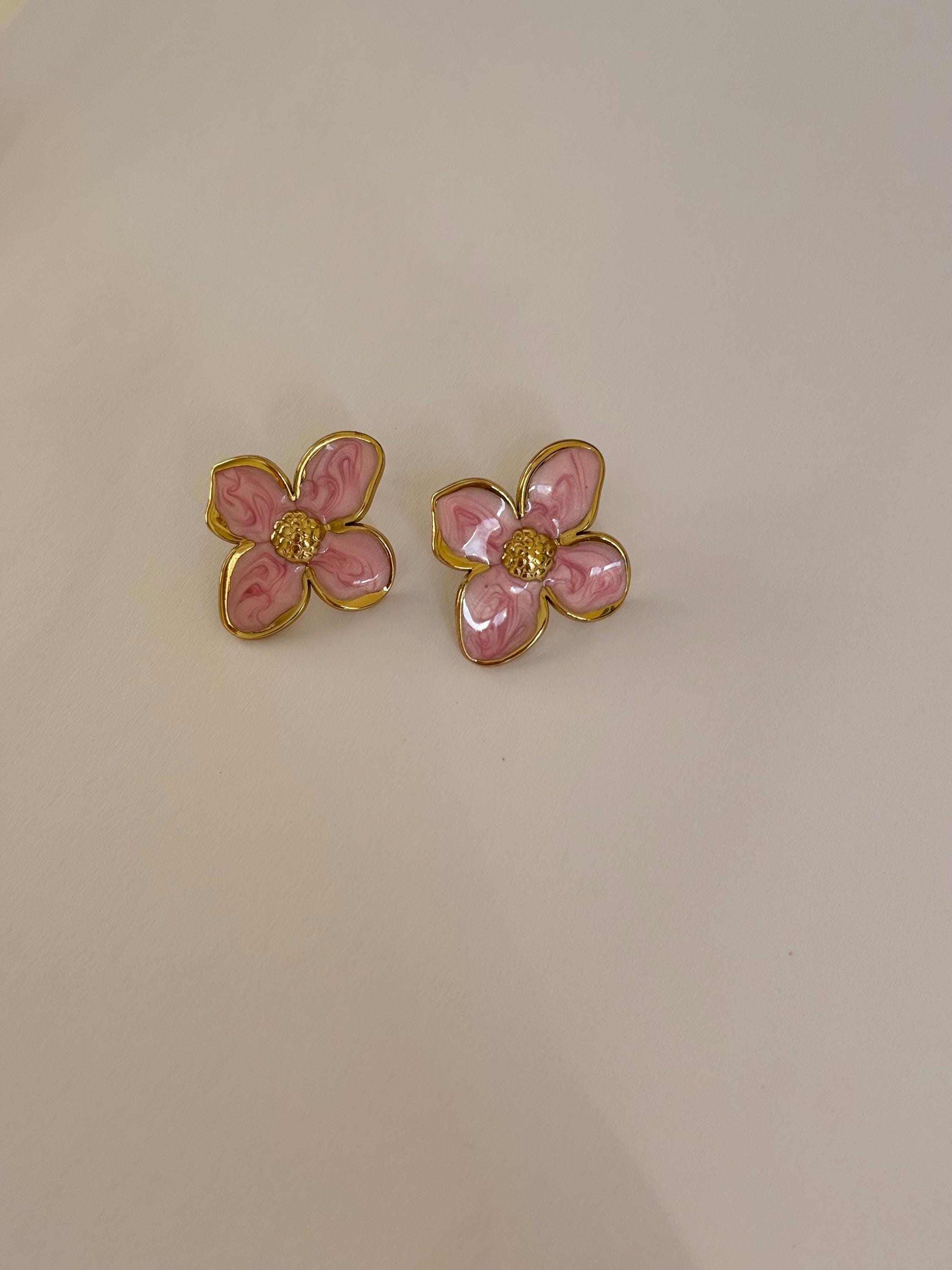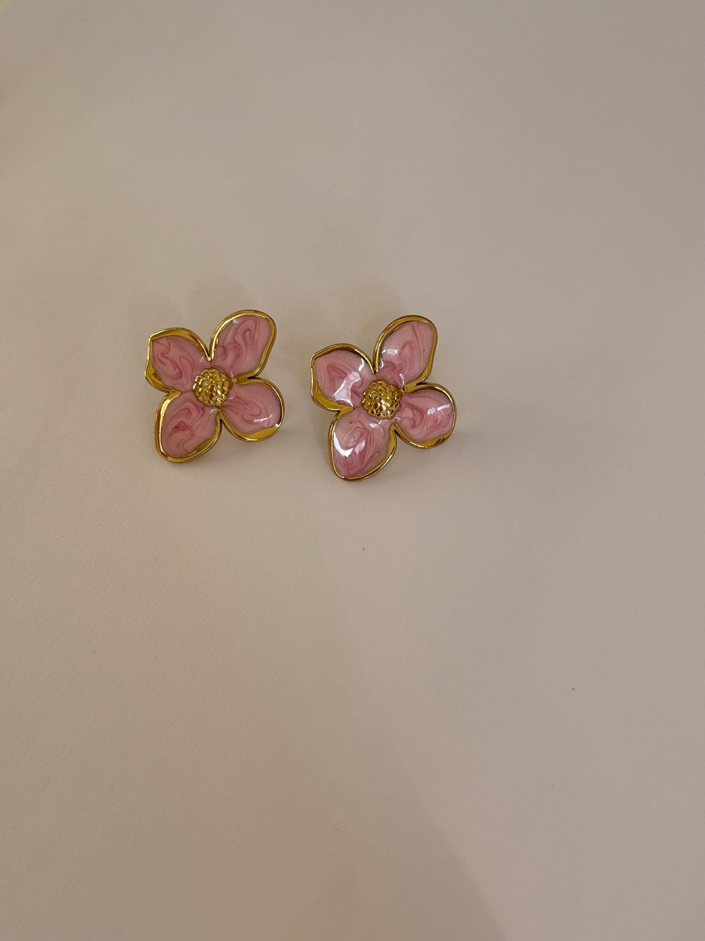 Adorable pink flower stud earrings designed to add a soft and feminine touch to your look.