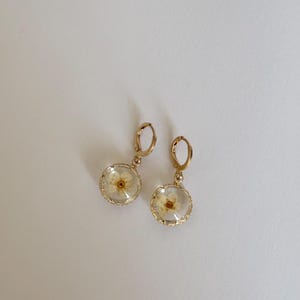 These earrings feature a delicate floral shape with a glossy enamel finish and gold-tone detailing, creating a playful yet elegant style perfect for everyday wear.