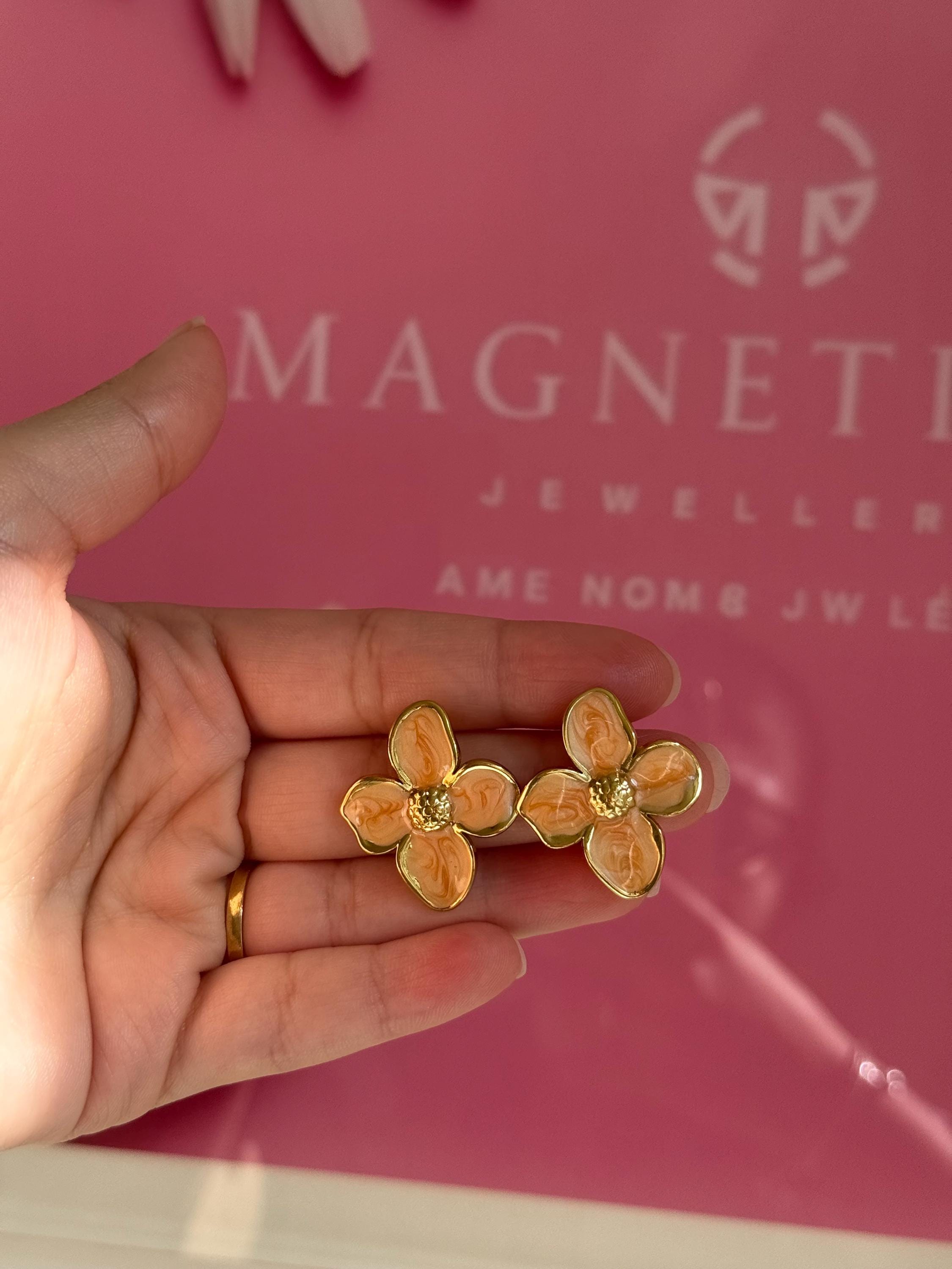 ✨ Soft peach enamel design ✨ Gold-tone detailing ✨ Lightweight and comfortable ✨ Perfect for everyday or special occasions