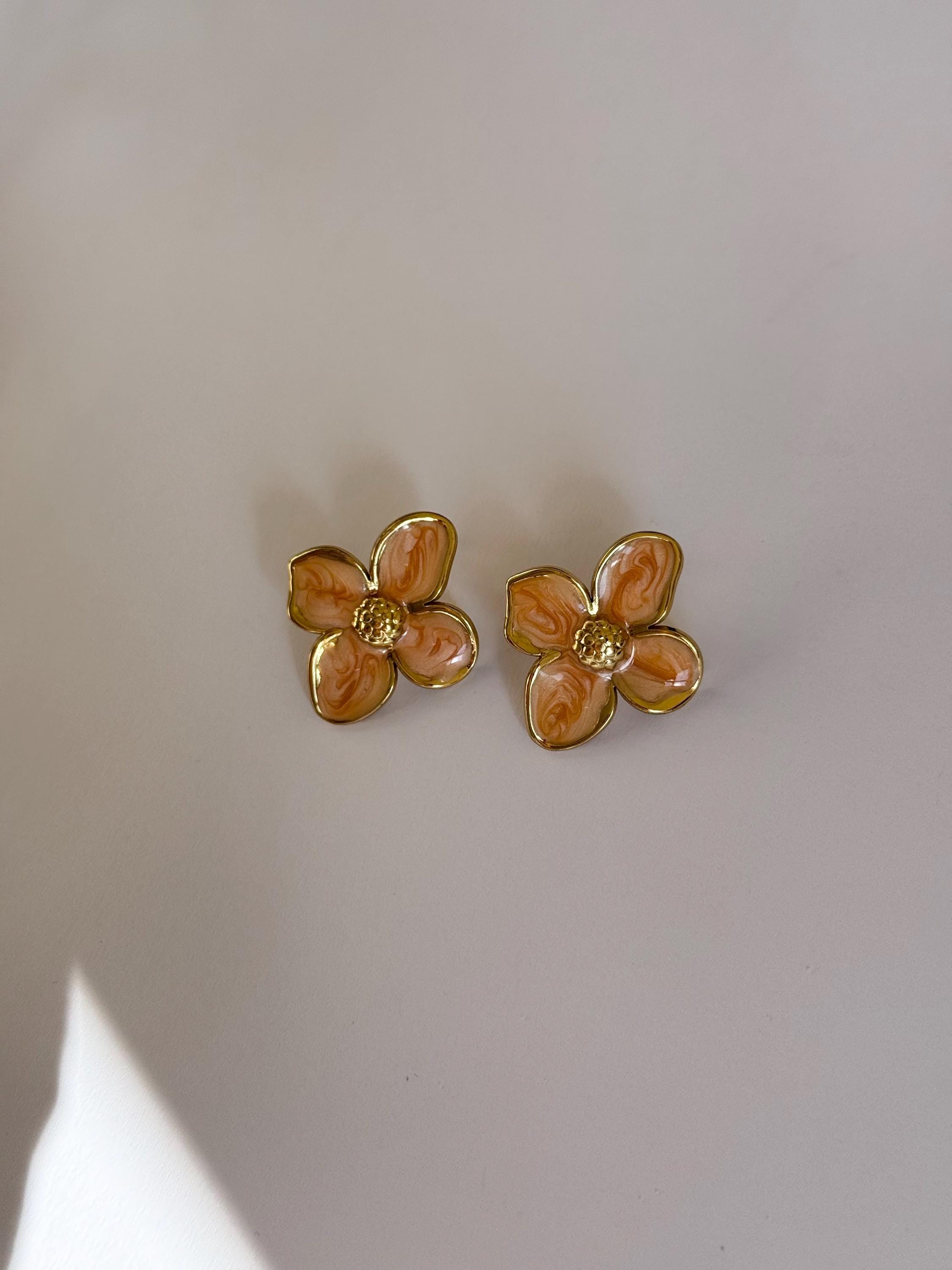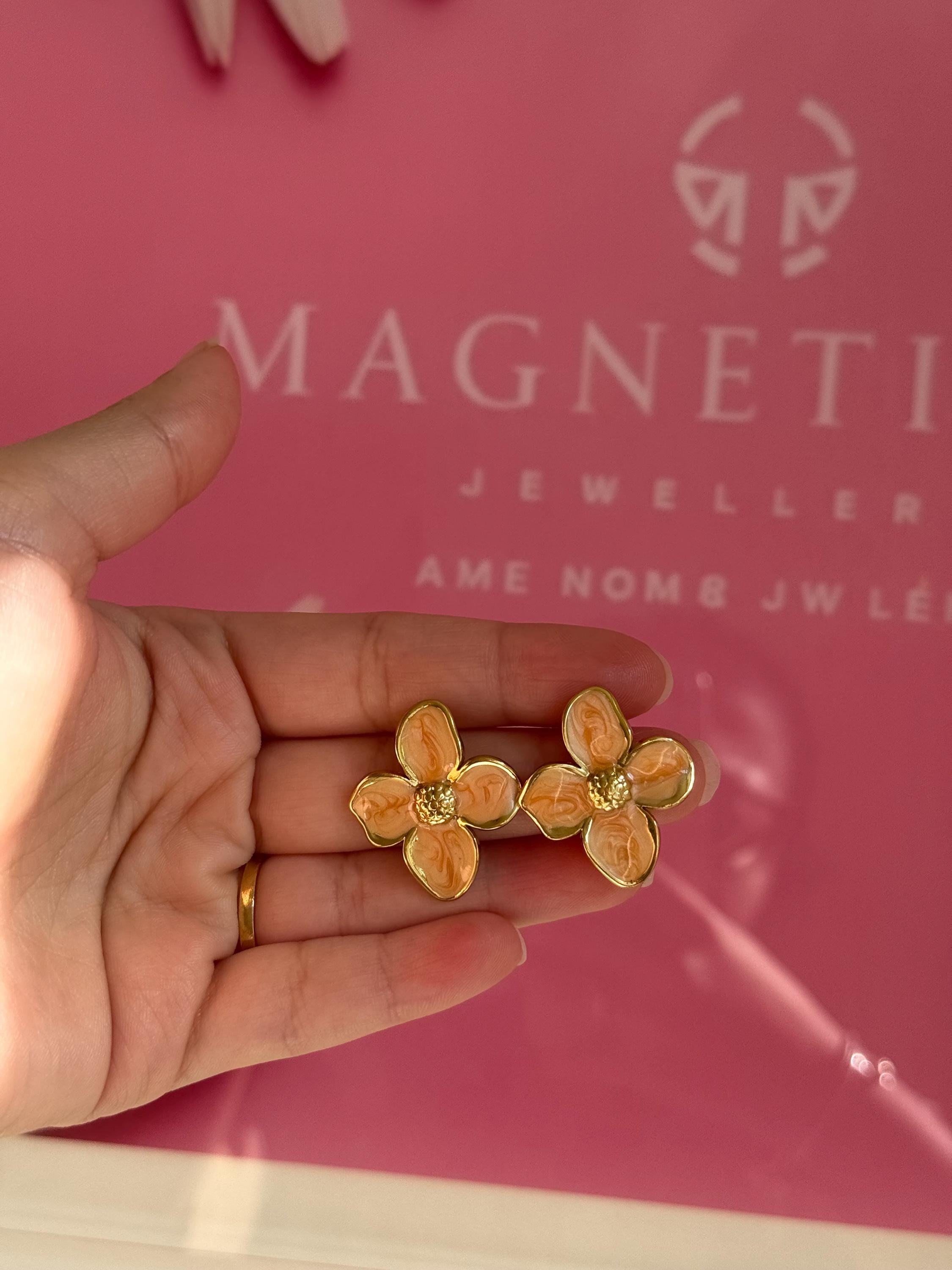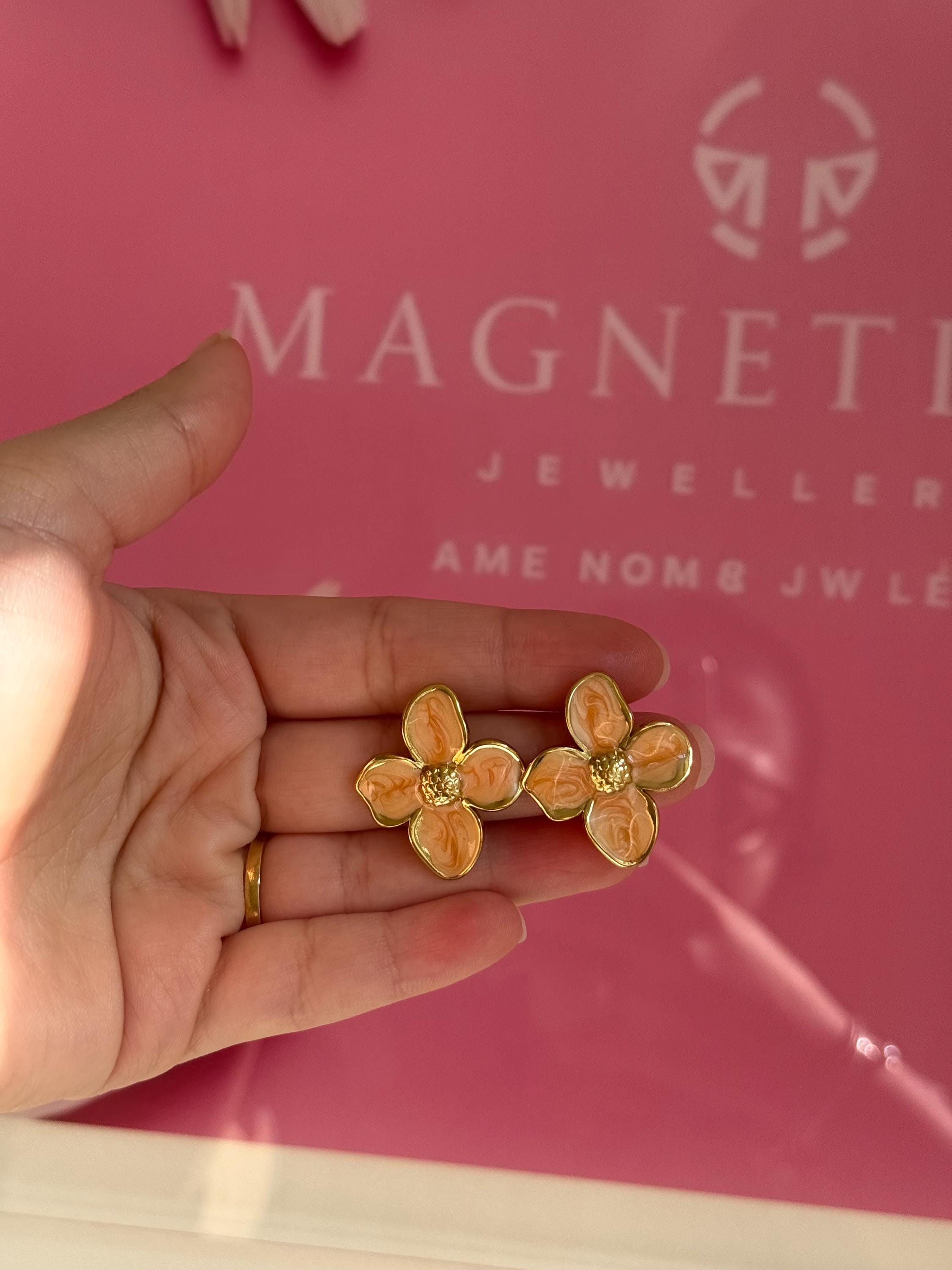 These delicate floral earrings add a warm and feminine touch to any outfit. Their subtle colour and glossy finish make them perfect for everyday wear while still feeling elegant and unique.