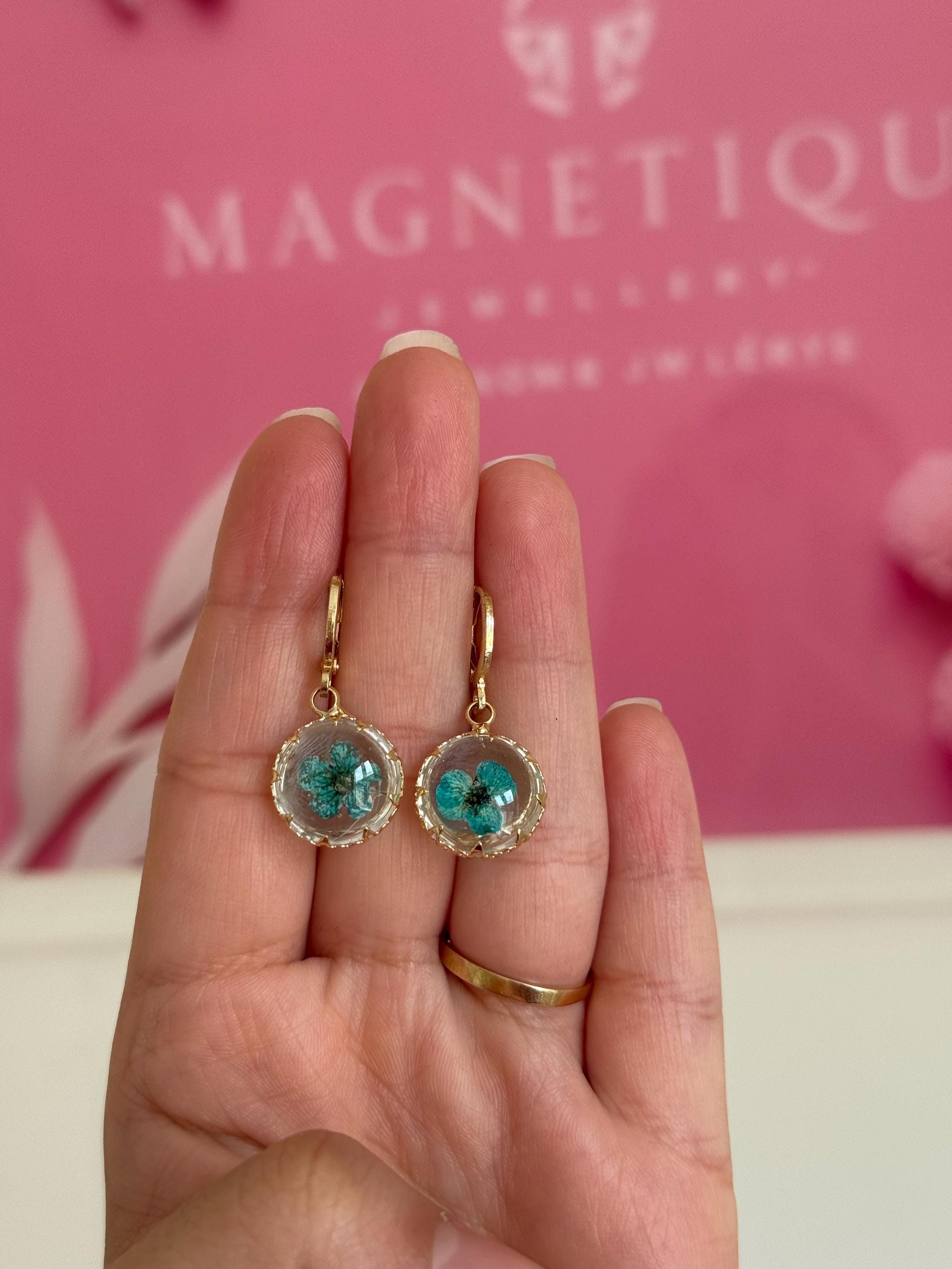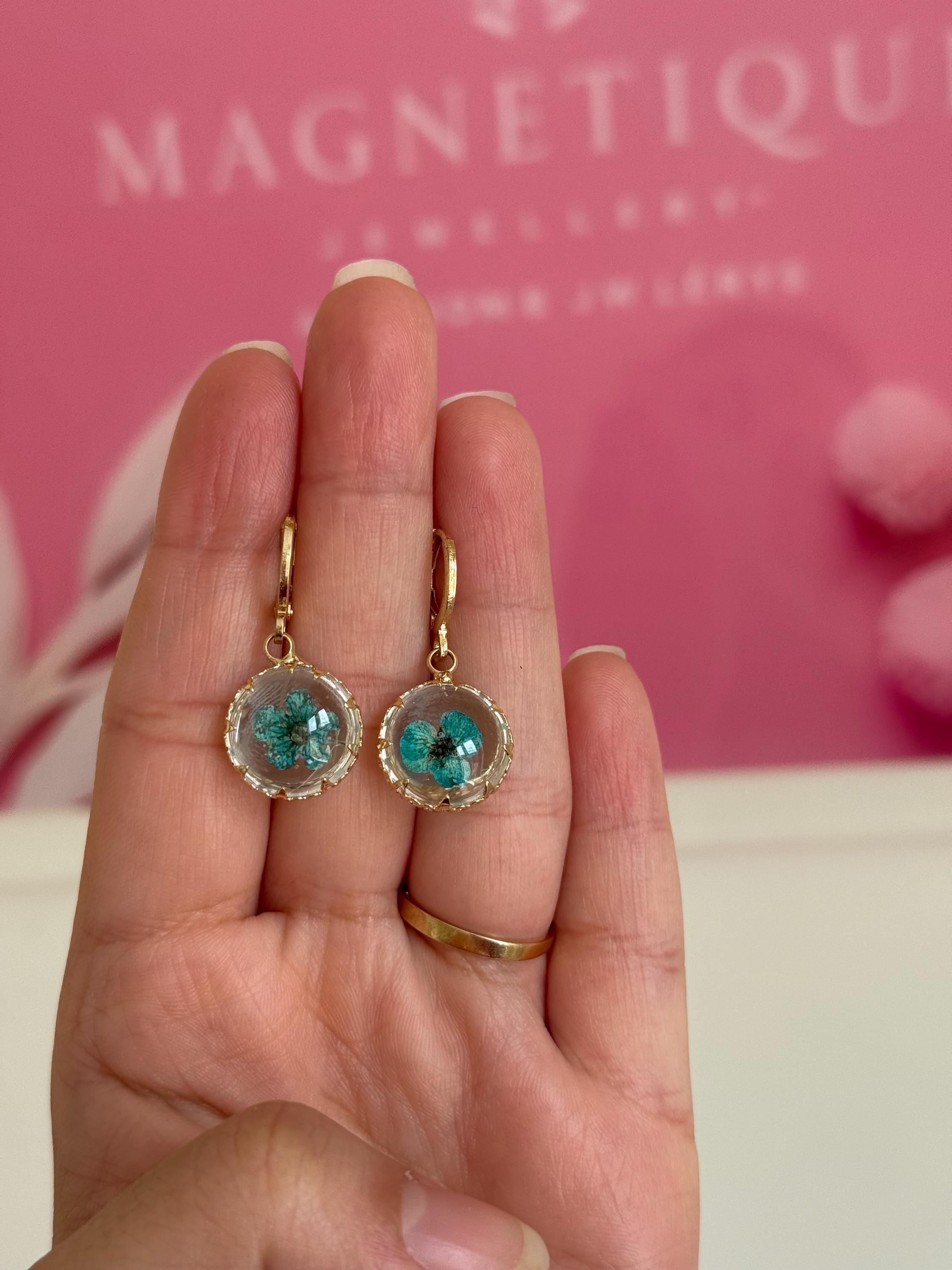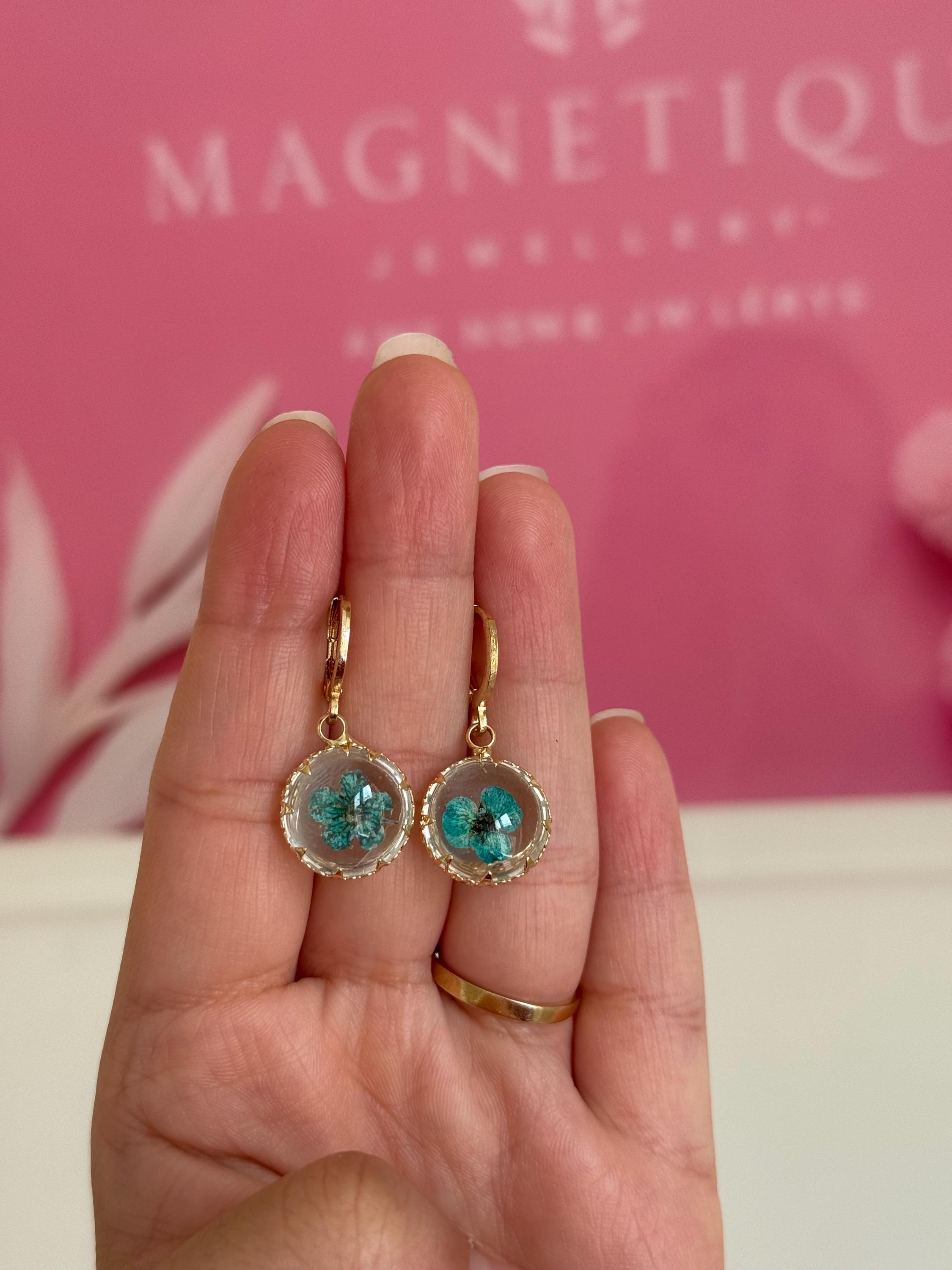 ✨ Real dried turquoise flower ✨ Clear resin round design ✨ Lightweight & comfortable ✨ Unique & eye-catching colour ✨ Perfect for everyday or special occasions