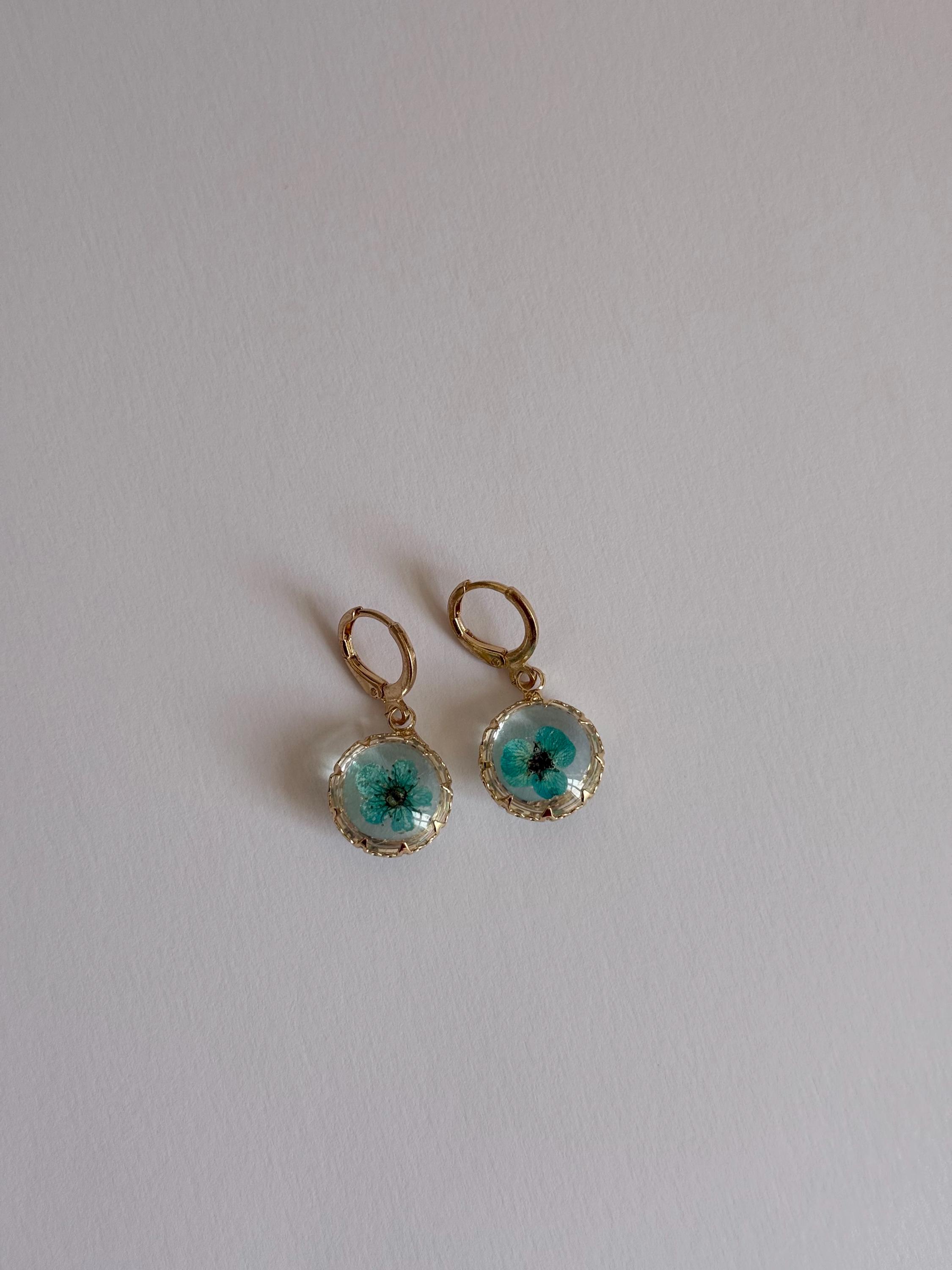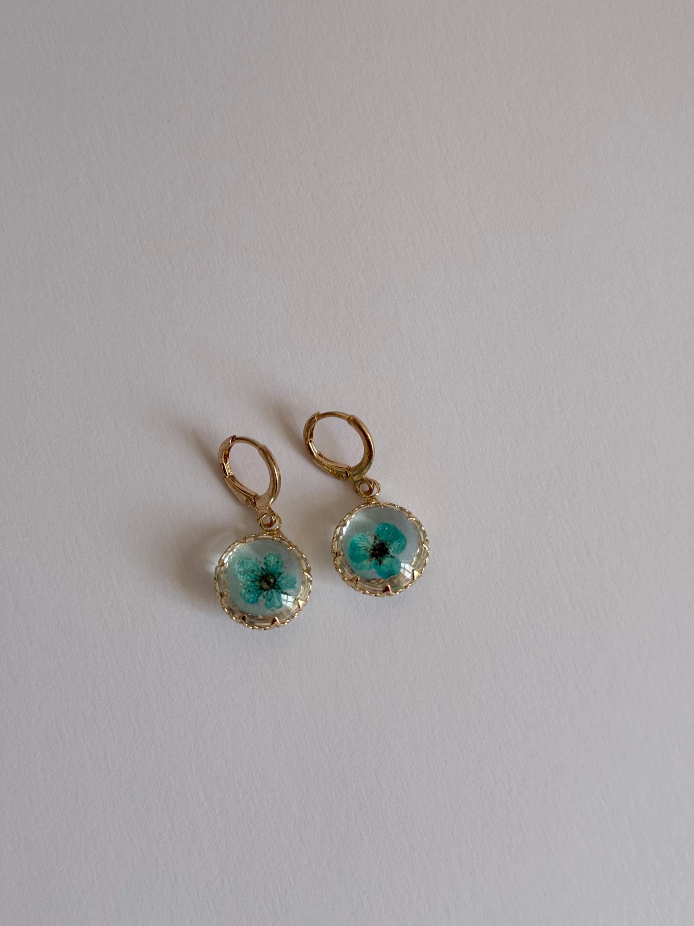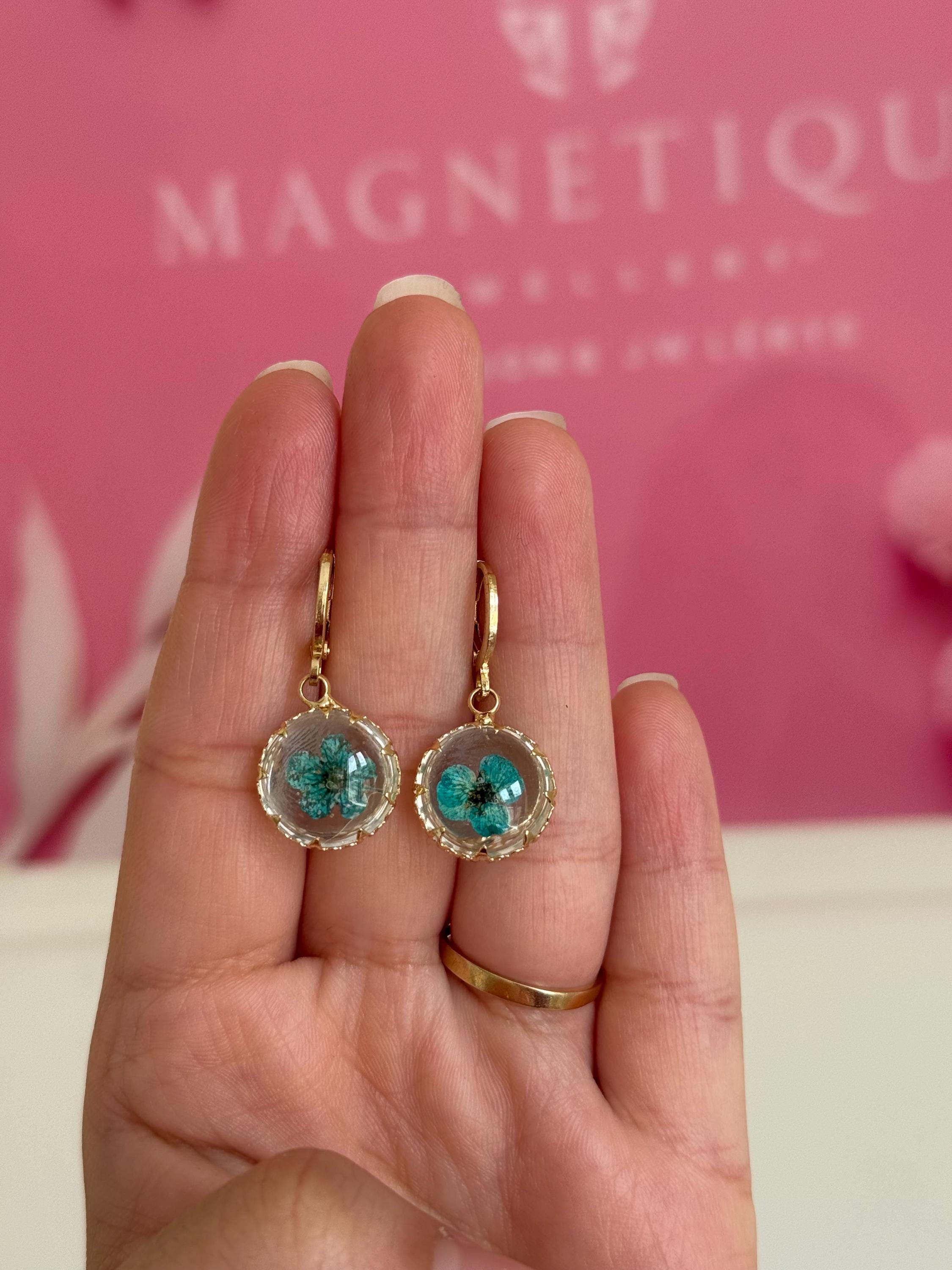 ✨ Real dried turquoise flower ✨ Clear resin round design ✨ Lightweight & comfortable ✨ Unique & eye-catching colour ✨ Perfect for everyday or special occasions