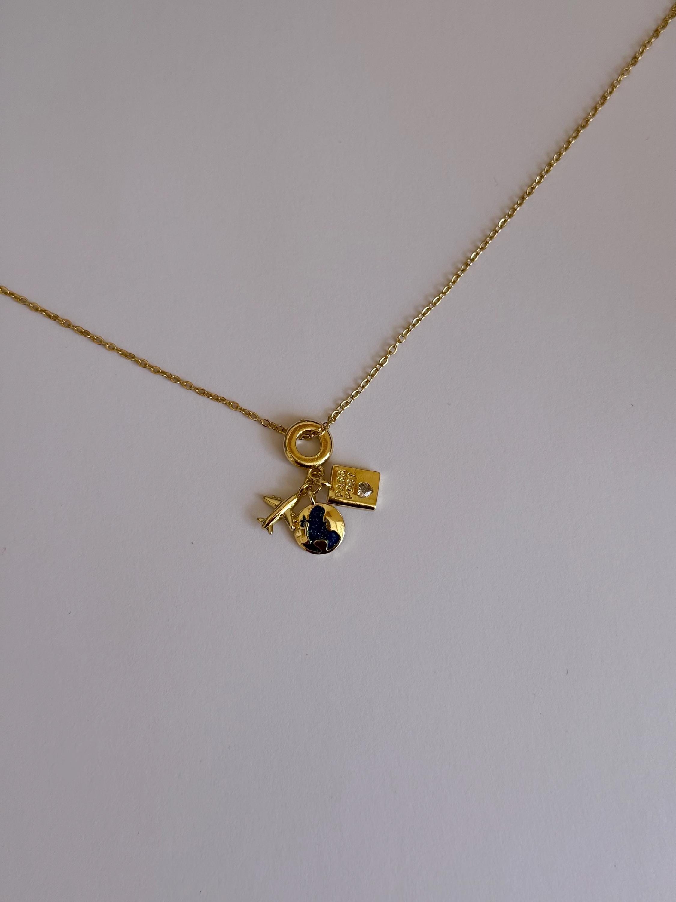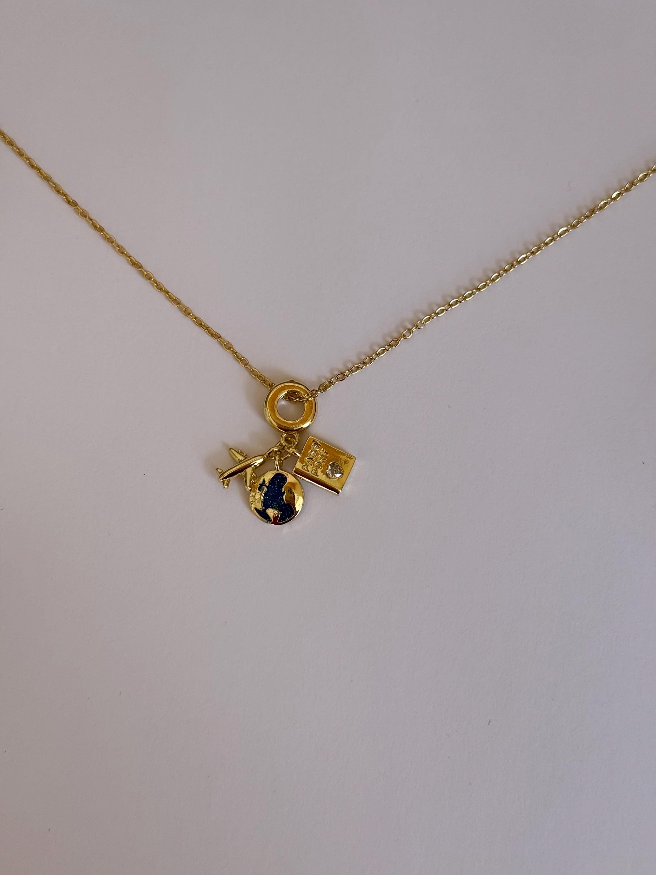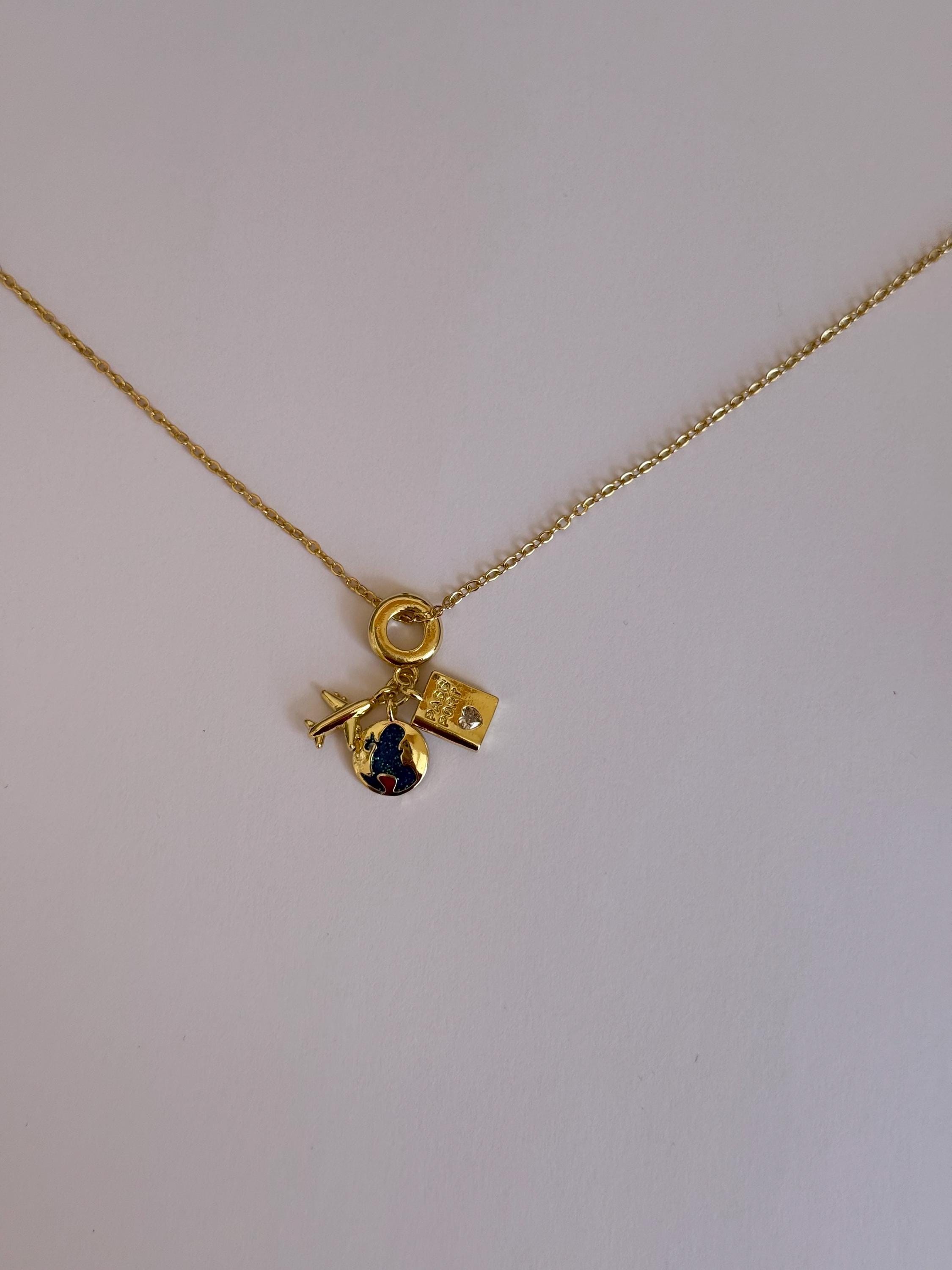 Travel Charm- Gold Necklace- Stainless Steel- Traveller Jewelry ✨
