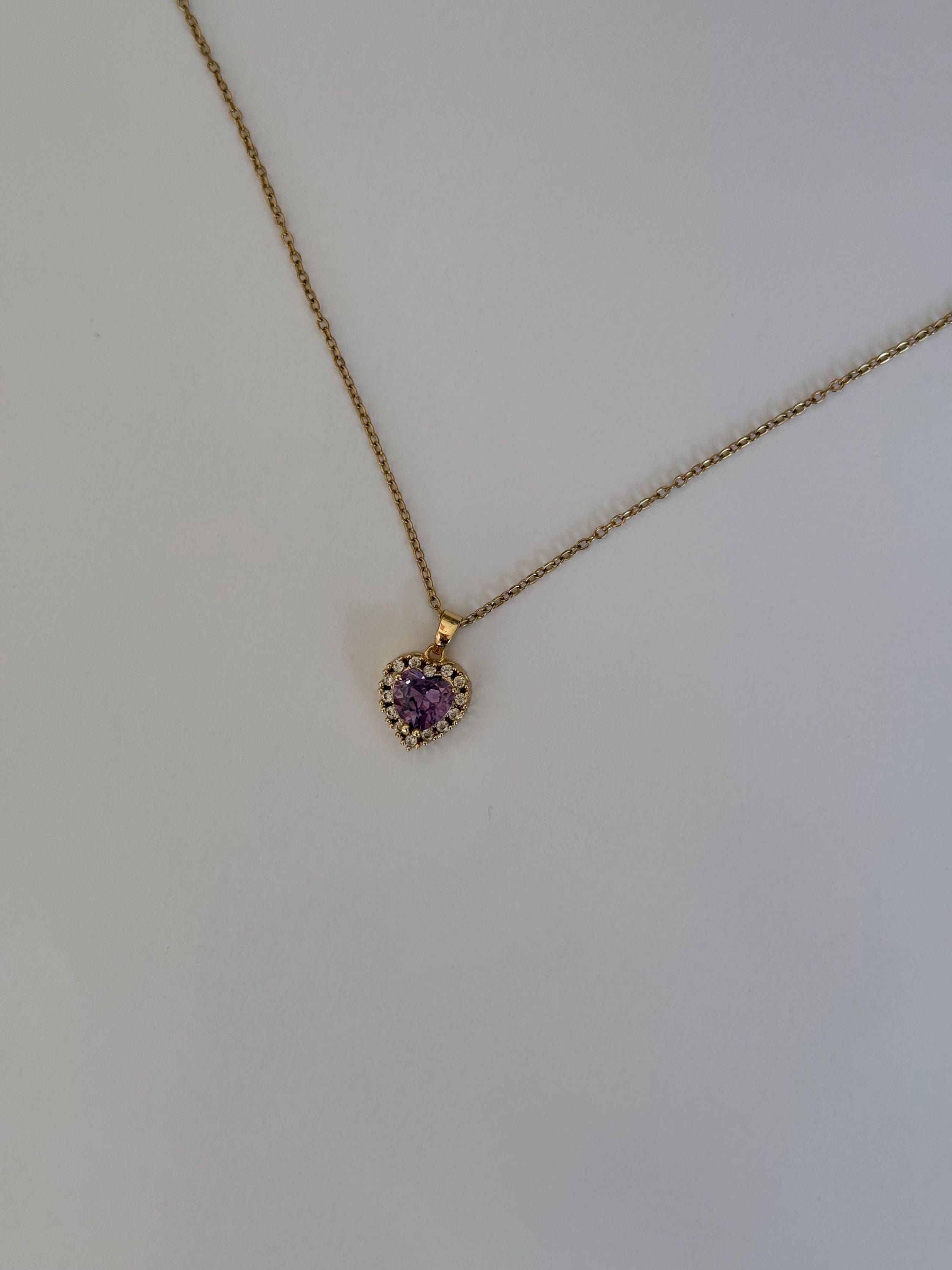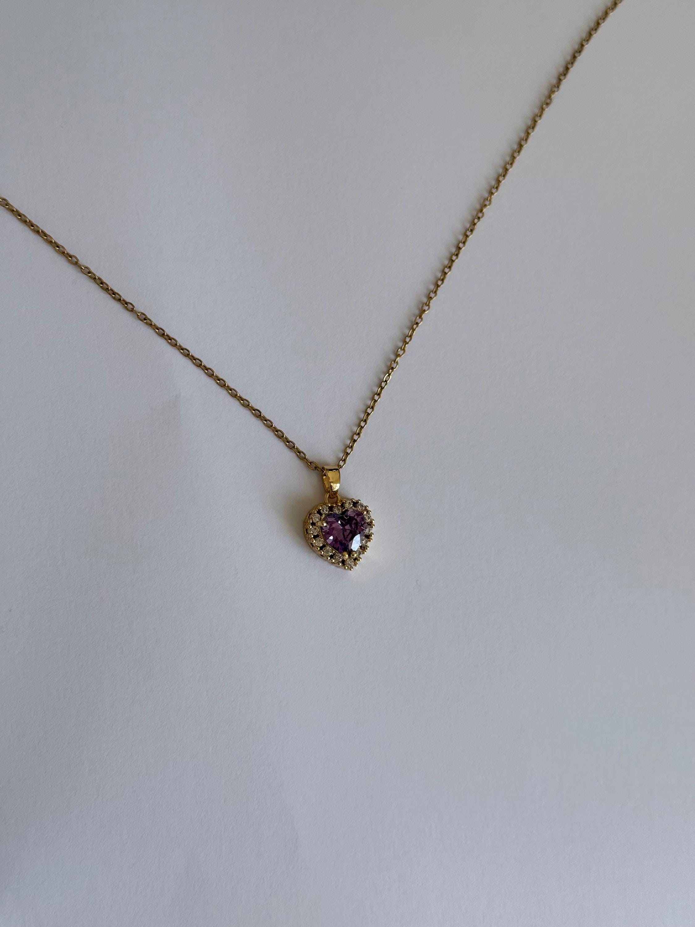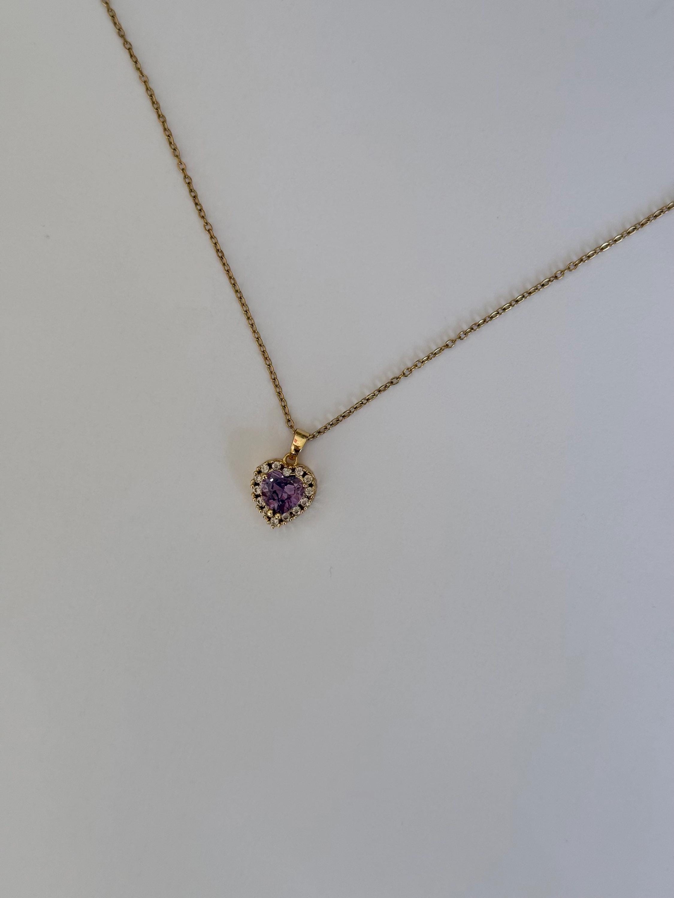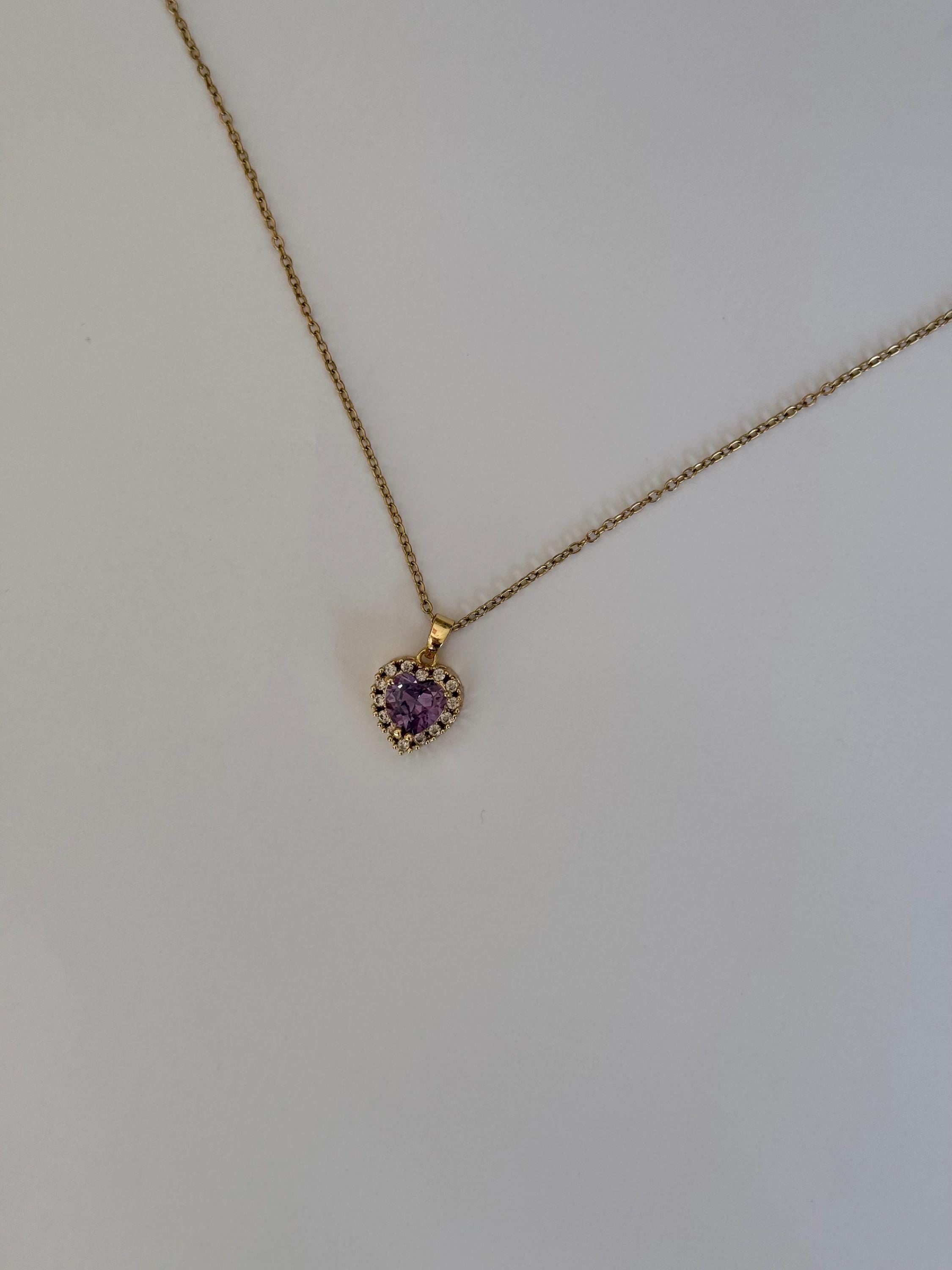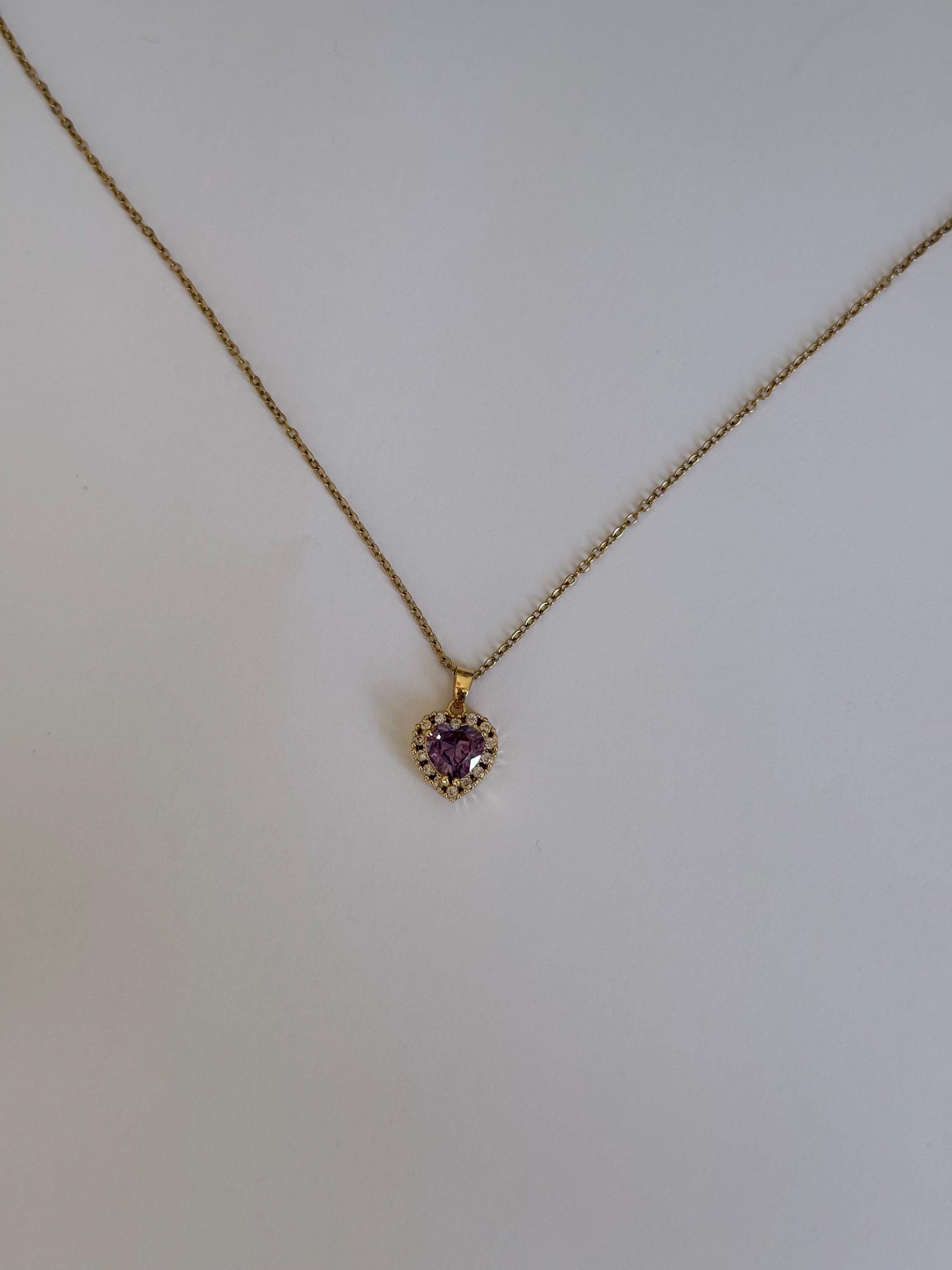 Purple Heart Necklace- Stainless Steel- Amethyst Zircon Pendant- Romantic Jewellery Gift ✨