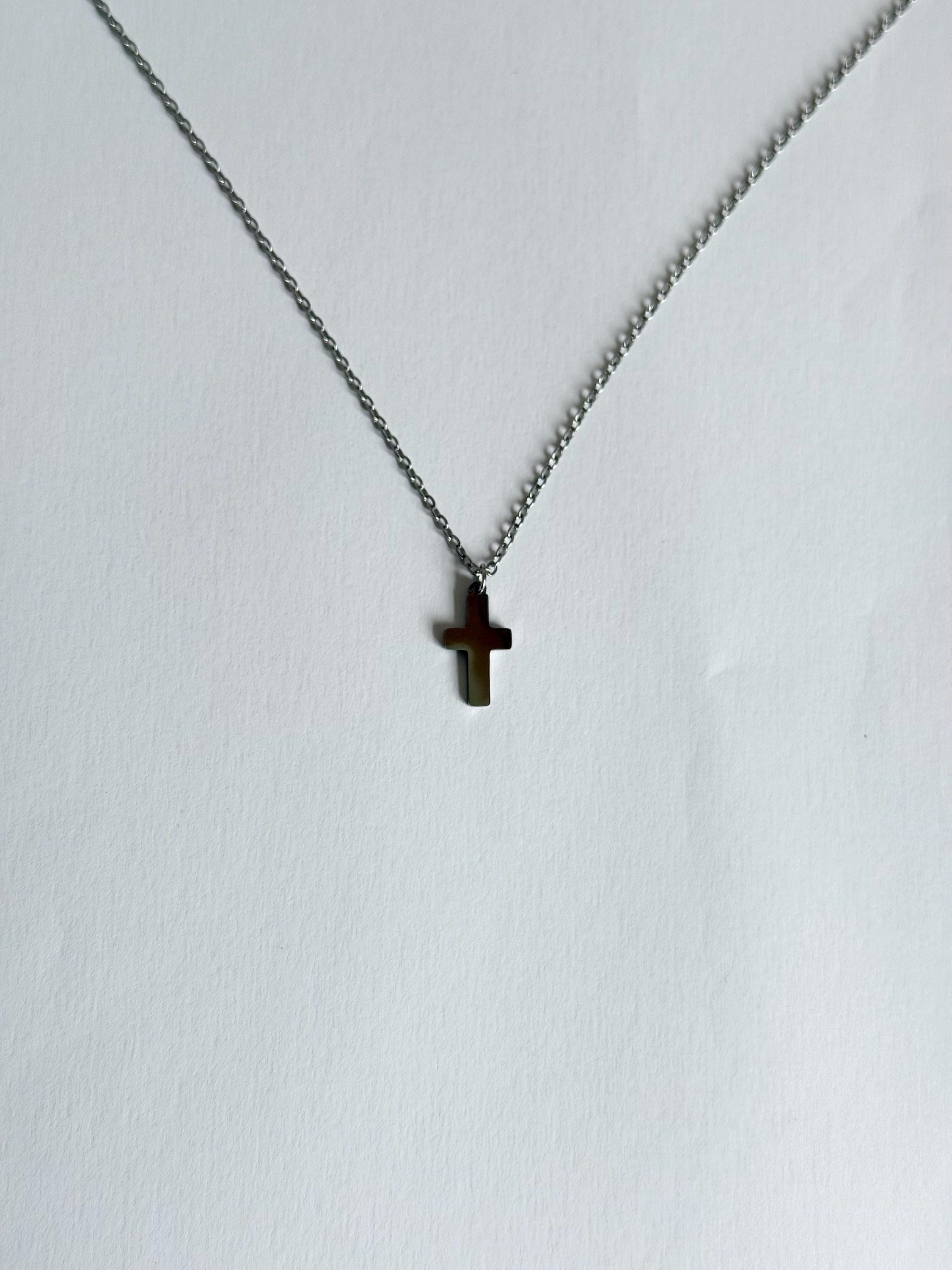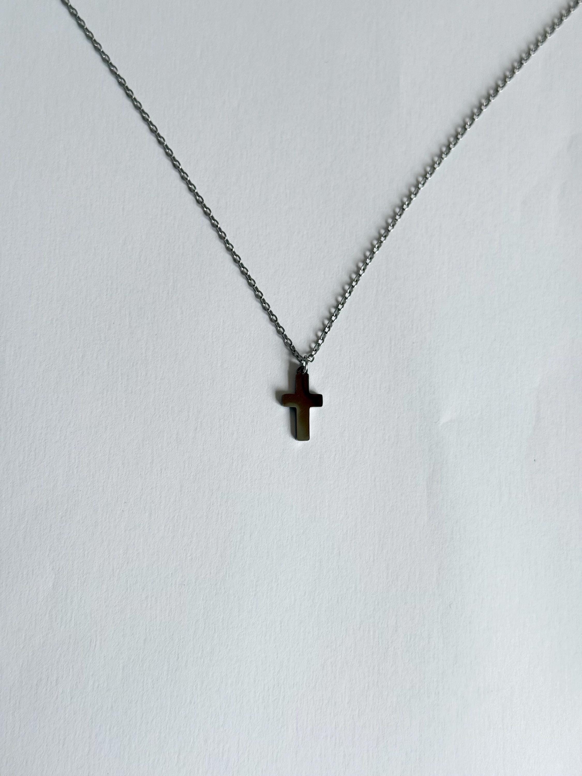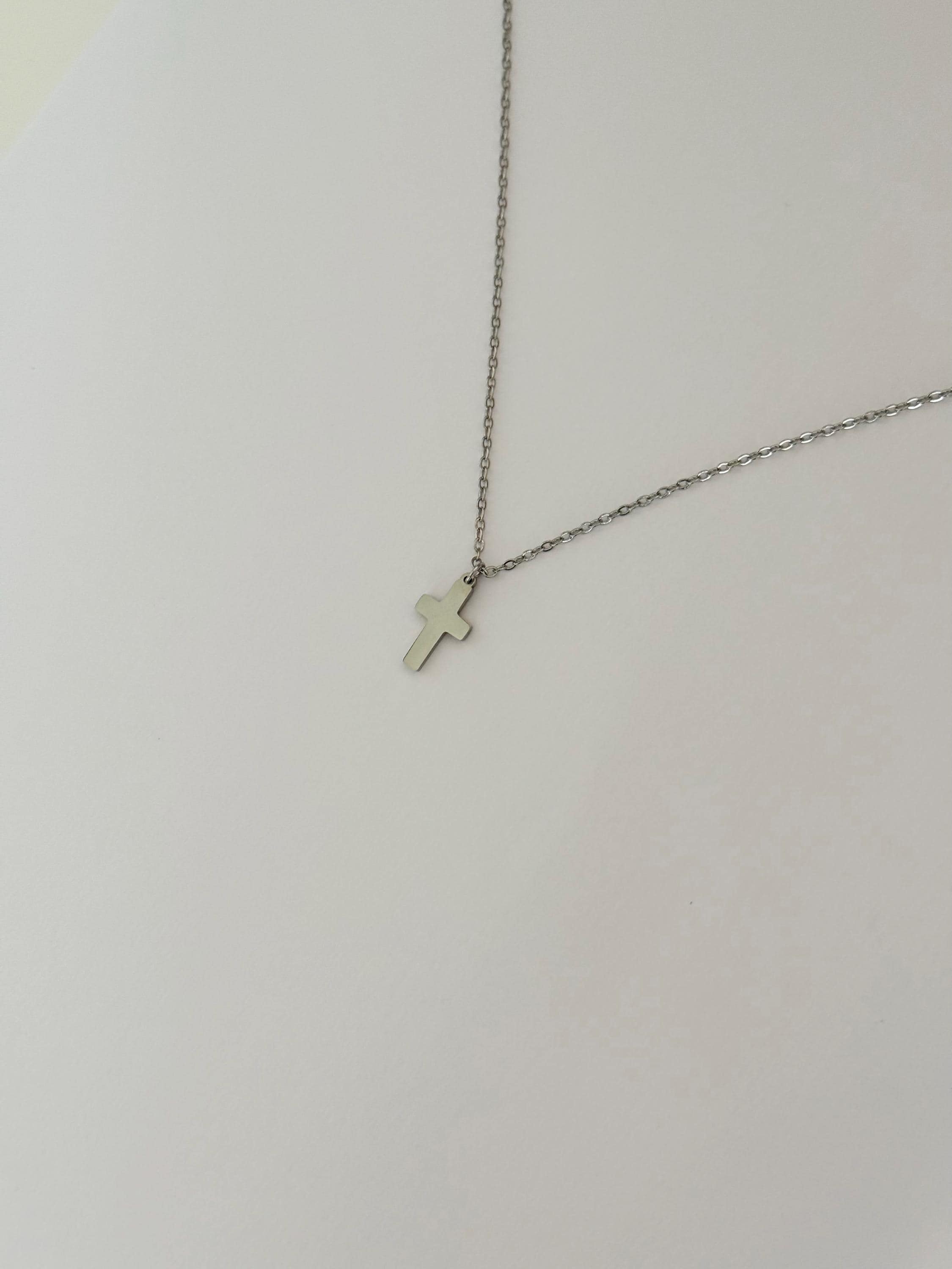 A sleek and minimal cross necklace crafted from durable stainless steel.