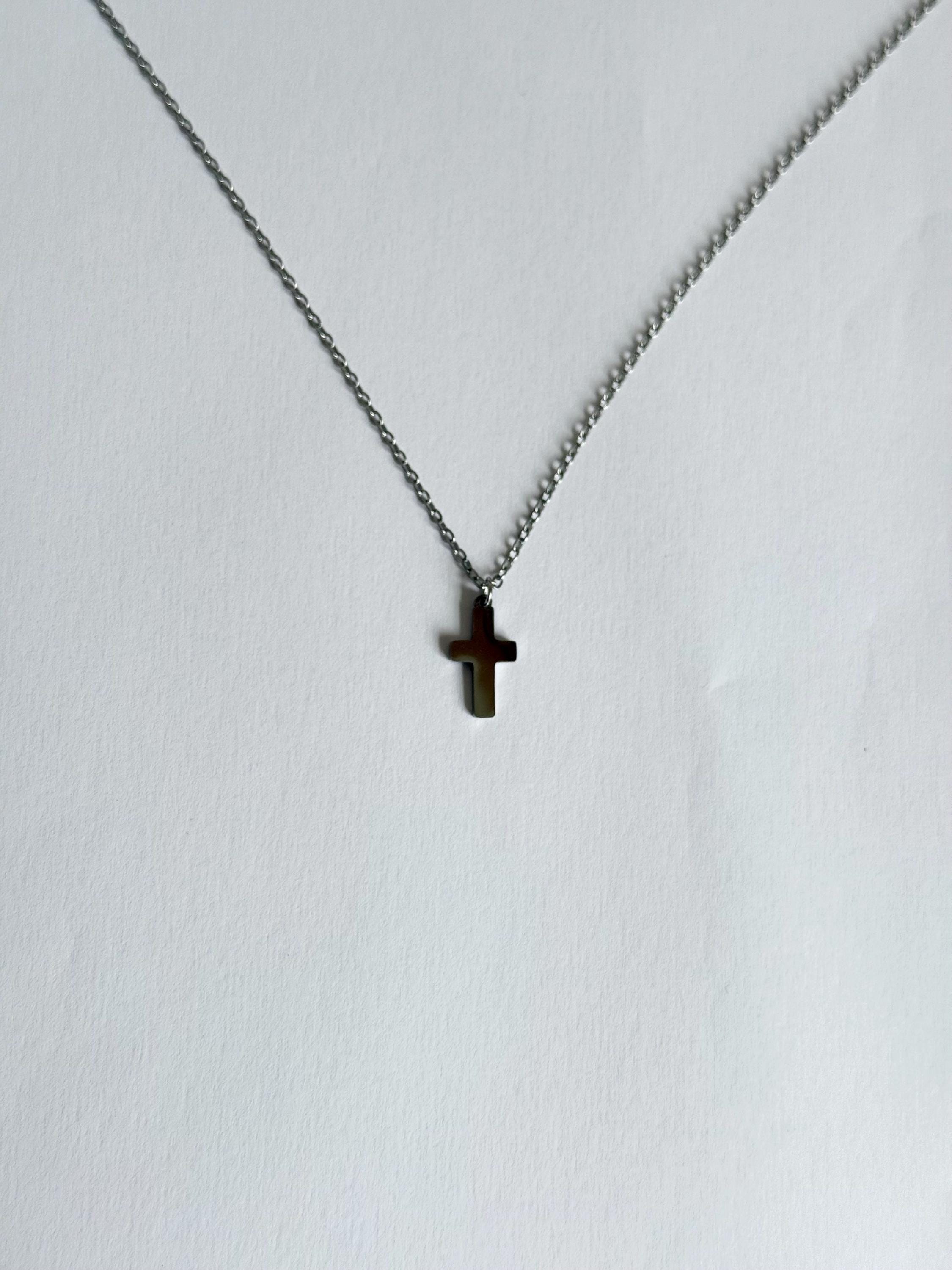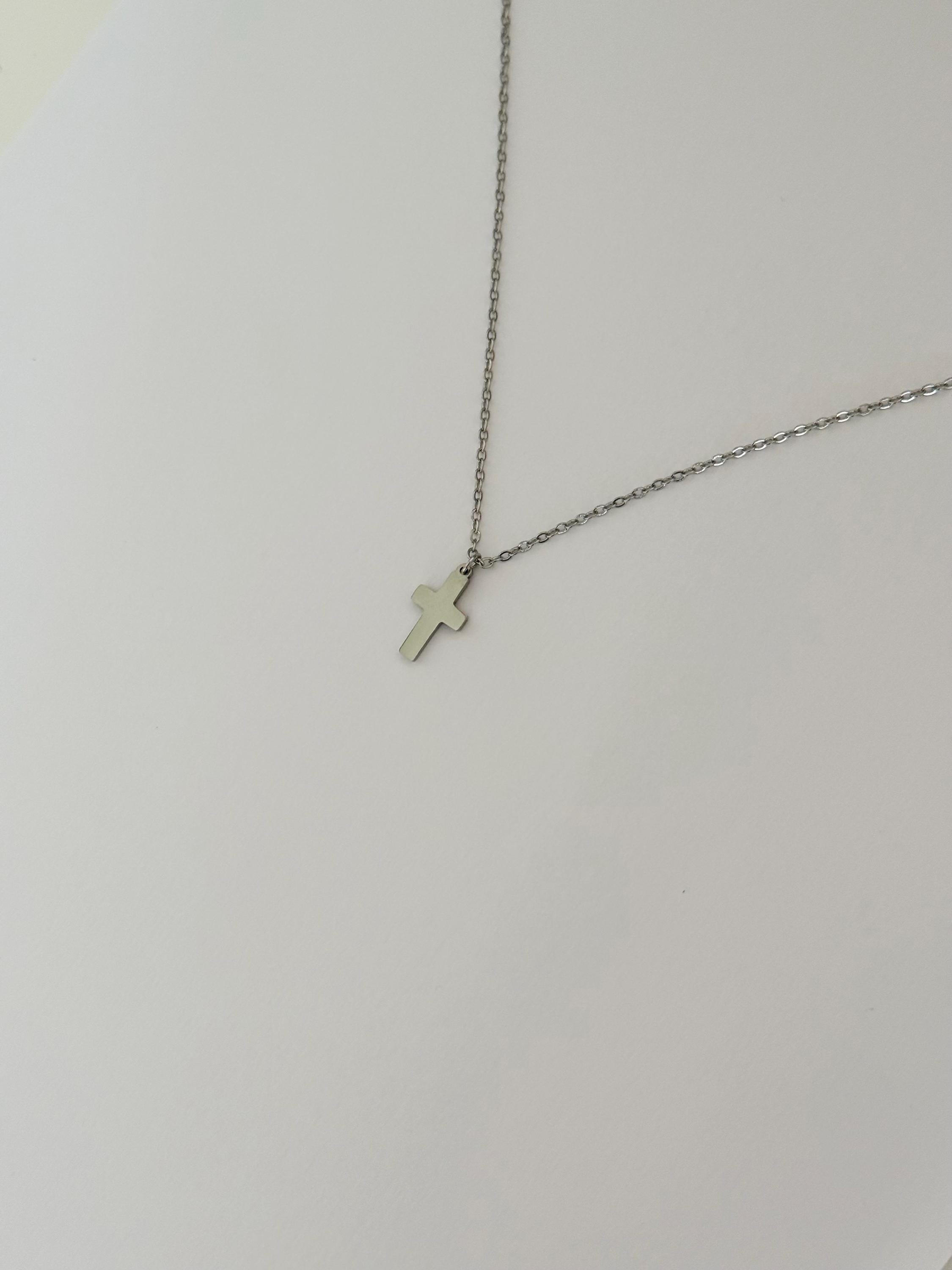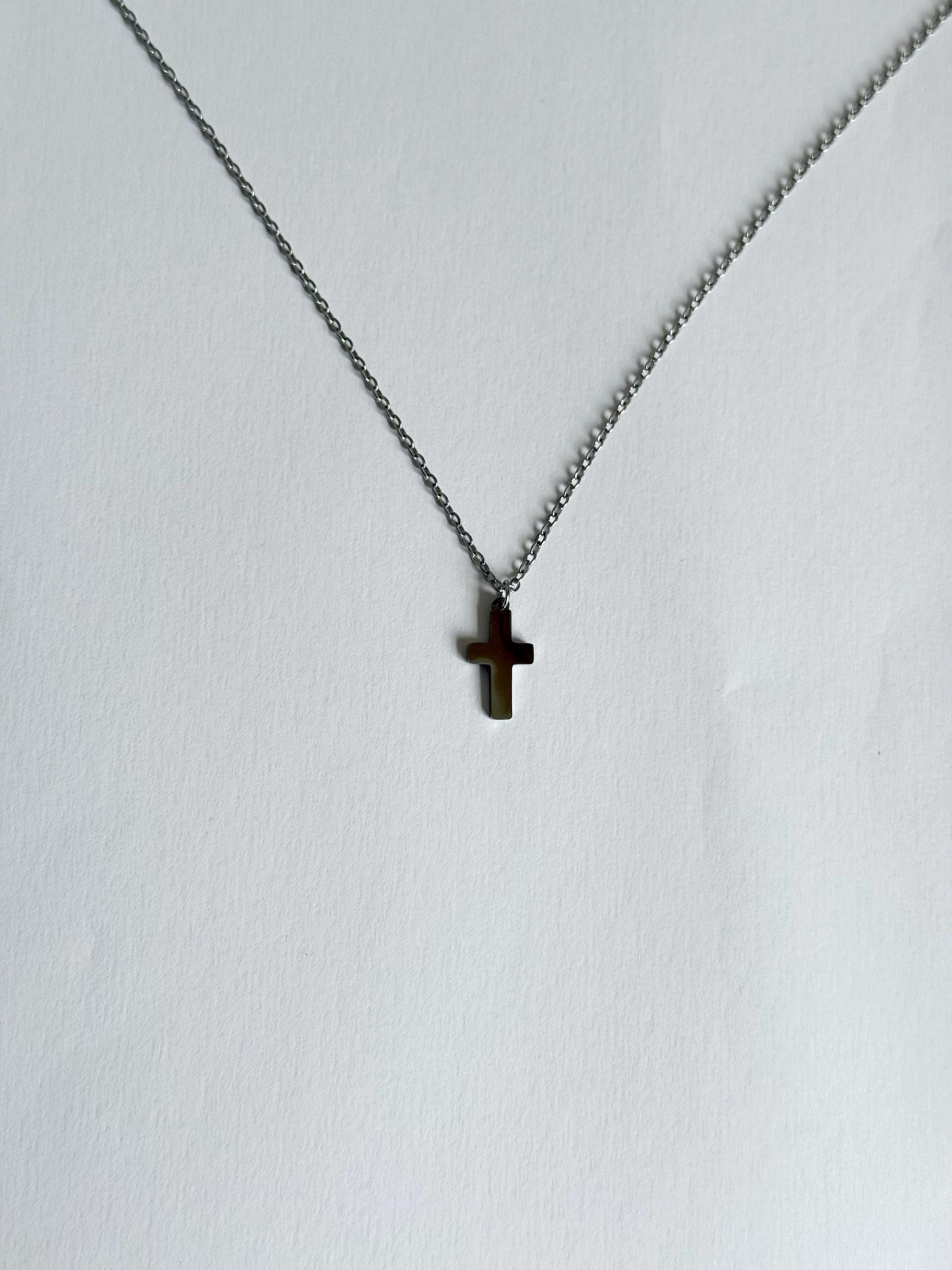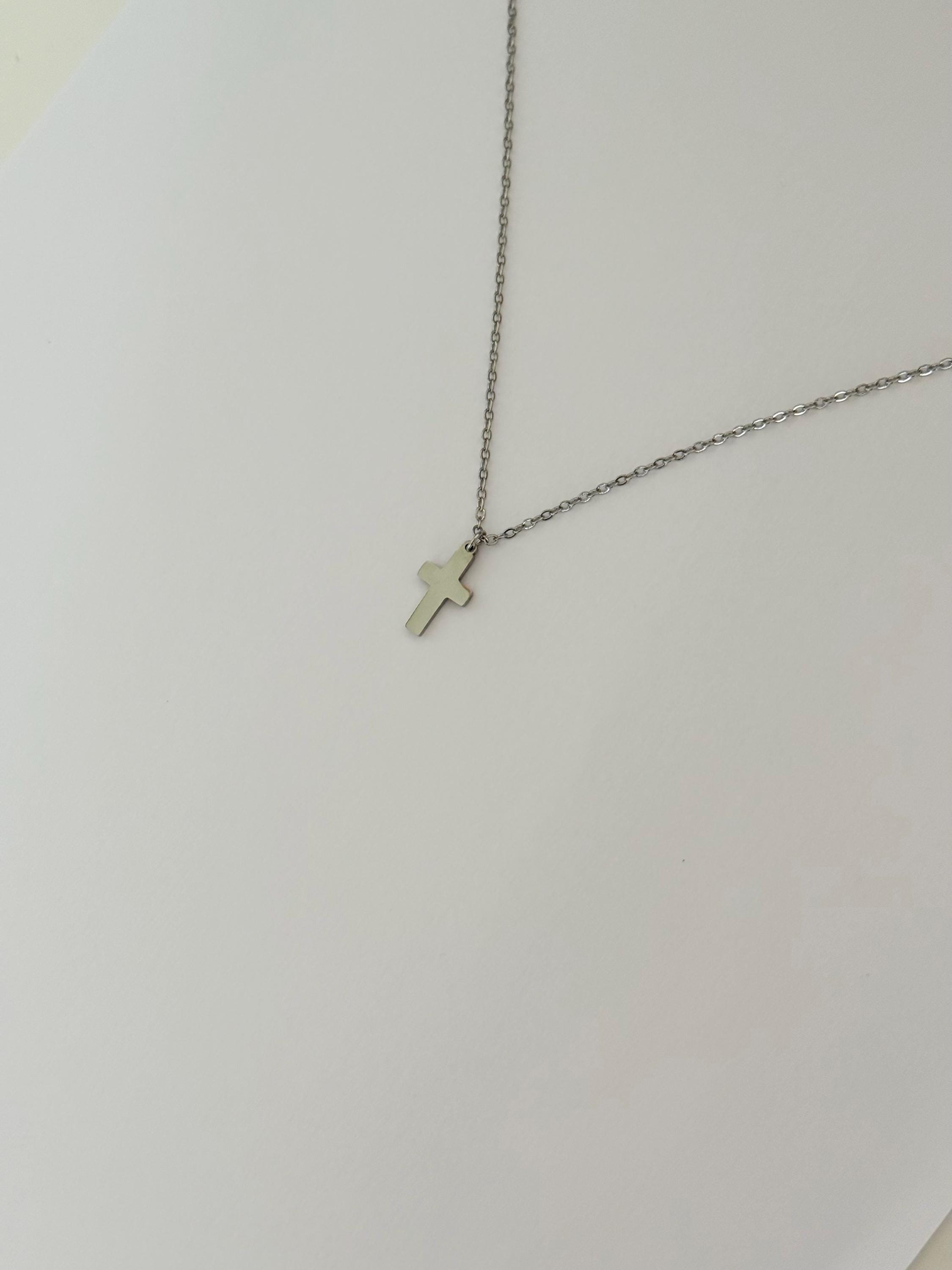 A sleek and minimal cross necklace crafted from durable stainless steel.
